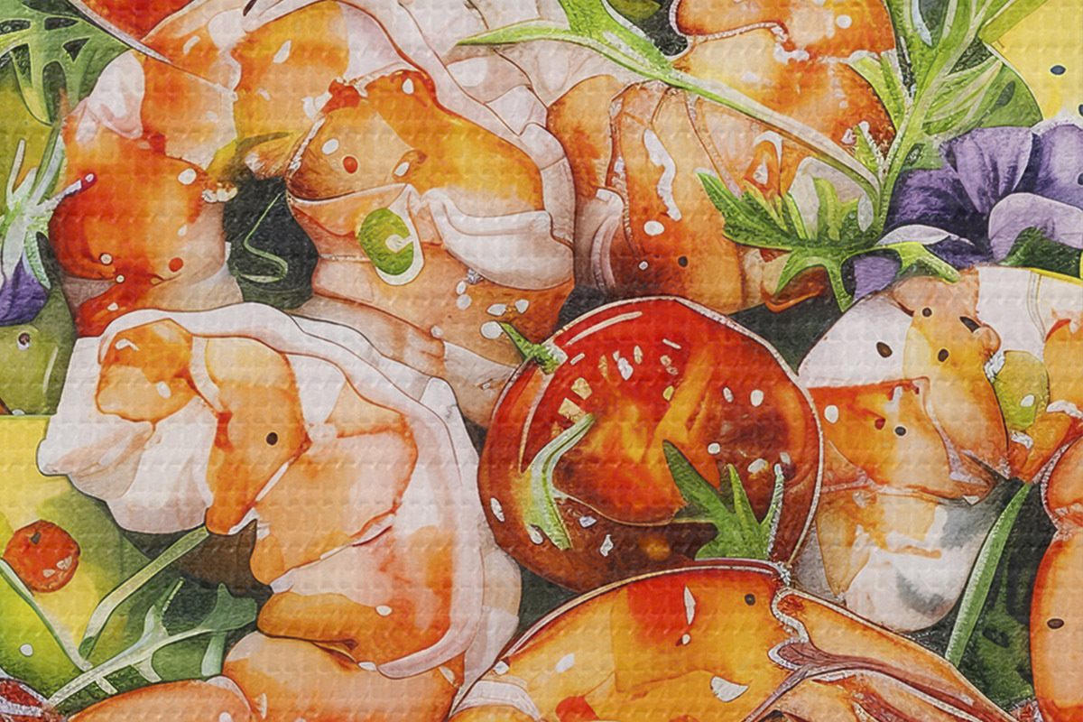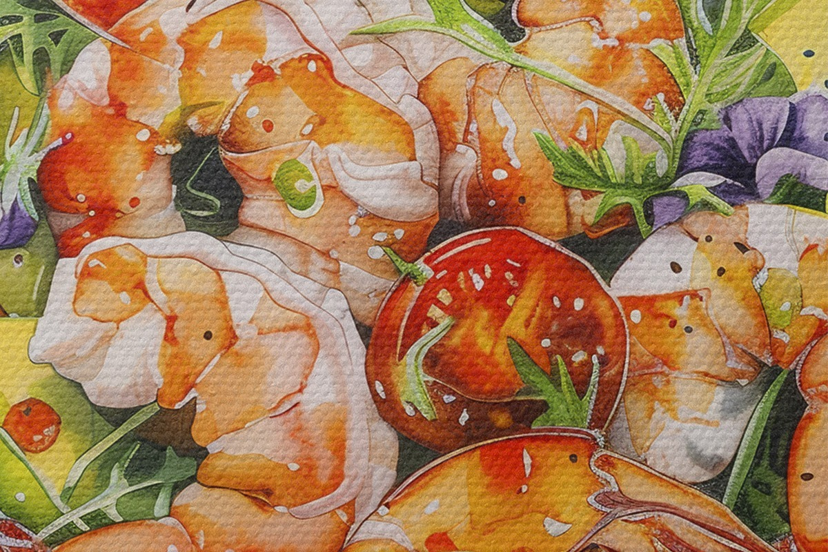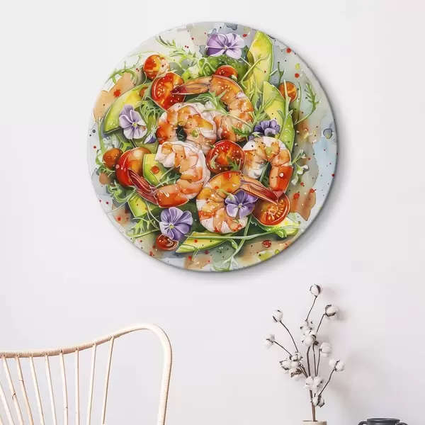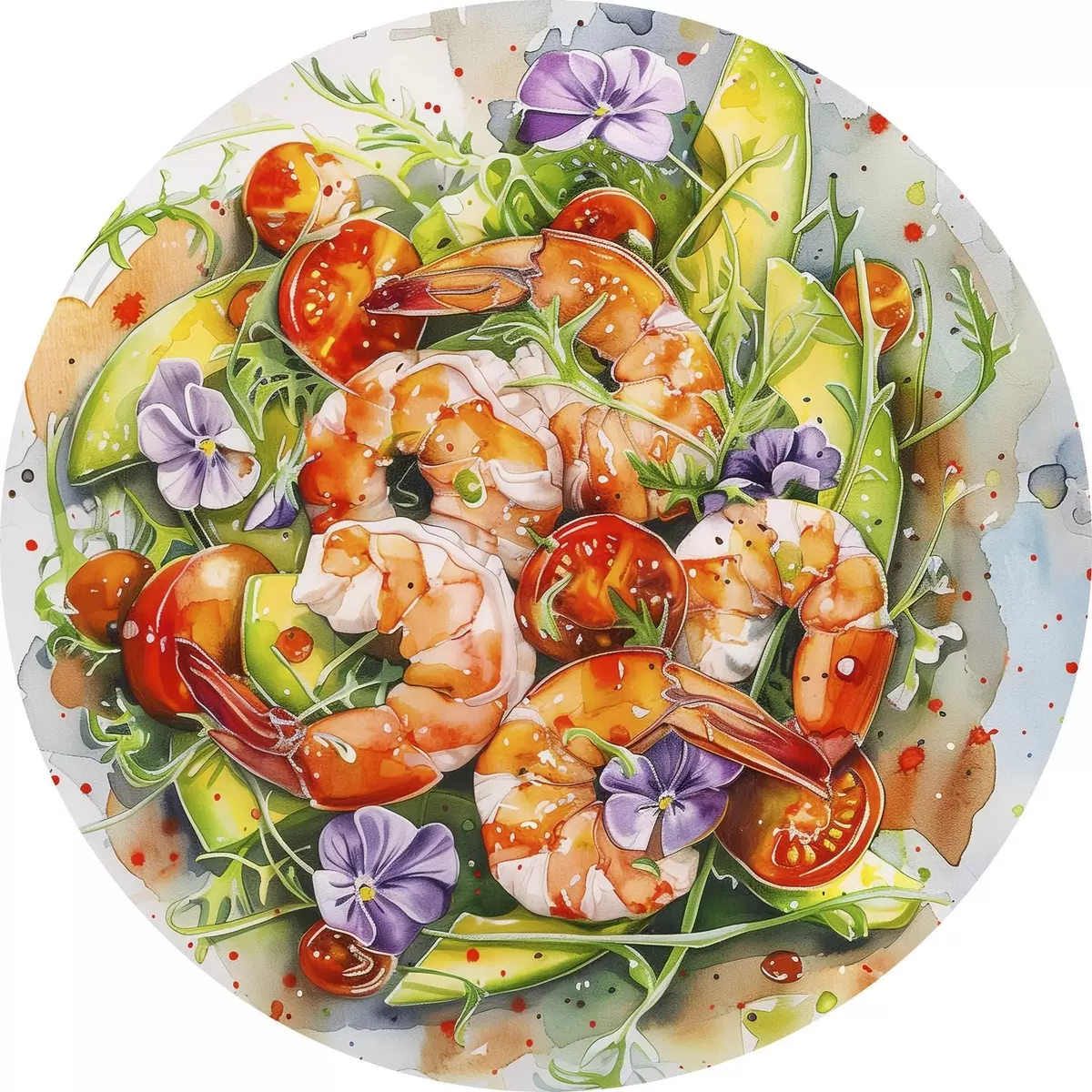 Nuotrauka Salotos su avokadu ir krevetėmis, gėlėmis, skanu, maisto menas, akvarelė Nr r39697