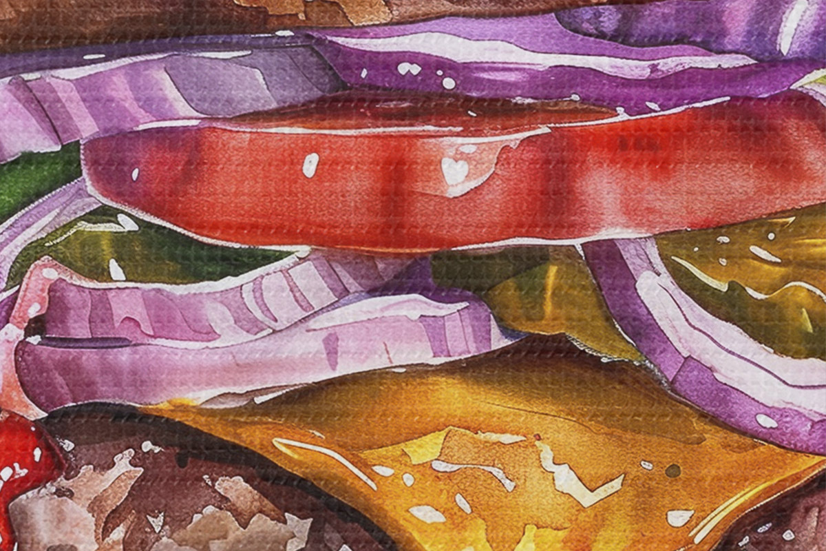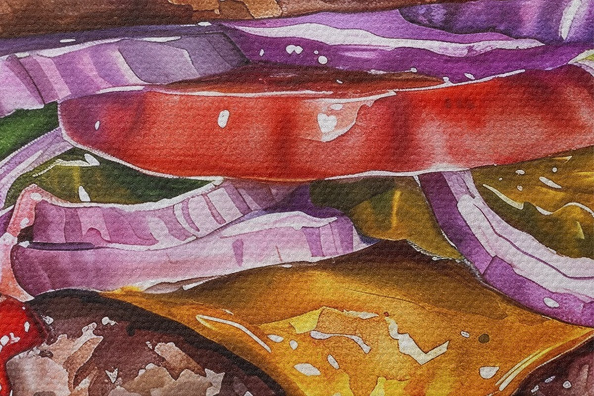 Nuotrauka Mėsainis, skanus maistas, akvarelė, gėlių Nr r39698