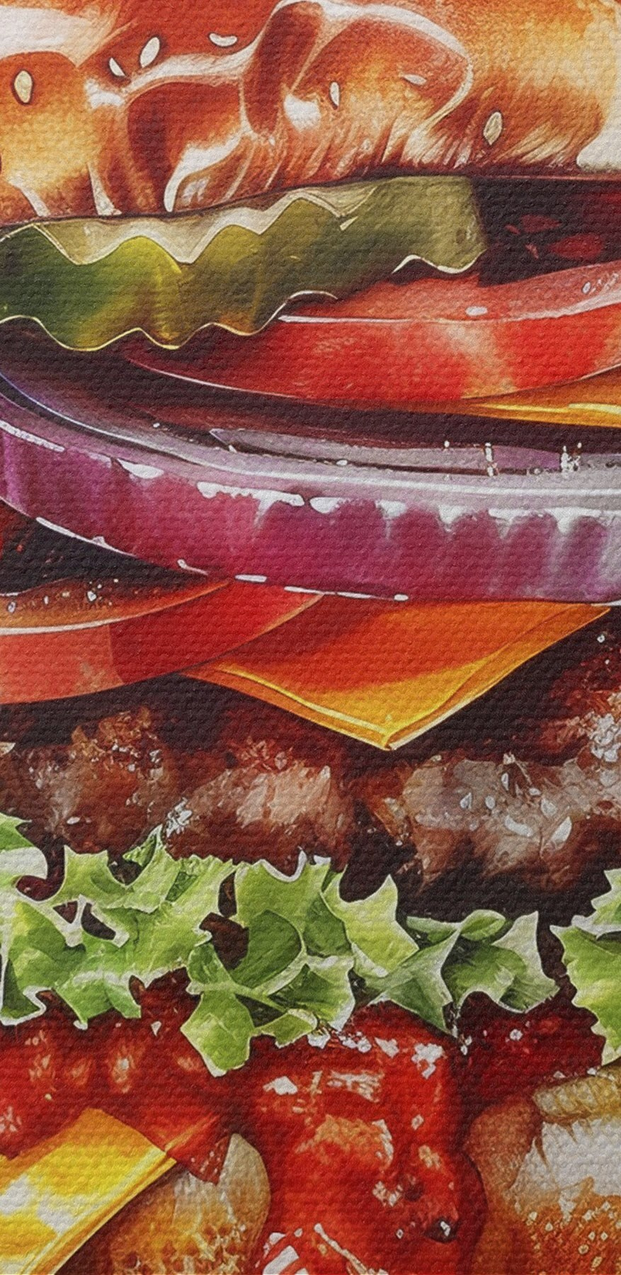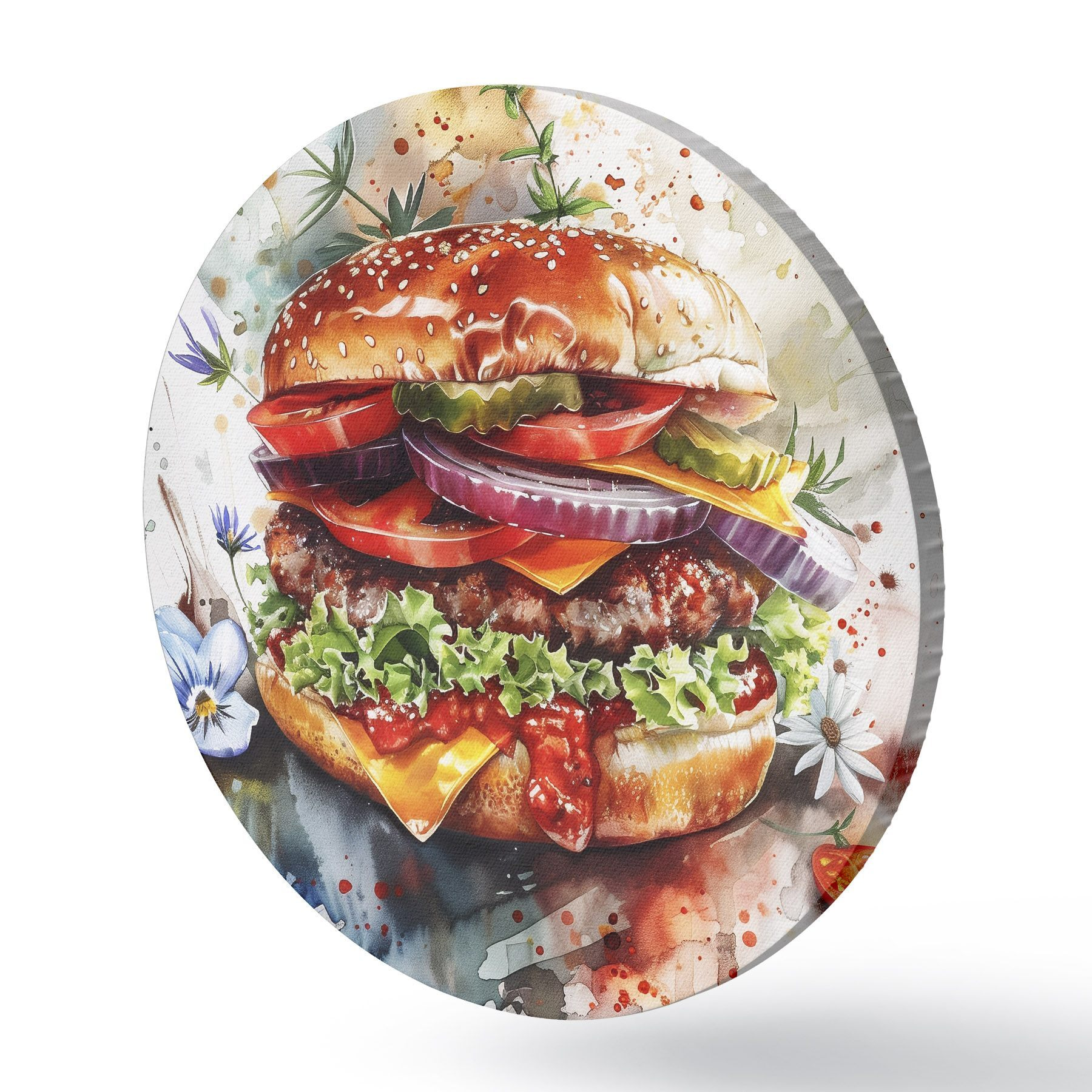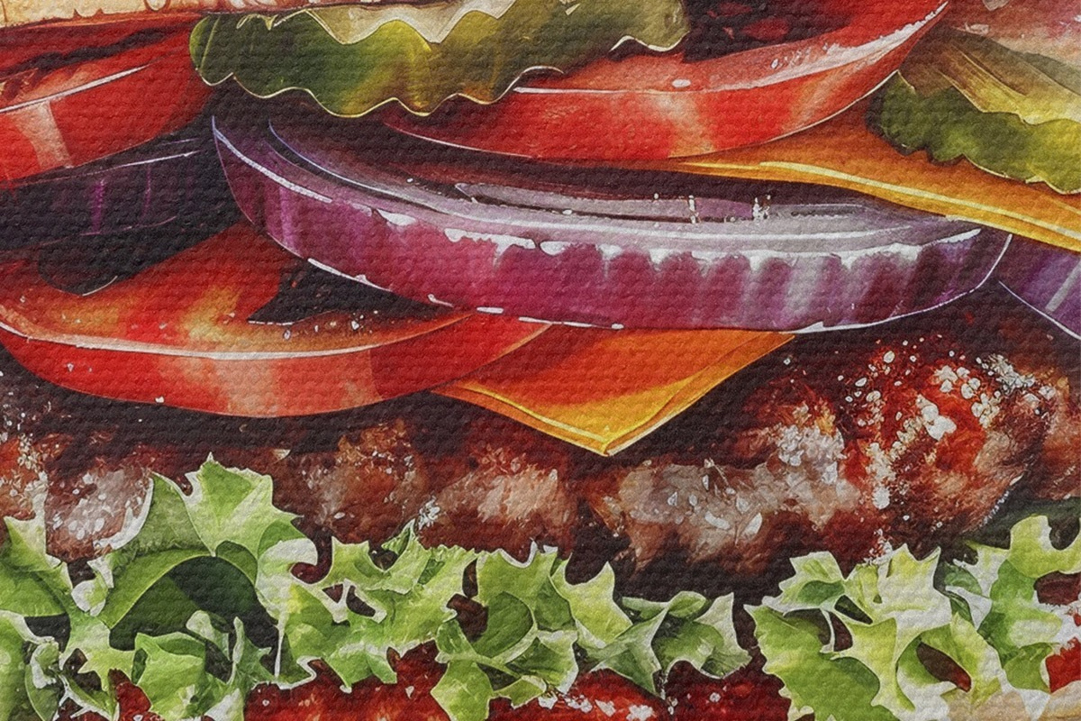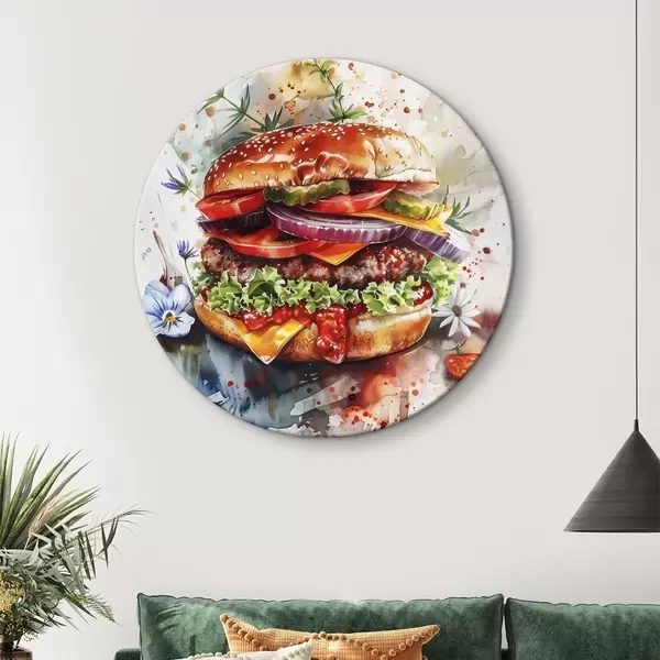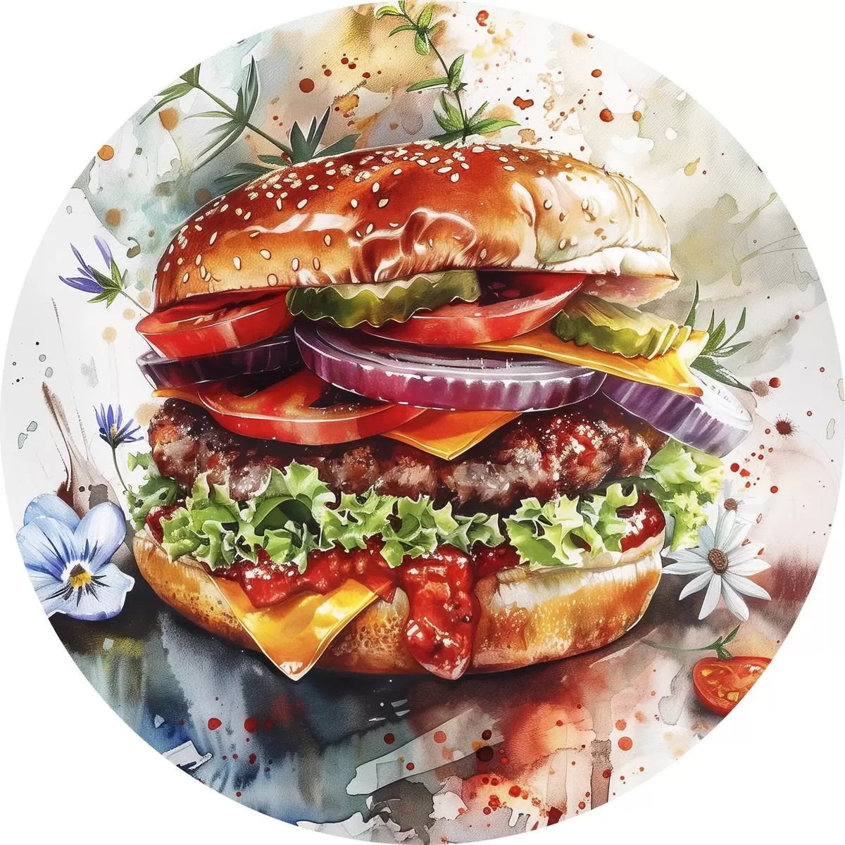Nuotrauka Skanus mėsainis su mėsa, gėlėmis, akvarele, maisto menu Nr r39699
