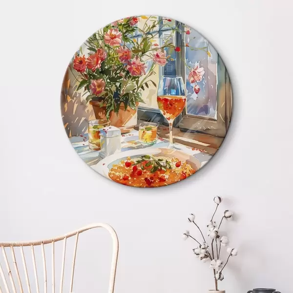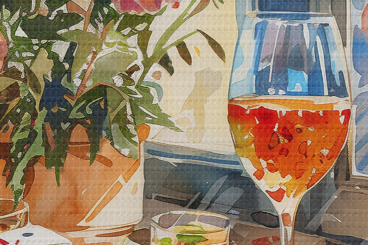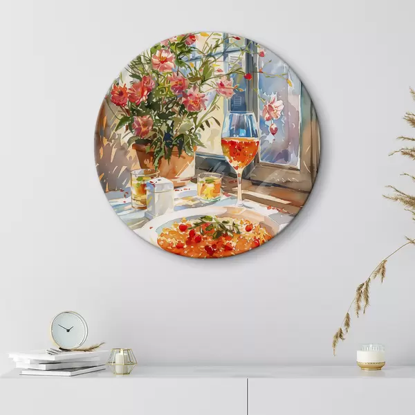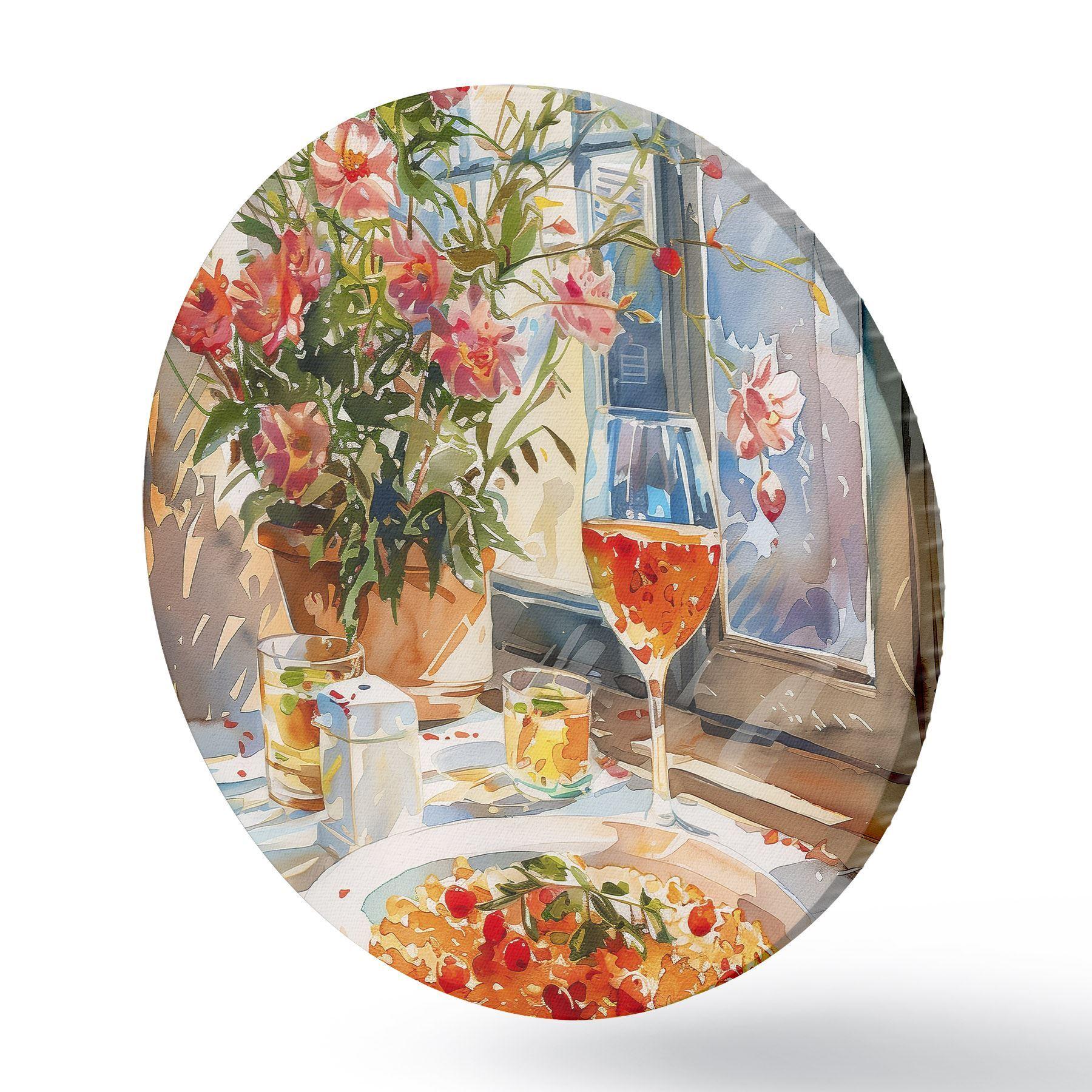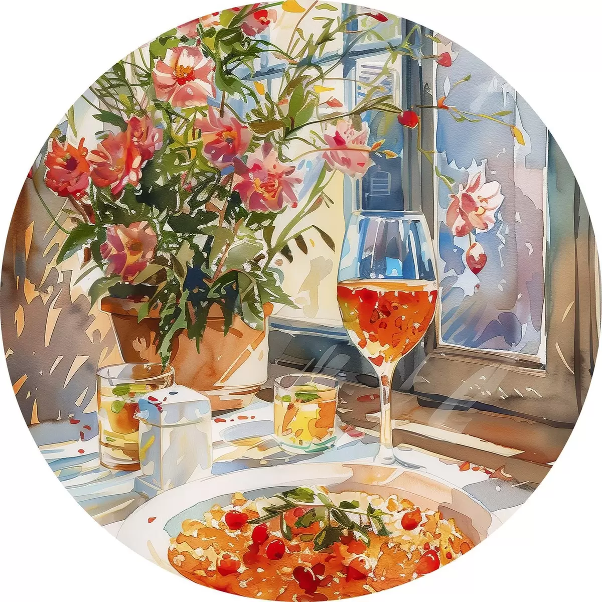Nuotrauka Akvarelės šakelė, saulės šviesa lange, kokteilio taurė, vasaros gėlės Nr r39707
