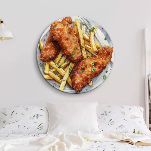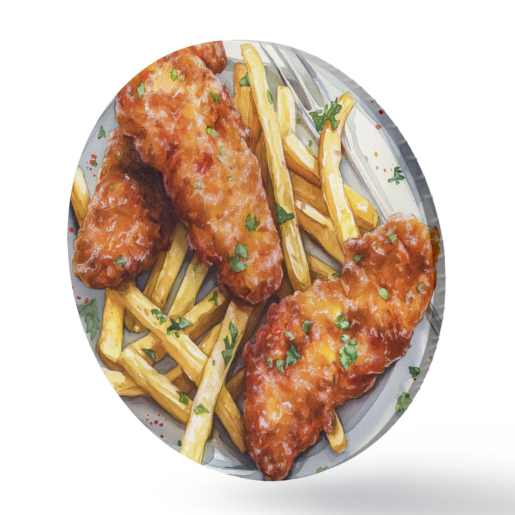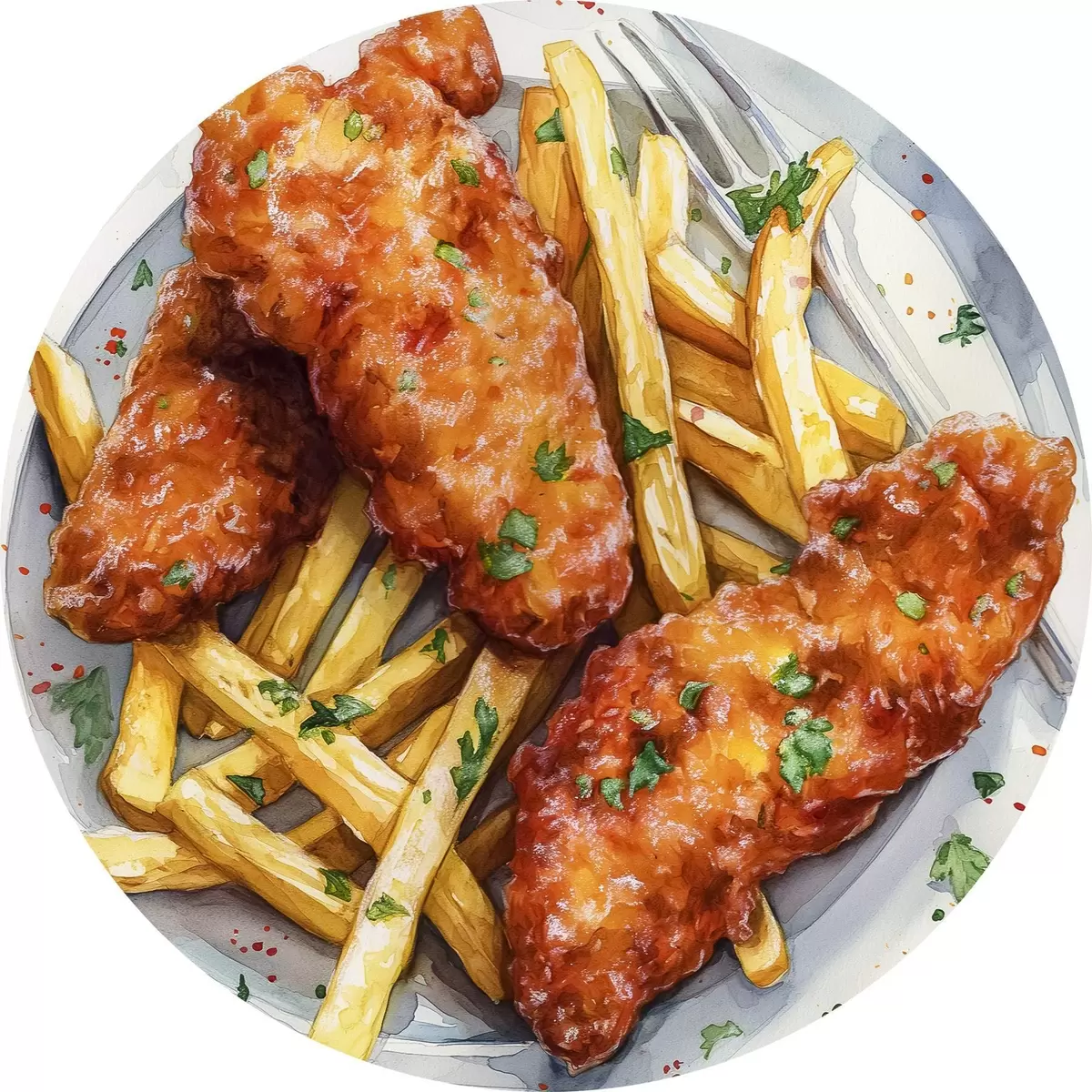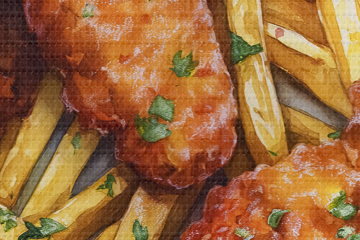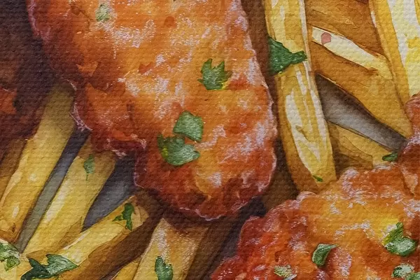 Nuotrauka Akvarelinis maisto menas, gruzdintos bulvytės su kepta vištiena, skanu Nr r39708