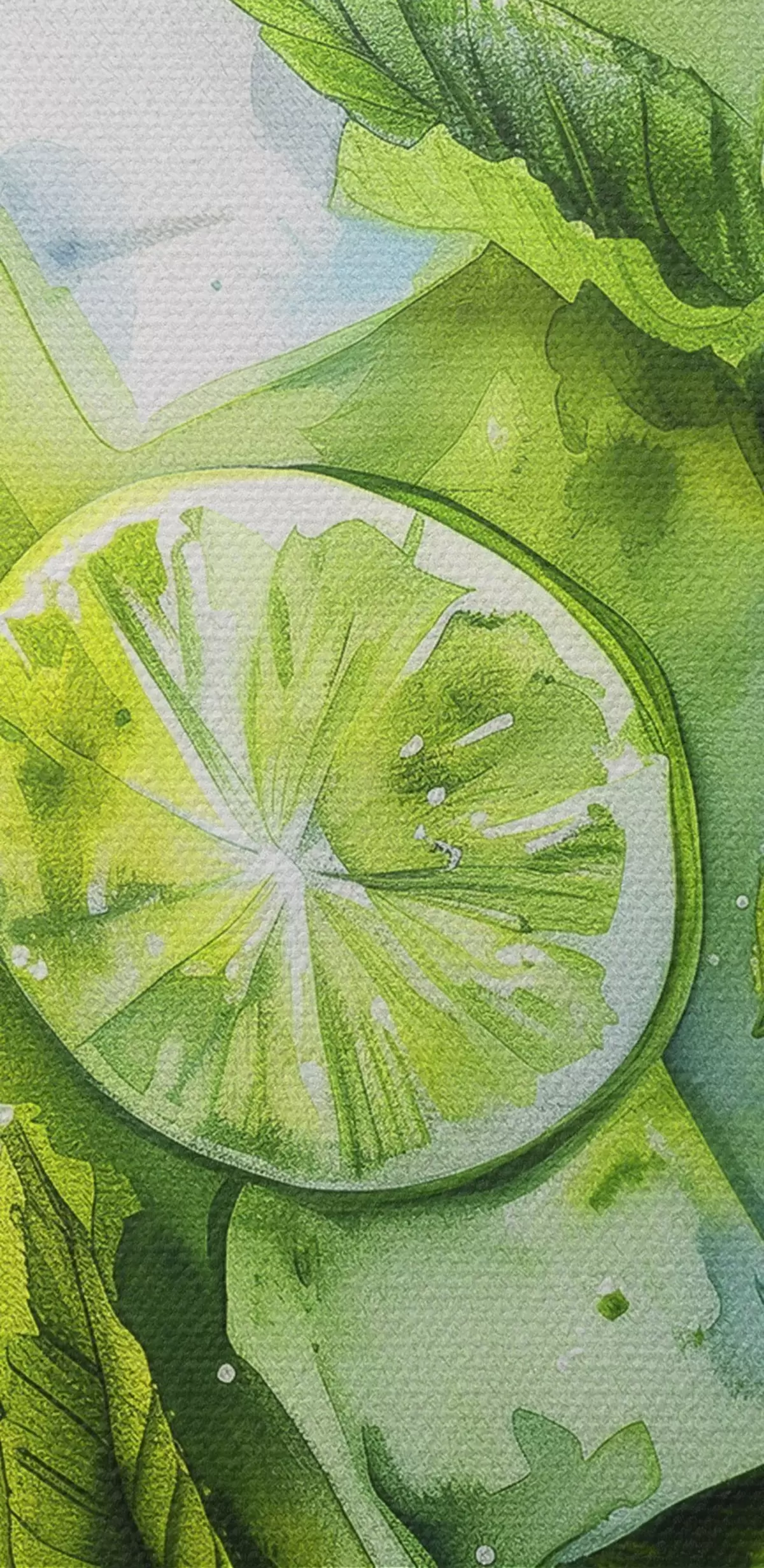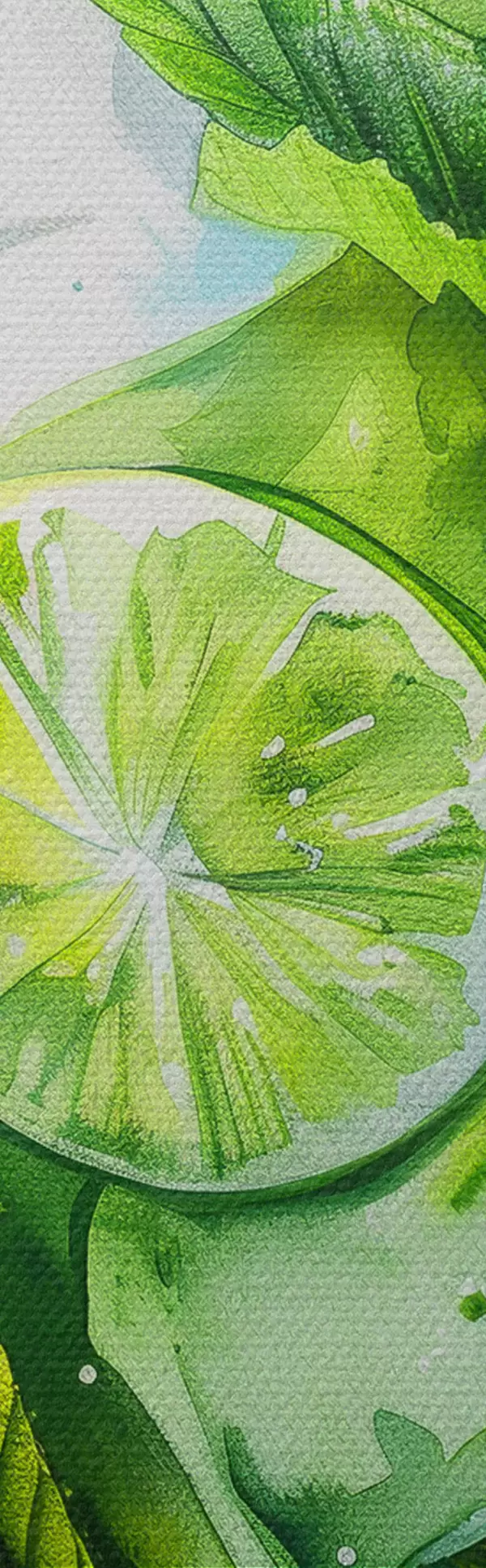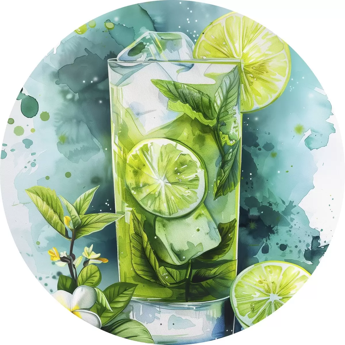 Nuotrauka Vasarinis akvarelės kokteilis, mojito, laimo ir mėtų, gėlių, žalios spalvos Nr r39712