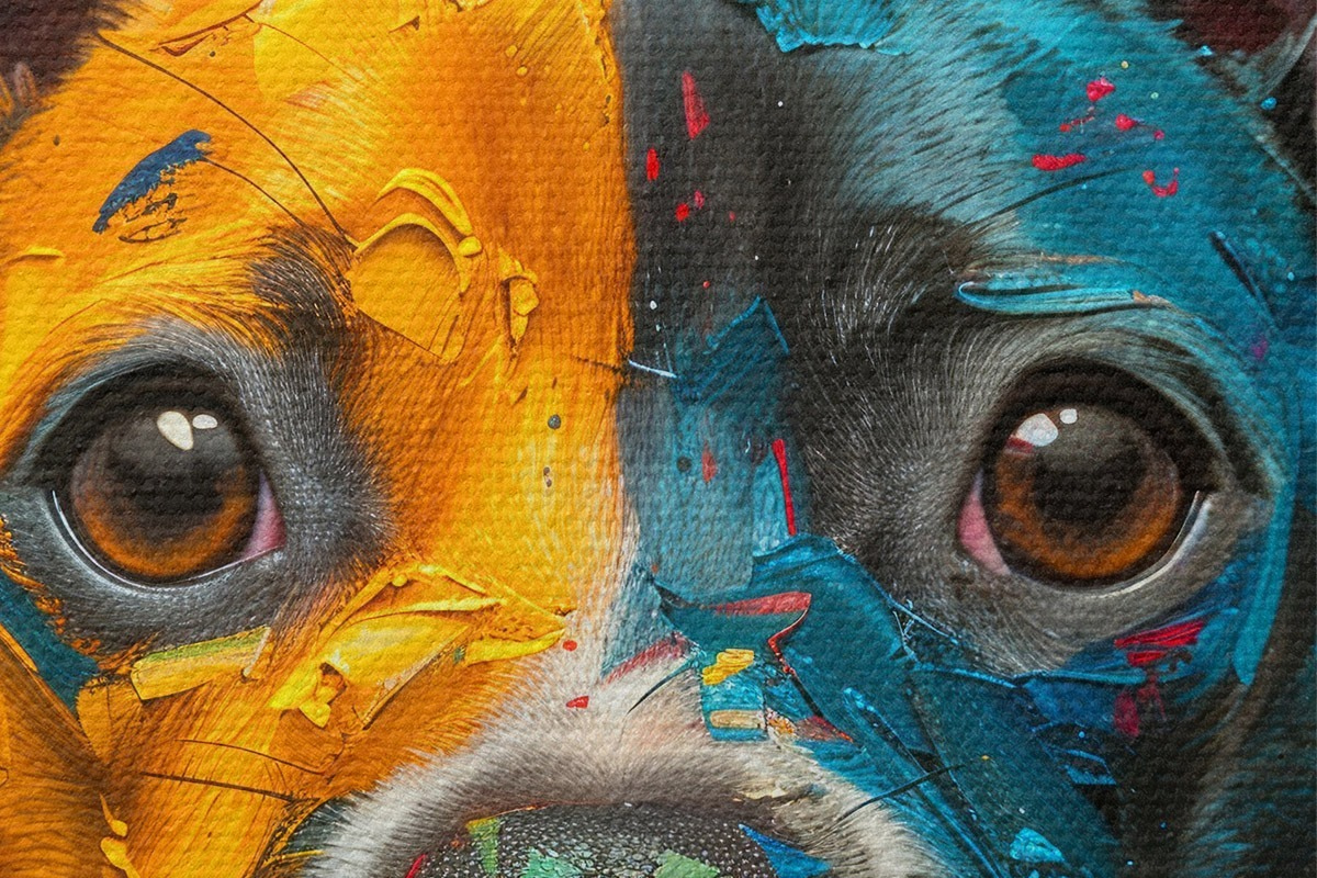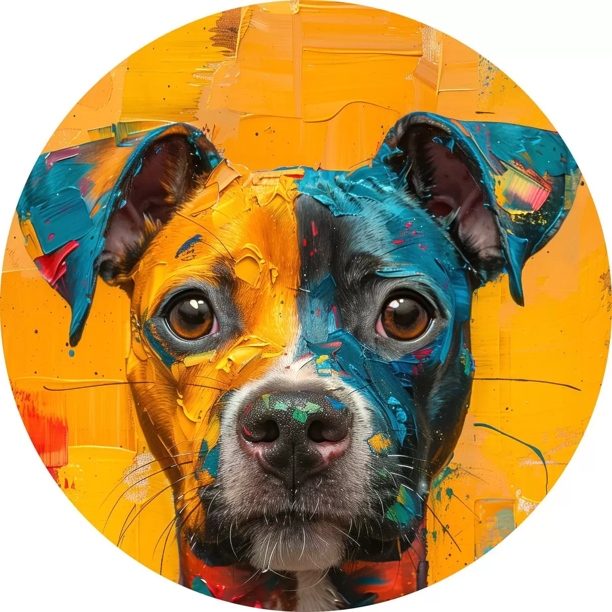 Nuotrauka Pitbullio portretas su geltonais ir mėlynais aliejaus teptuko potėpiais Nr r39722
