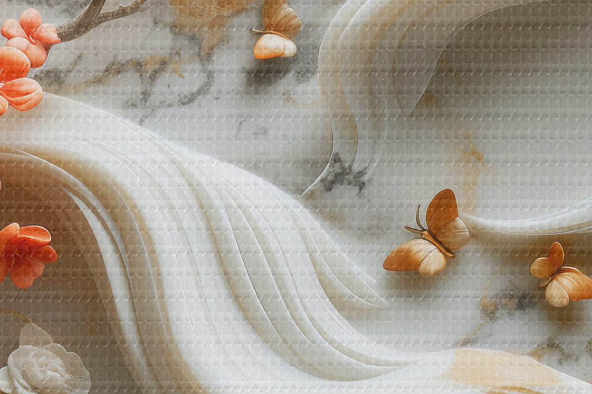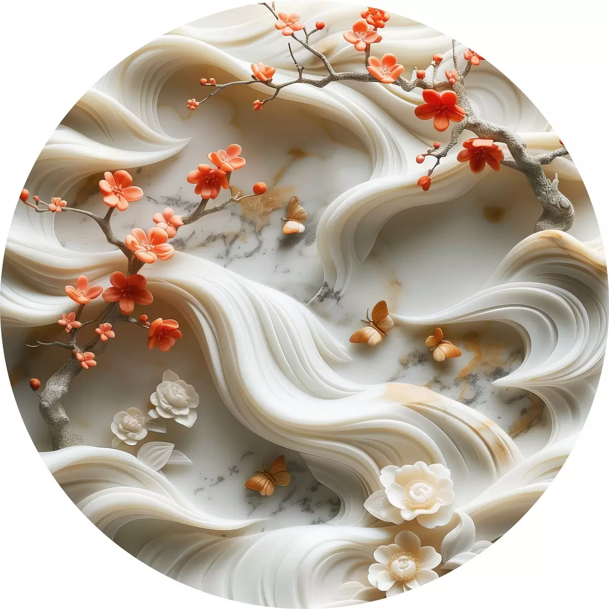 Nuotrauka Dangiškas 3D sodo vaizdas iš balto marmuro su tekančia flora ir fauna Nr r39727