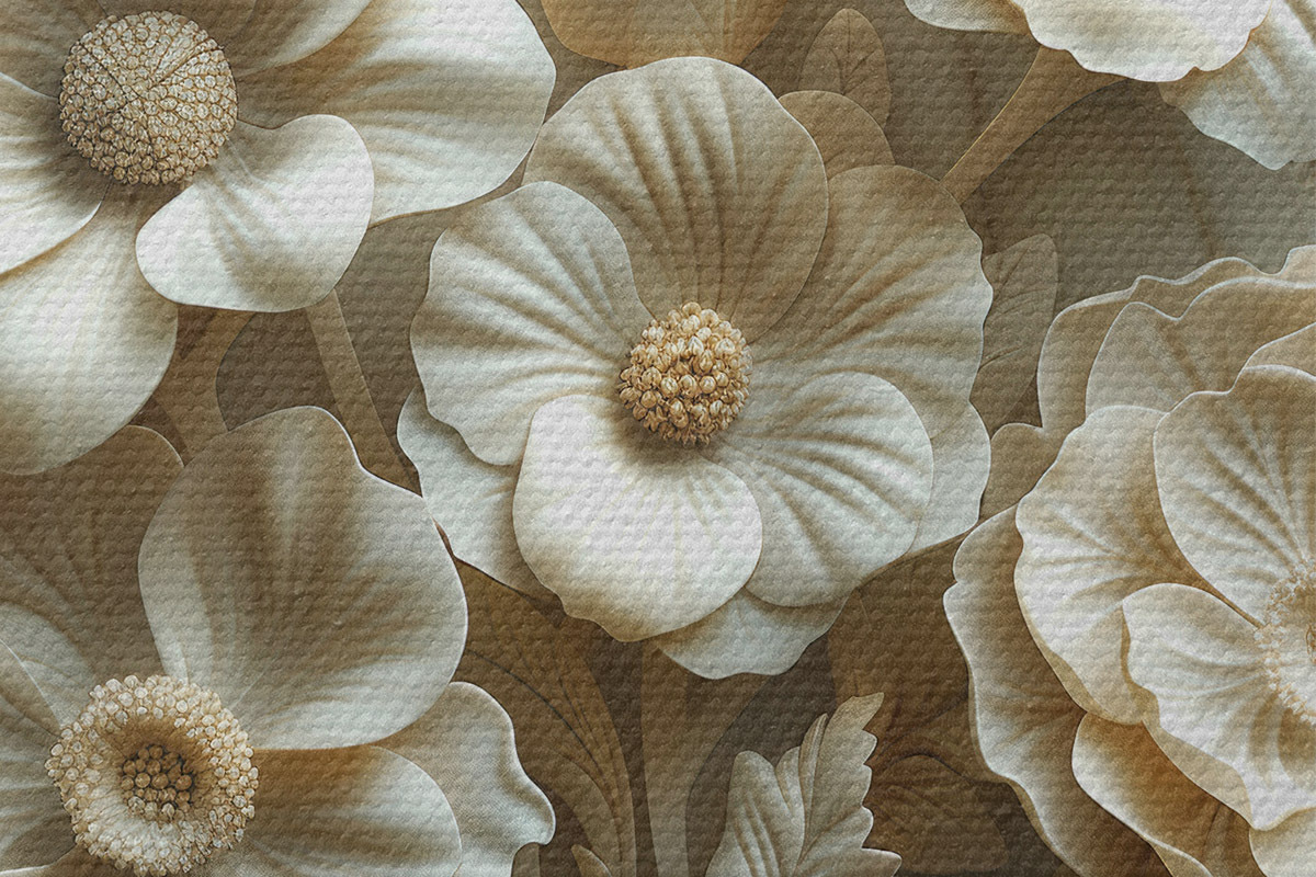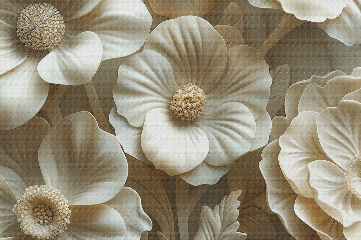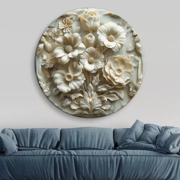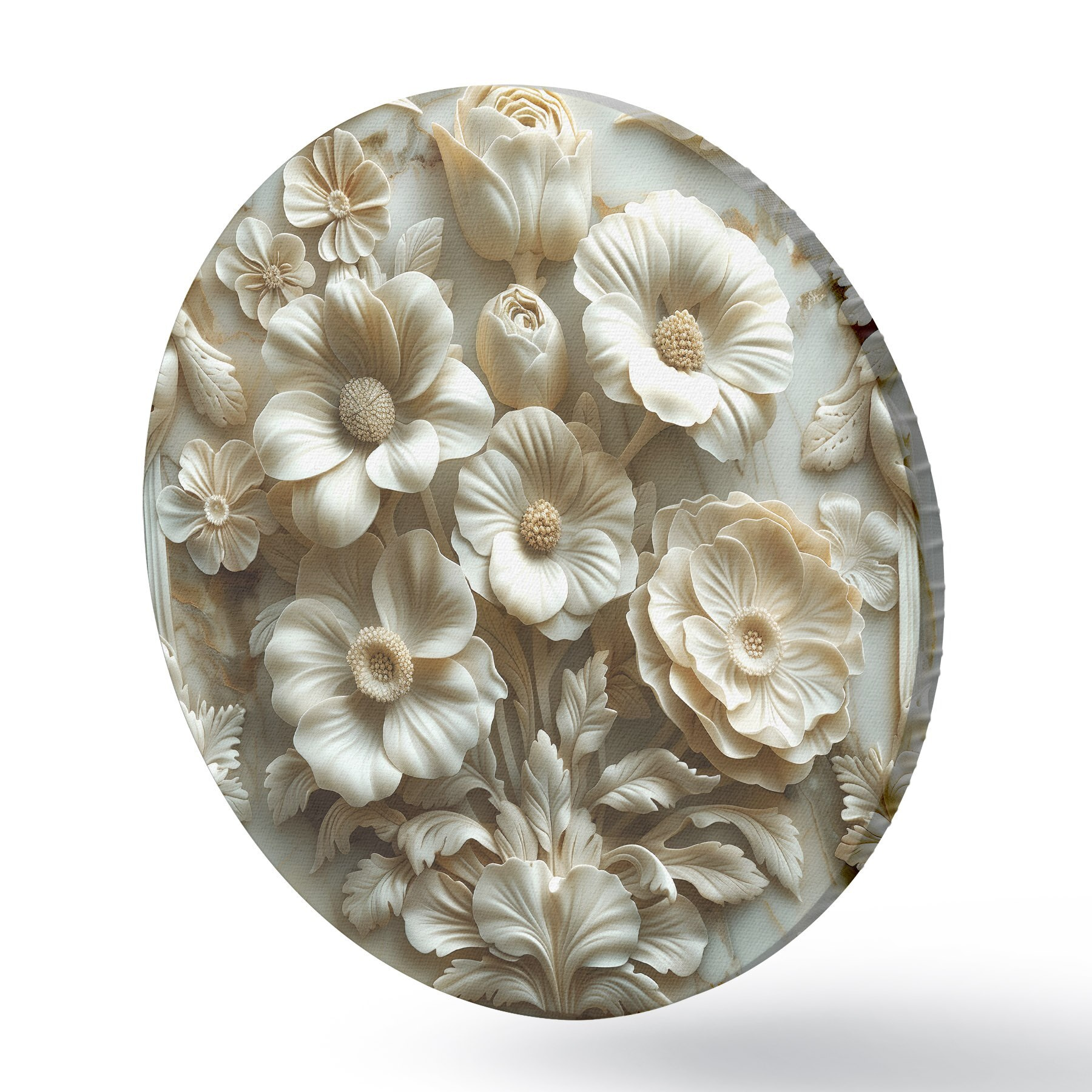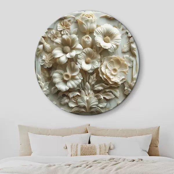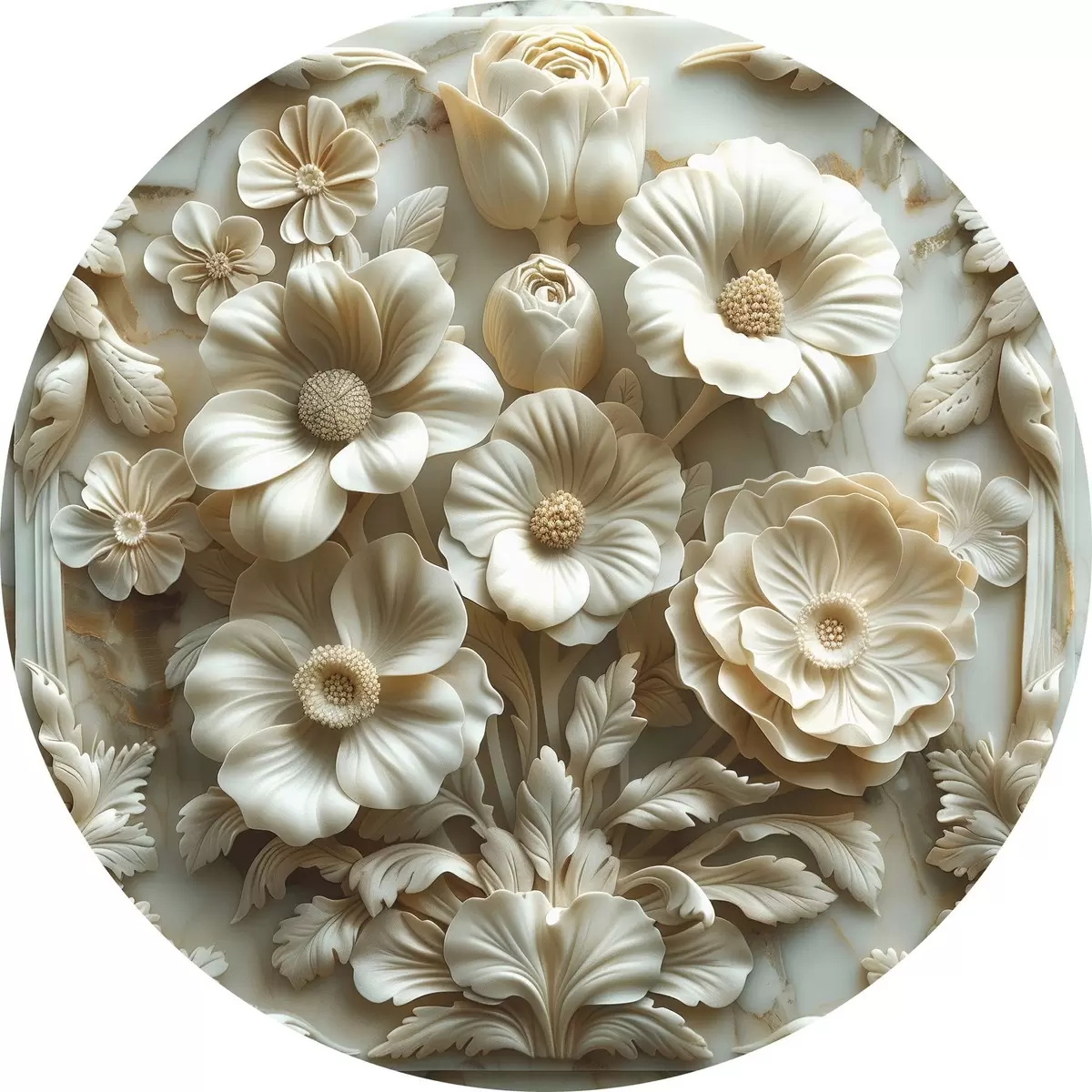 Nuotrauka 3D baltos bareljefinės gėlės marmuriniame fone su rėmeliu Nr r39739