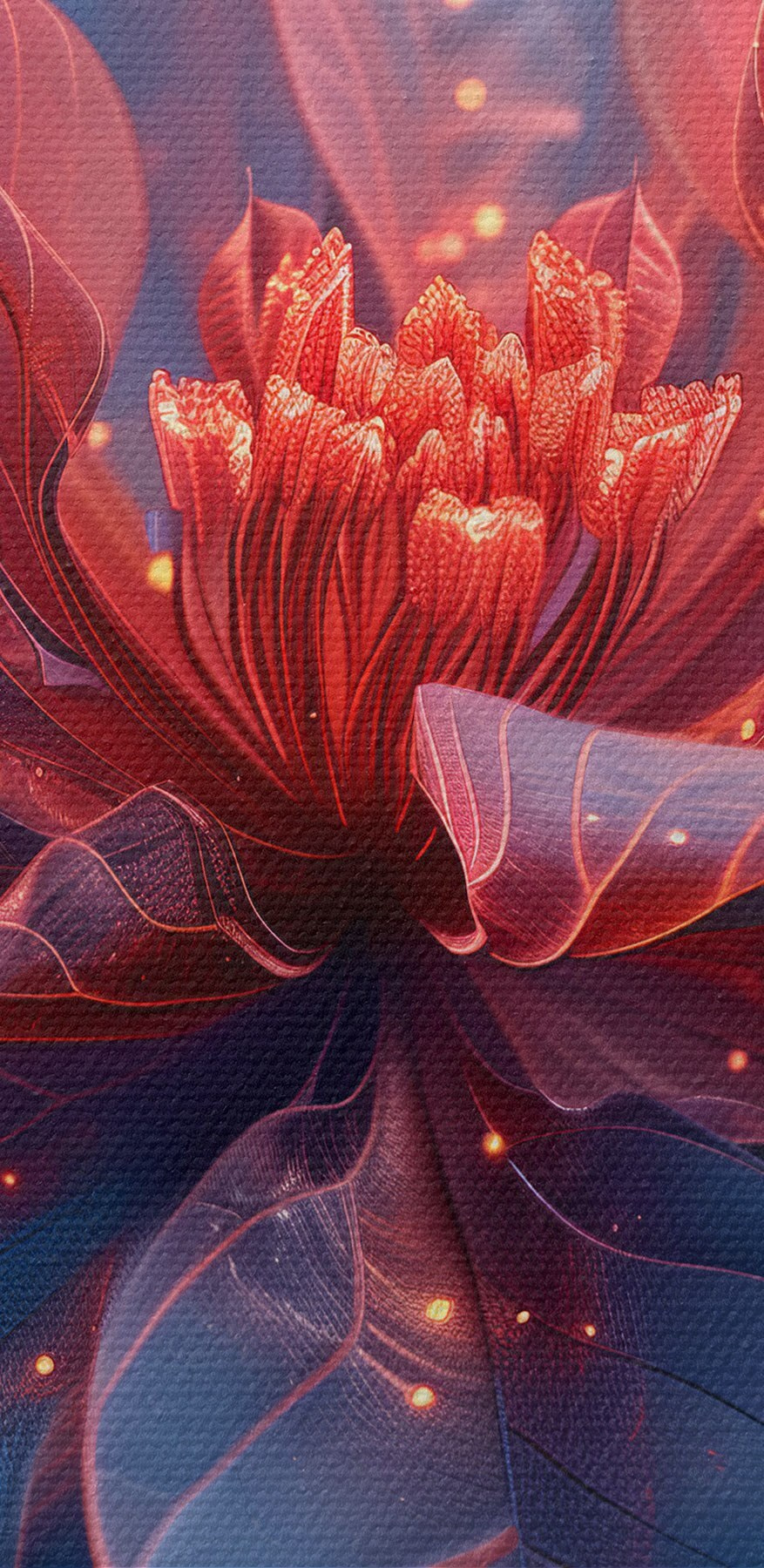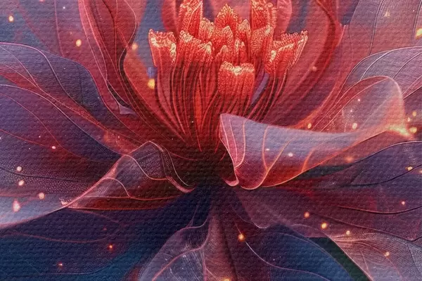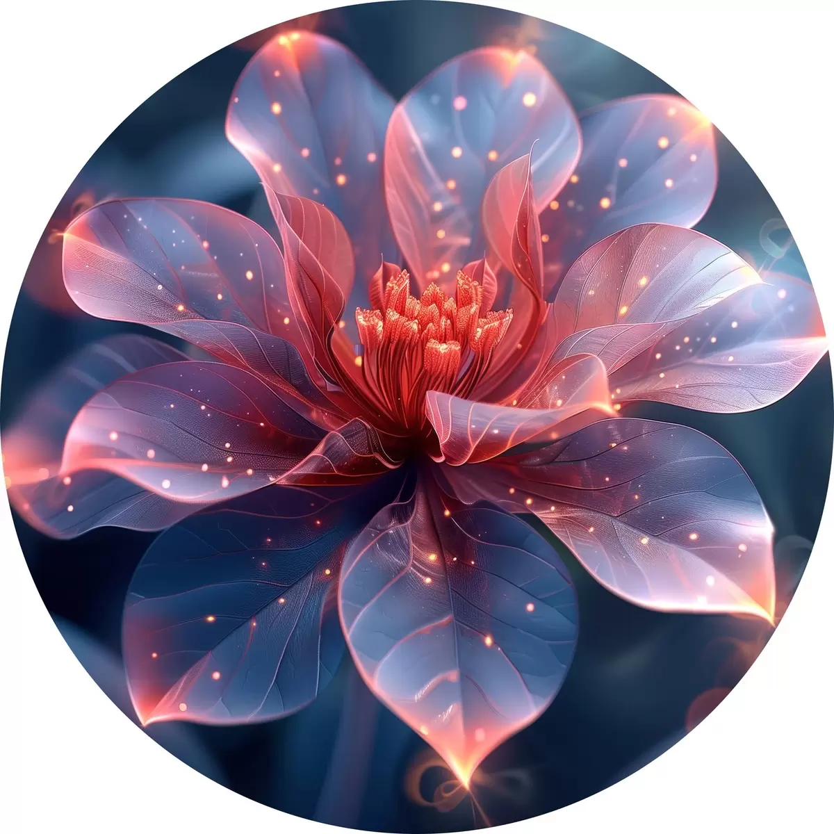 Nuotrauka Miela didelė fraktalinė gėlė mėlynos ir raudonos spalvos su žėrinčiais žiedlapiais Nr r39741