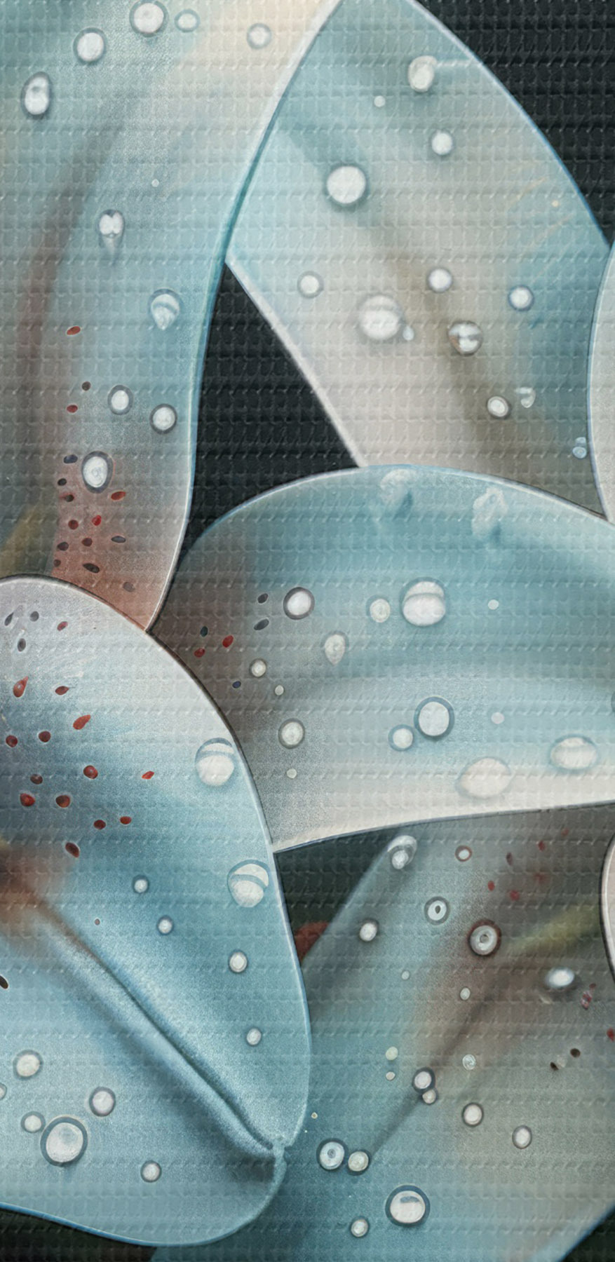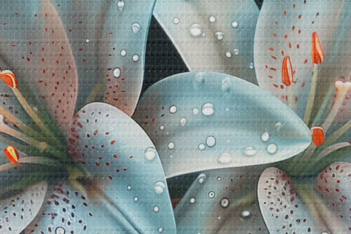 Galima užsakyti trijų rūšių medžiagą: "Economic Canvas" - tanki ir patvari medžiaga skaitmeninei spaudai, identiška dailininko drobės medžiagai, vandeniui atsparus paviršius, tikroviškas detalių atkūrimas, vidutinio grūdėtumo medžiaga. Premium Canvas - tekstūra primena dailininko drobę (susipynę smulkūs siūlai). Minkštas, detalus vaizdo atkūrimas ant matinio paviršiaus. Eco-Premium - aukštos kokybės 100 % medvilninis audinys. Dėl natūralių medvilnės pluoštų medžiaga yra patvari ir atspari nusidėvėjimui. Puikus spalvų atkūrimas ir detalumas.