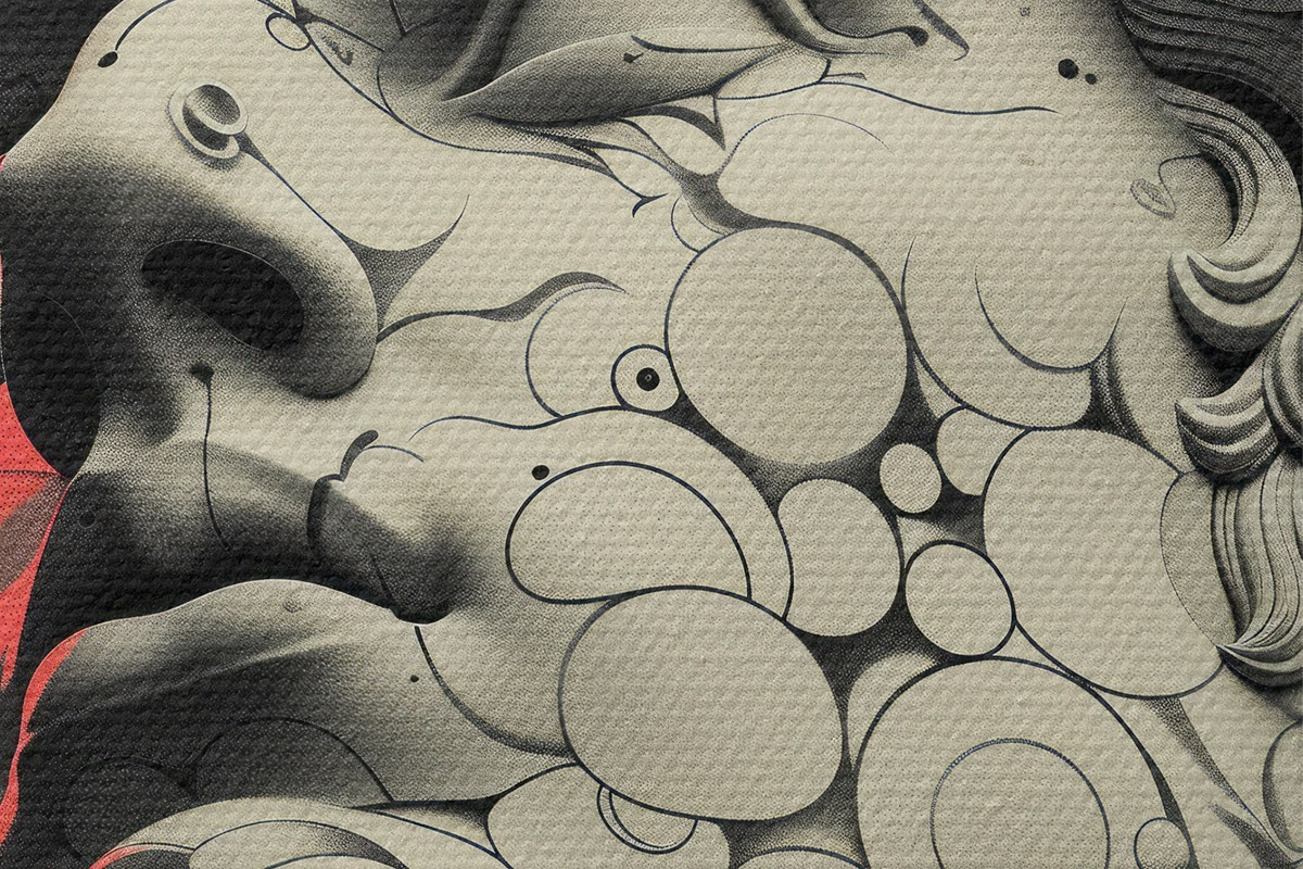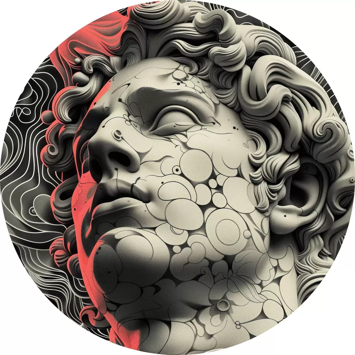 Nuotrauka Juodai balta linijinė graikų dievo Apolono galvos iliustracija popmeno stiliumi Nr r39763