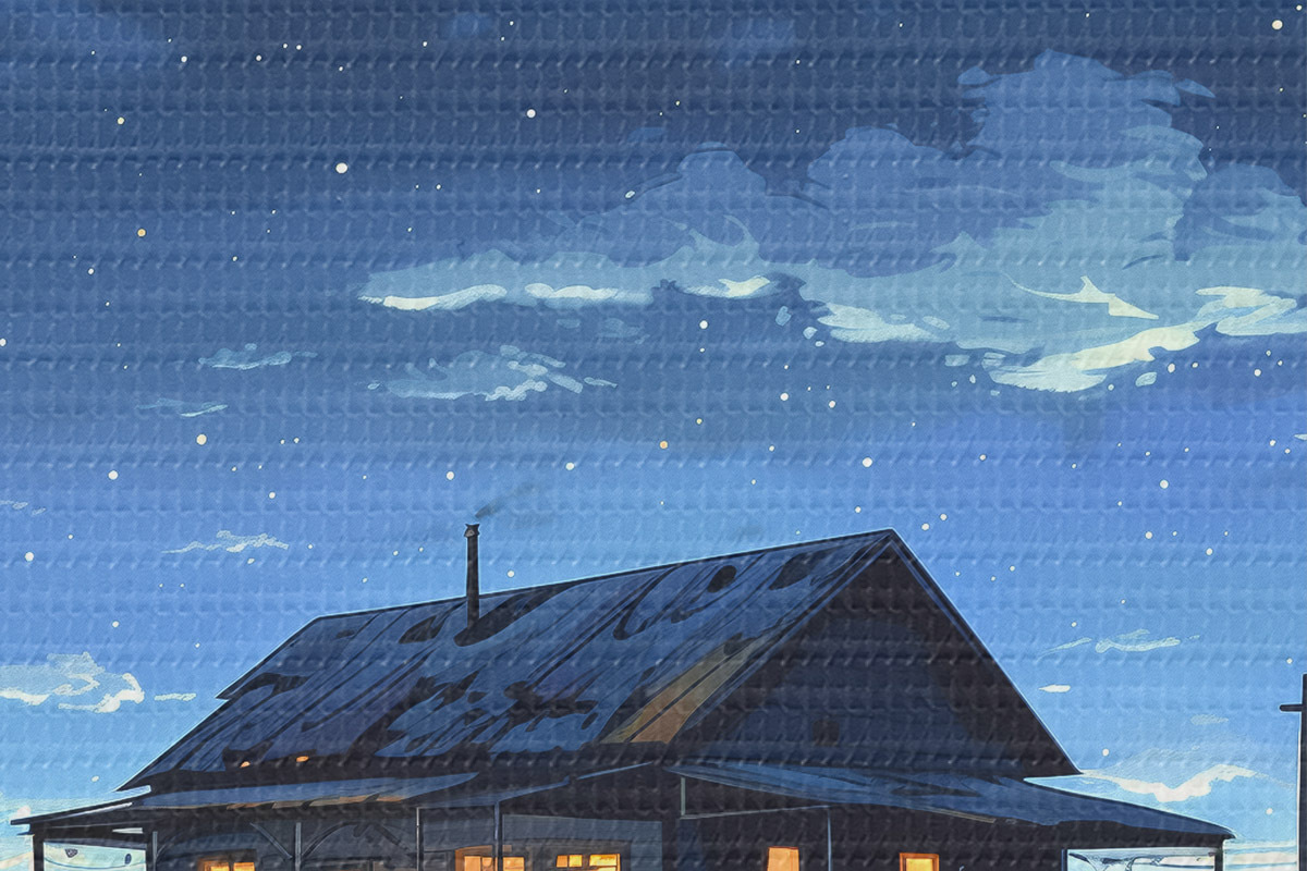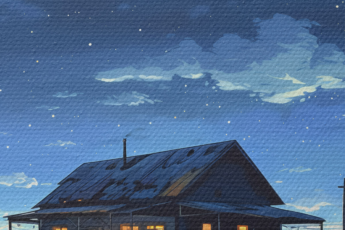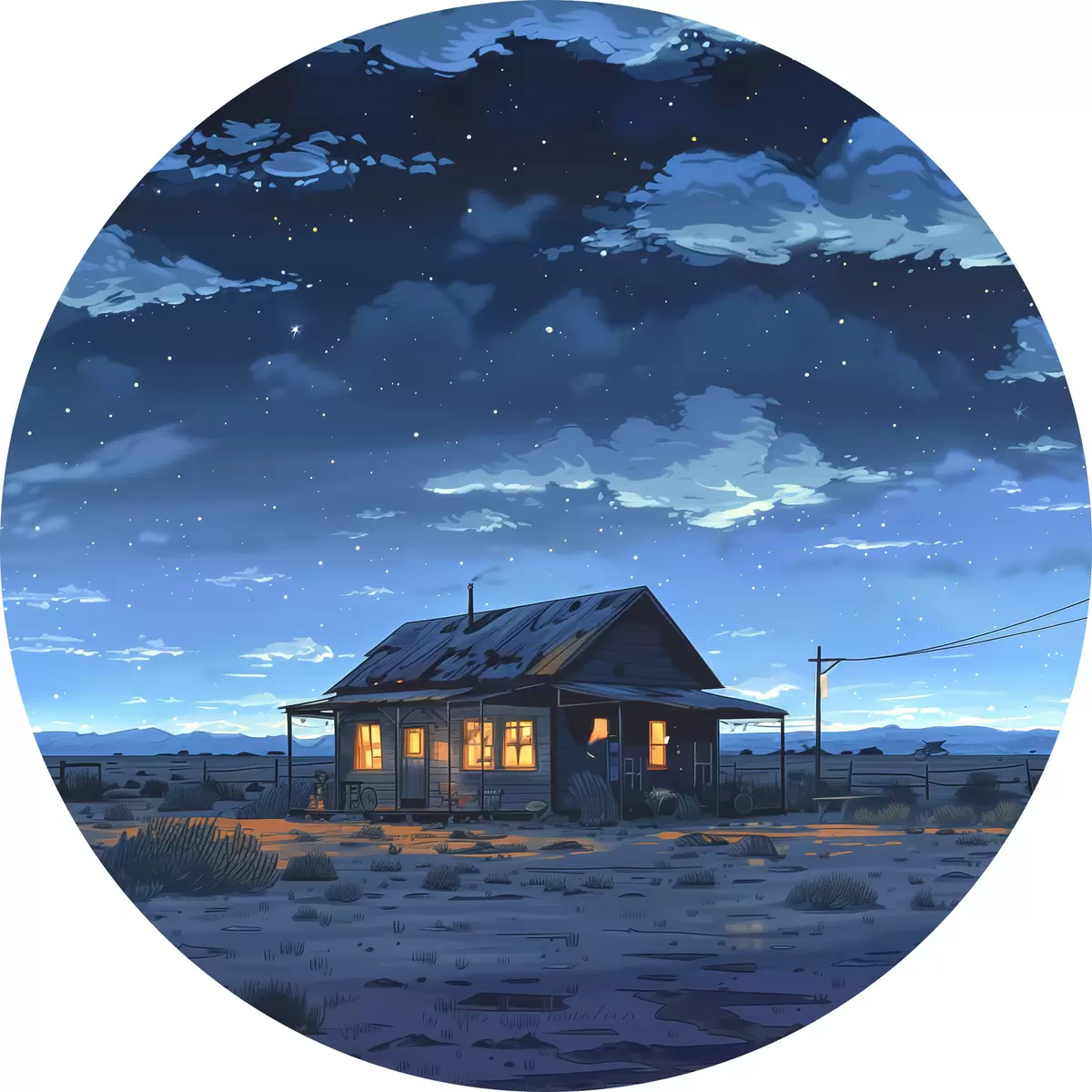 Nuotrauka Ūkio namas dykumoje, žvaigždėtas nakties dangus, debesys, gamtos peizažas Nr r39771