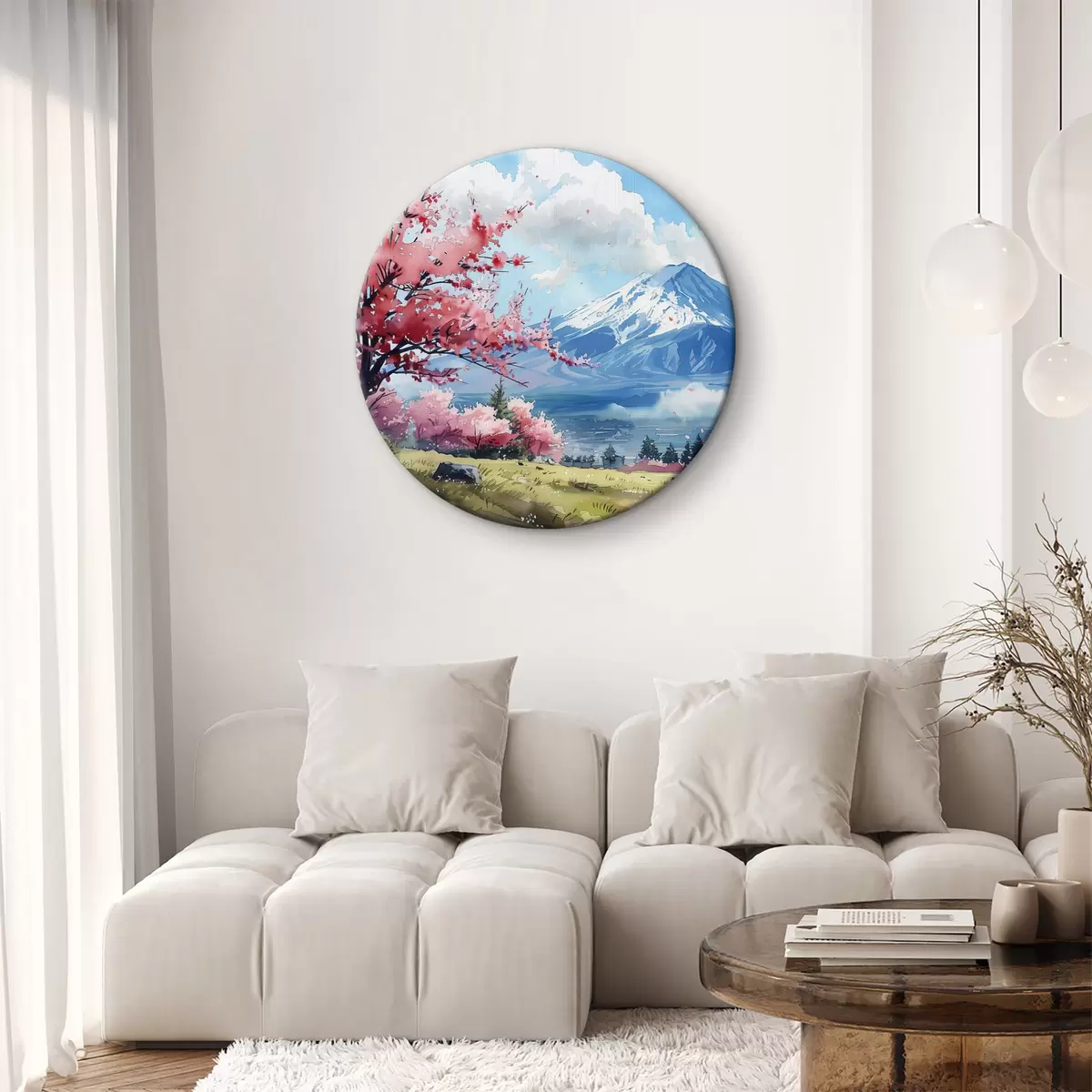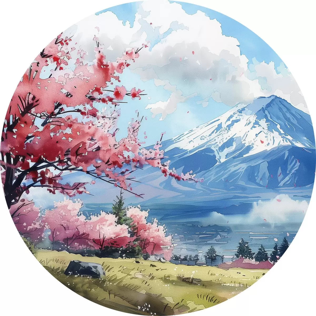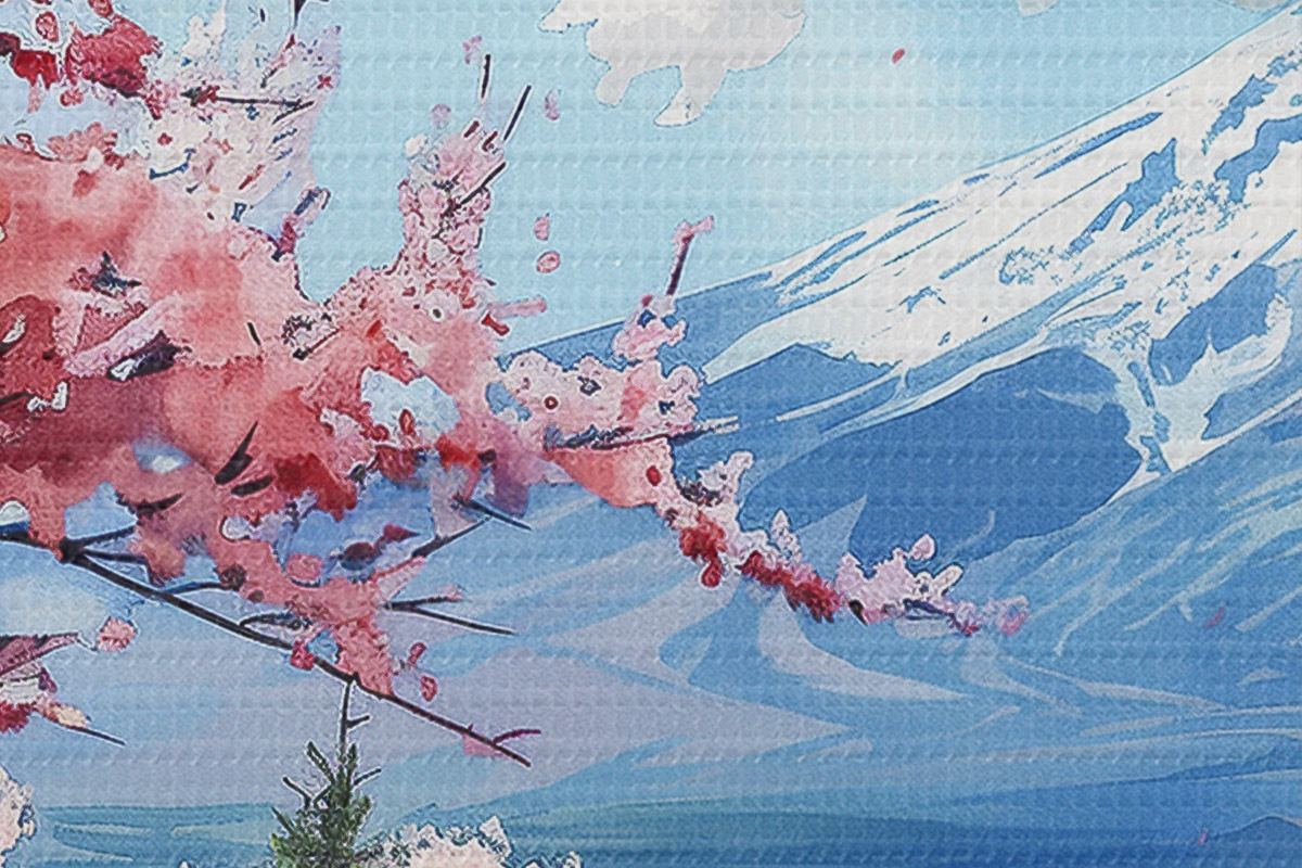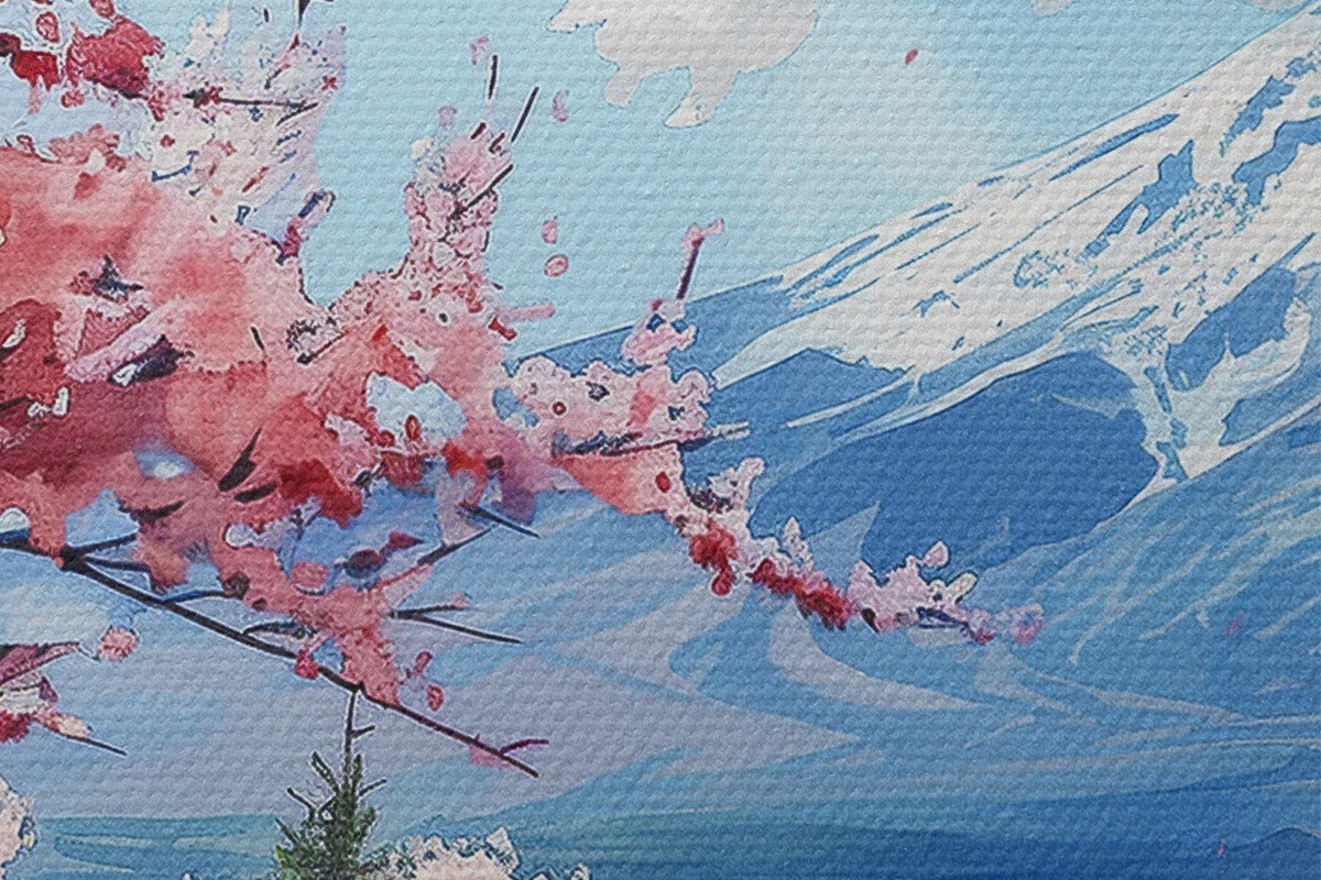 Nuotrauka Fudži kalnų peizažas, pavasarį žydinti gamta, vyšnios, japoniška Nr r39777
