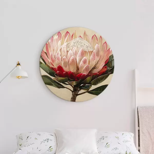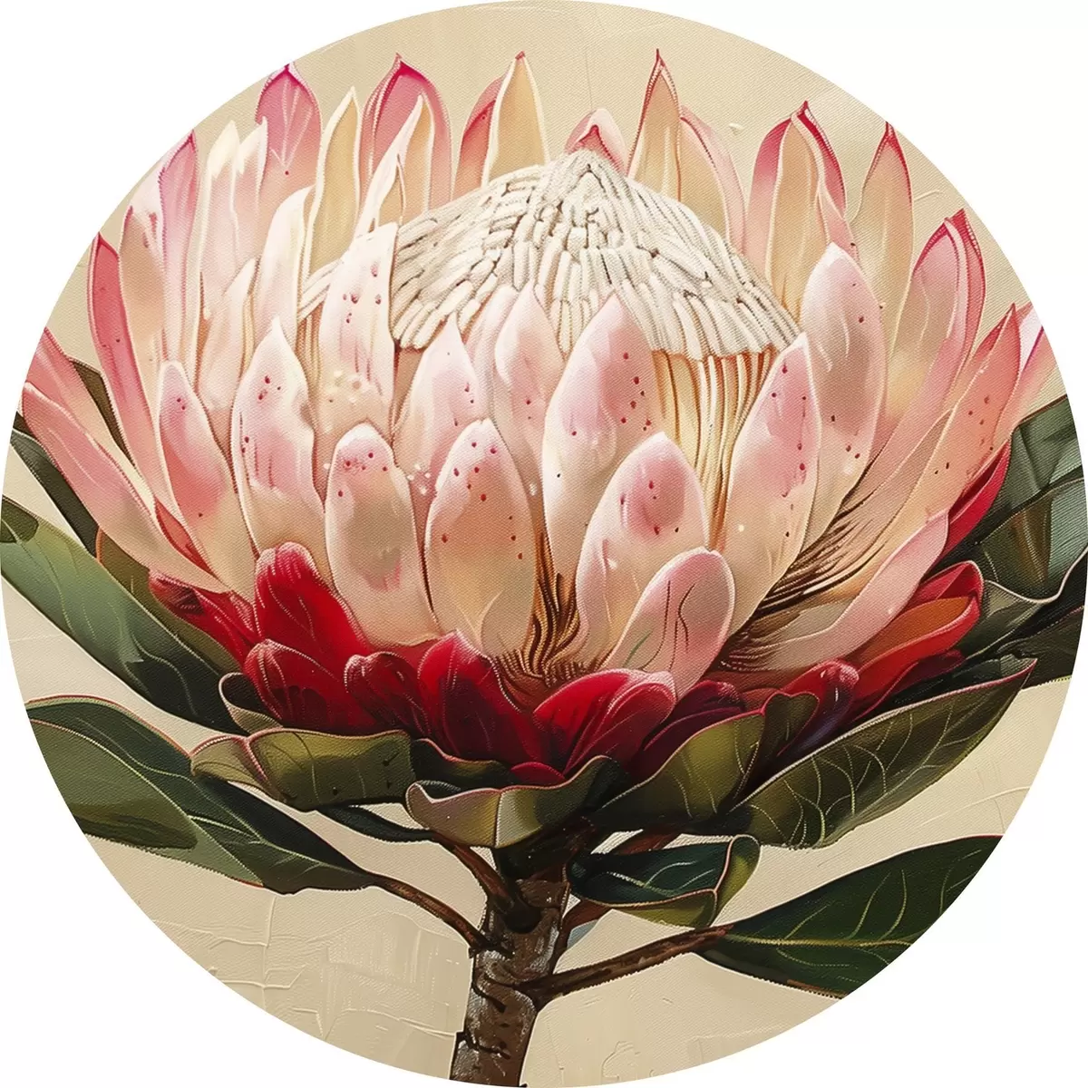Nuotrauka Protea gėlė, akrilo piešinys, gėlių, švelnios natūralios spalvos Nr r39780