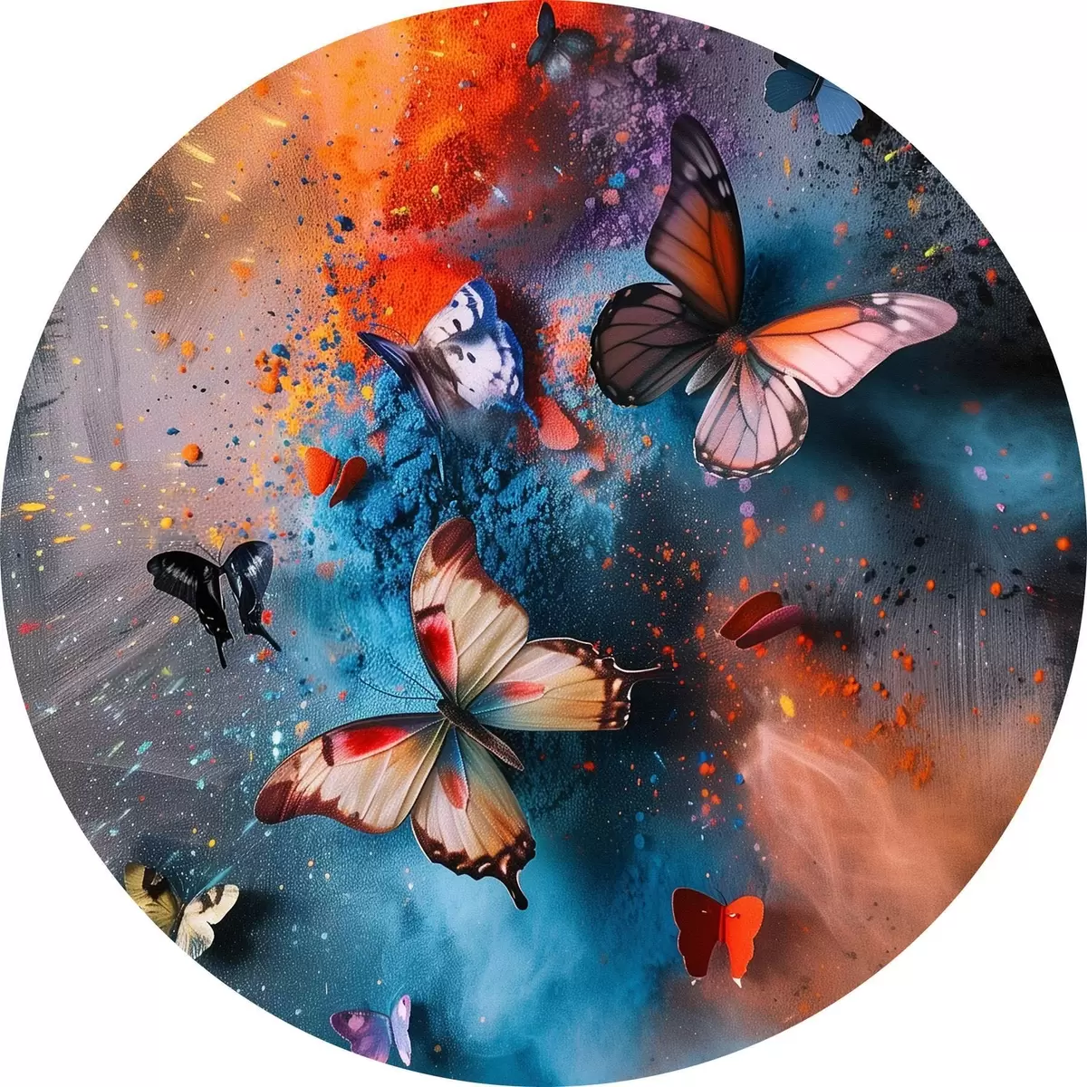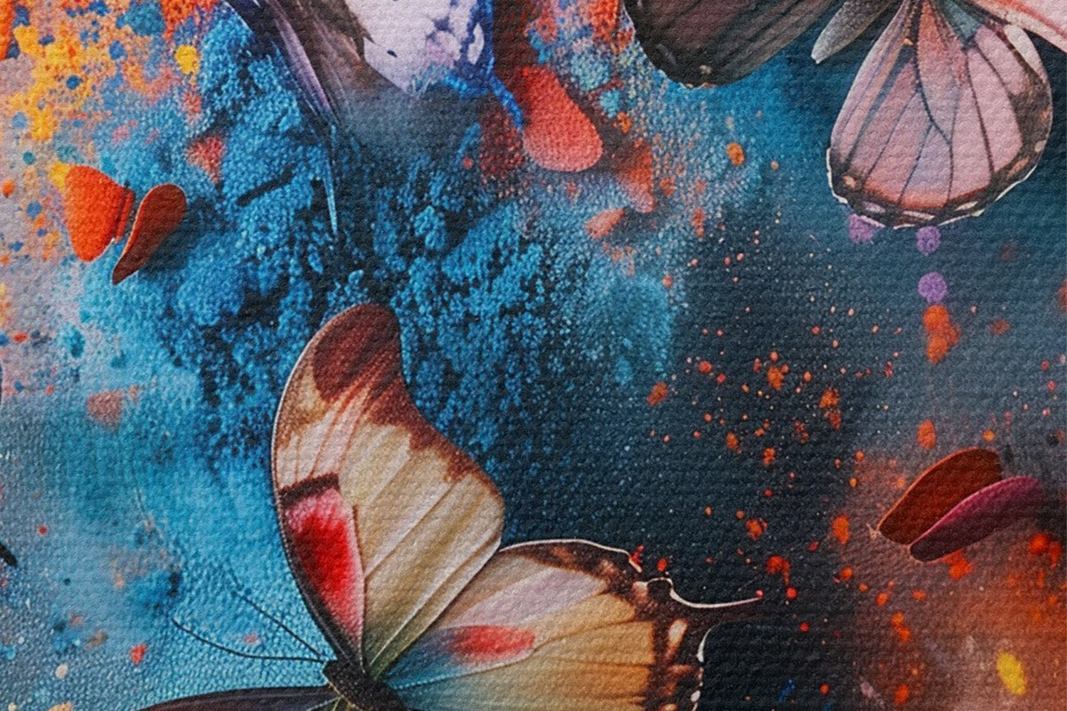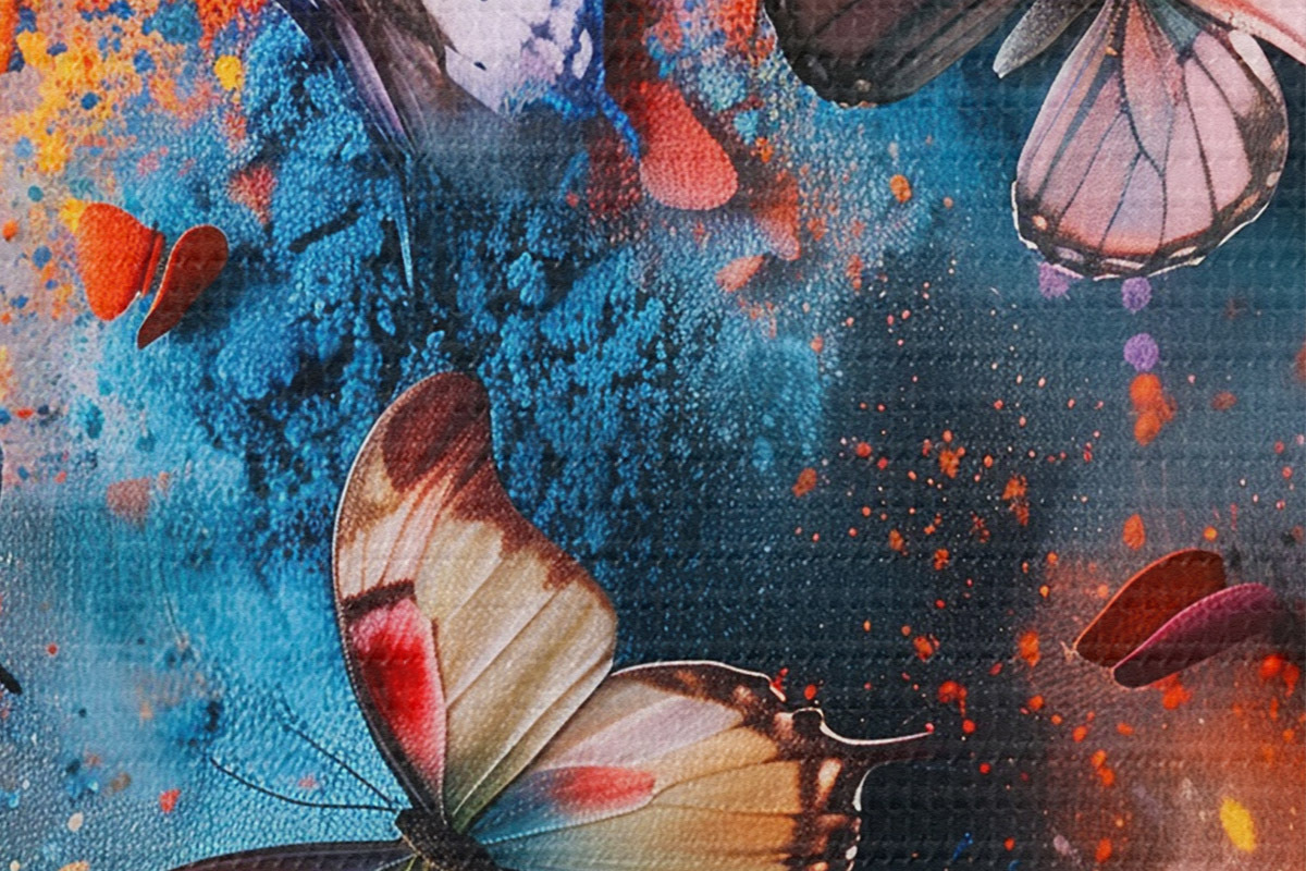 Nuotrauka Drugeliai dažų purslų fone Nr r39803