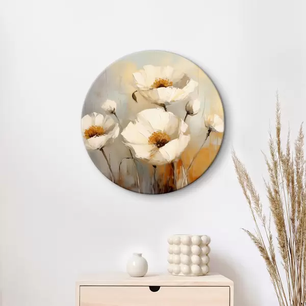 Nuotrauka Baltųjų aguonų aliejinė tapyba, mėlynos ir oranžinės spalvos Nr r39815