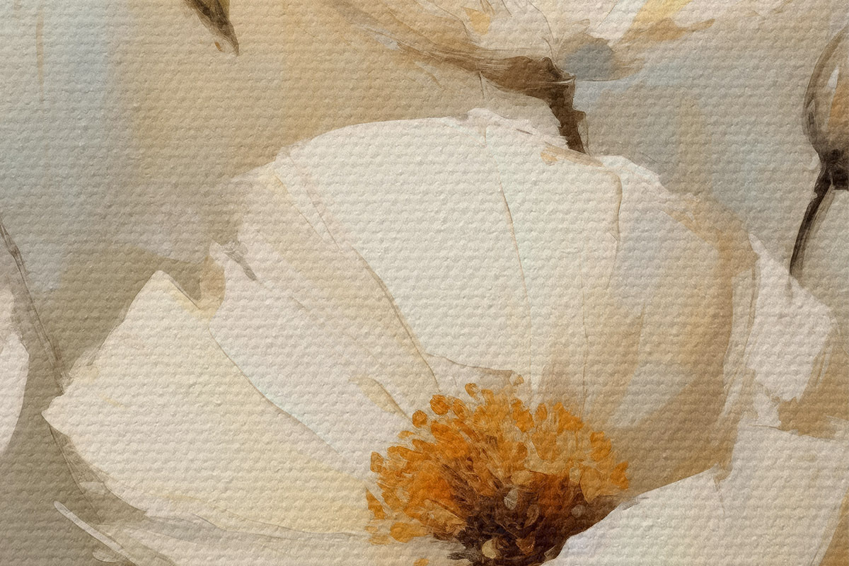 Nuotrauka Baltųjų aguonų aliejinė tapyba, mėlynos ir oranžinės spalvos Nr r39815