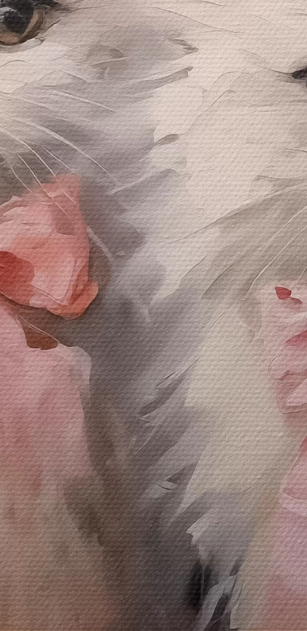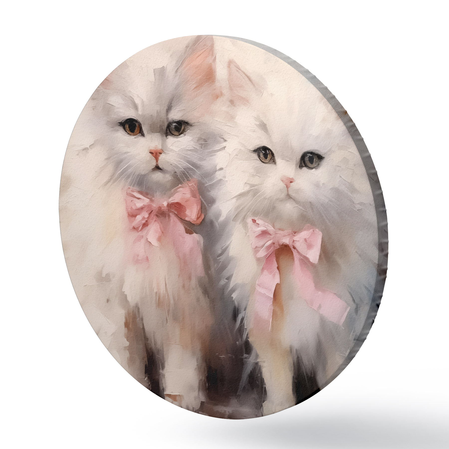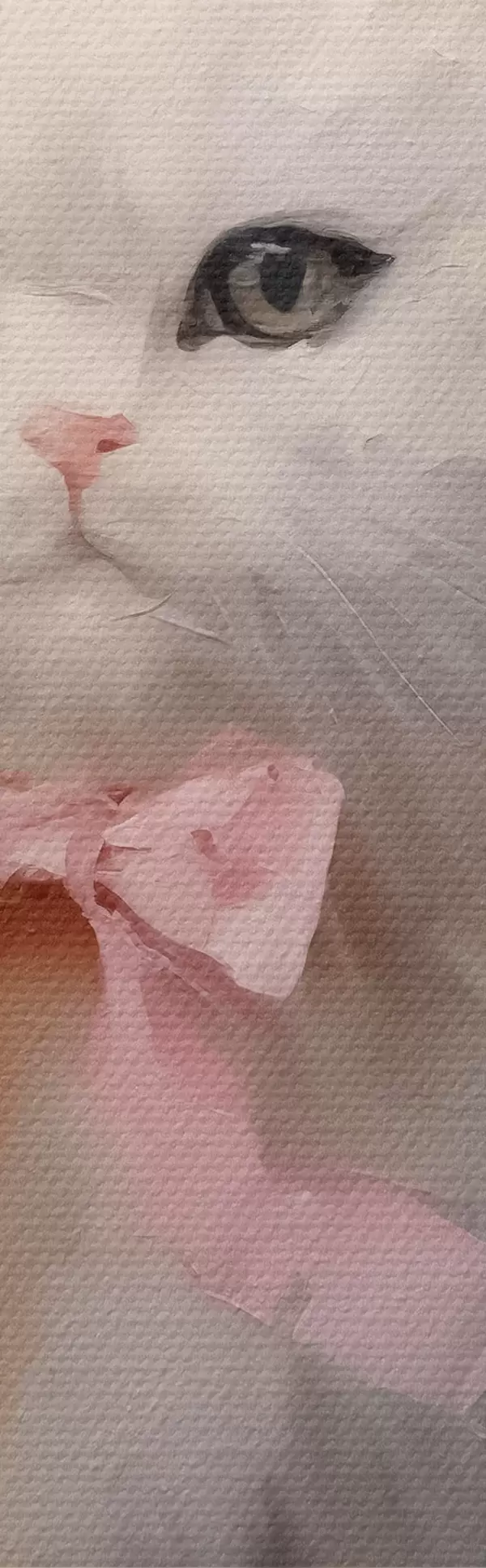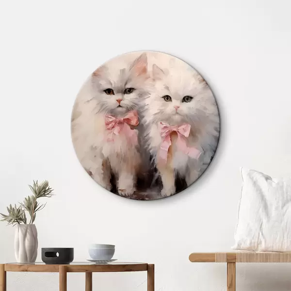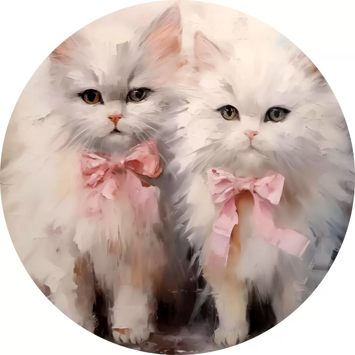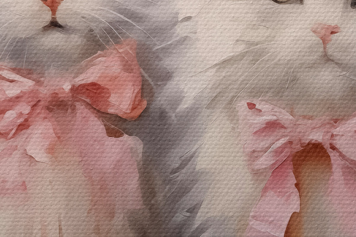 Nuotrauka Baltos katės su rožiniais lankeliais aliejiniais dažais Nr r39826