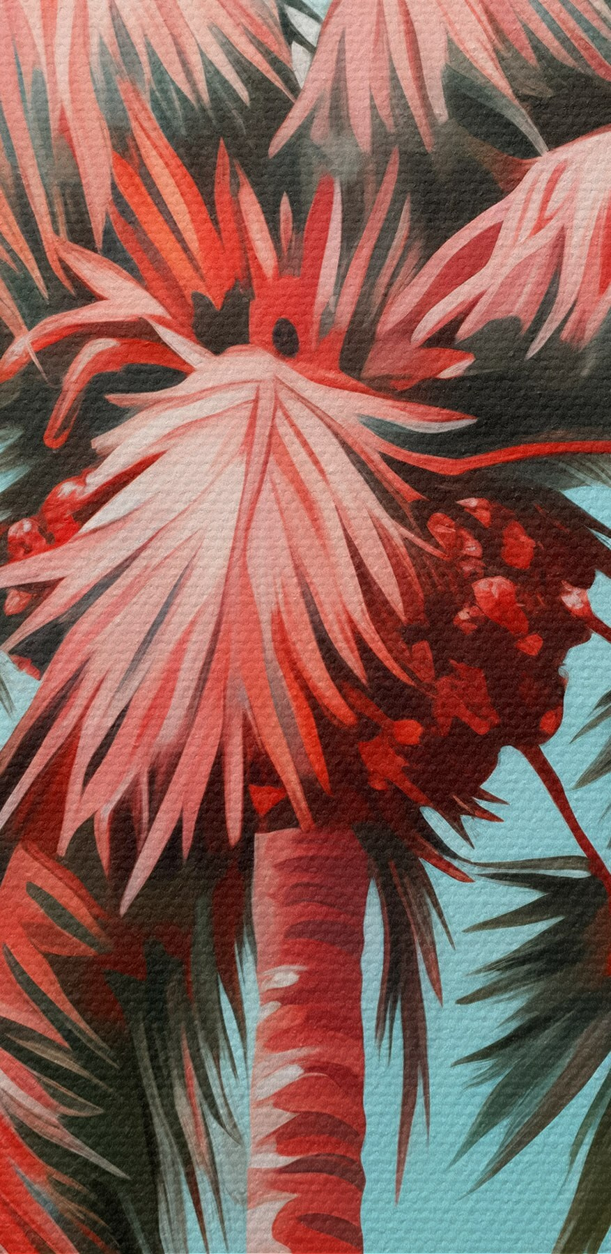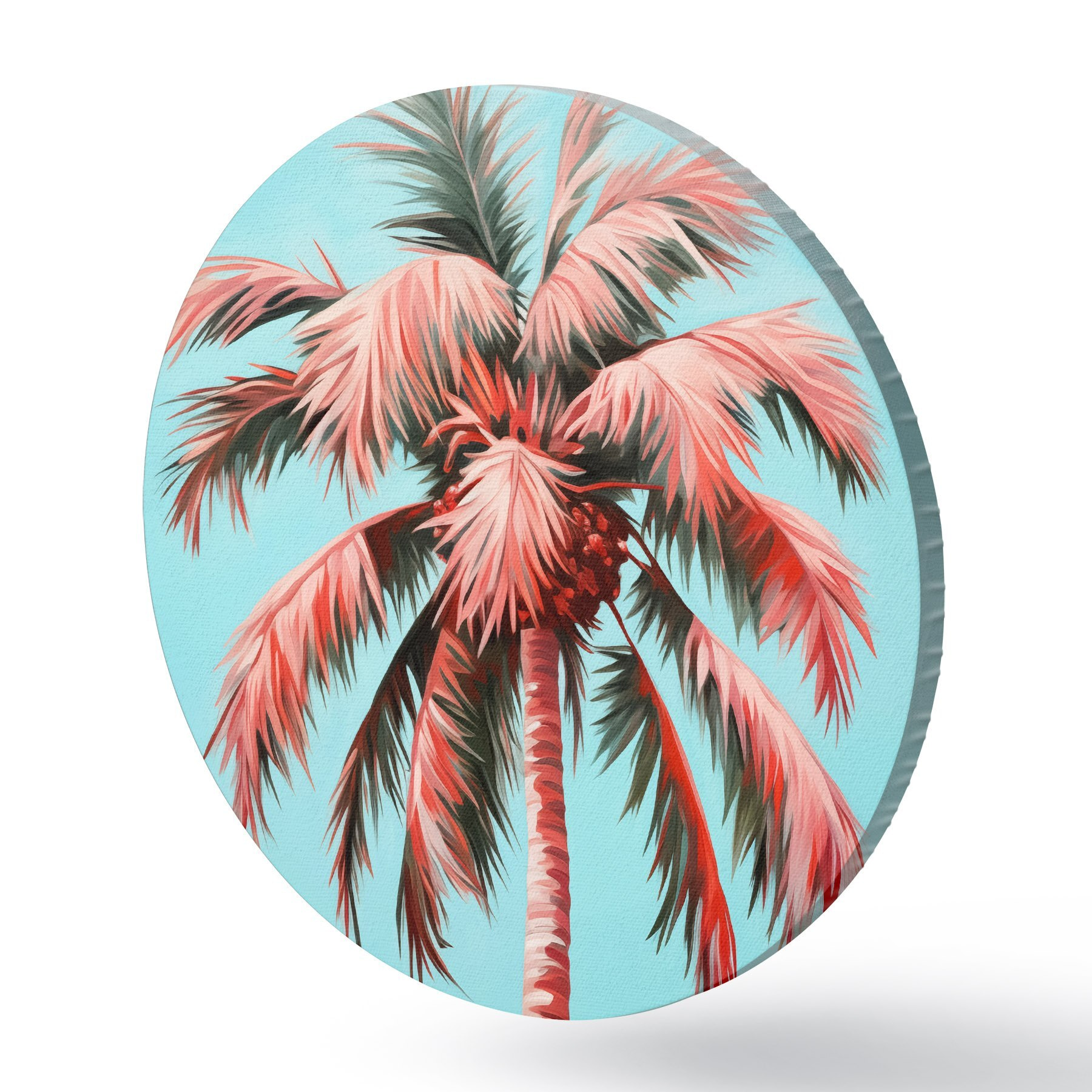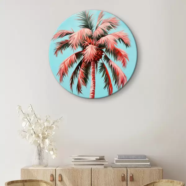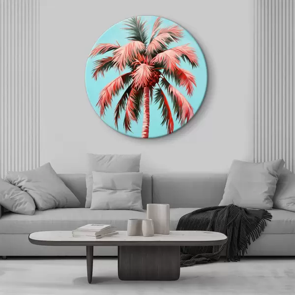 Nuotrauka Rožinė palmė ant mėlyno aliejaus paveikslo Nr r39830