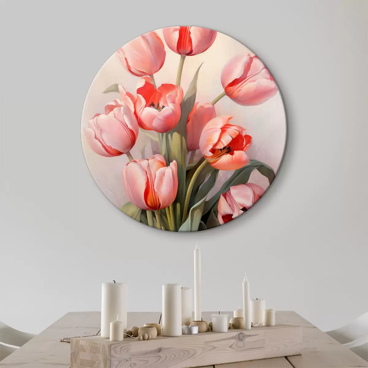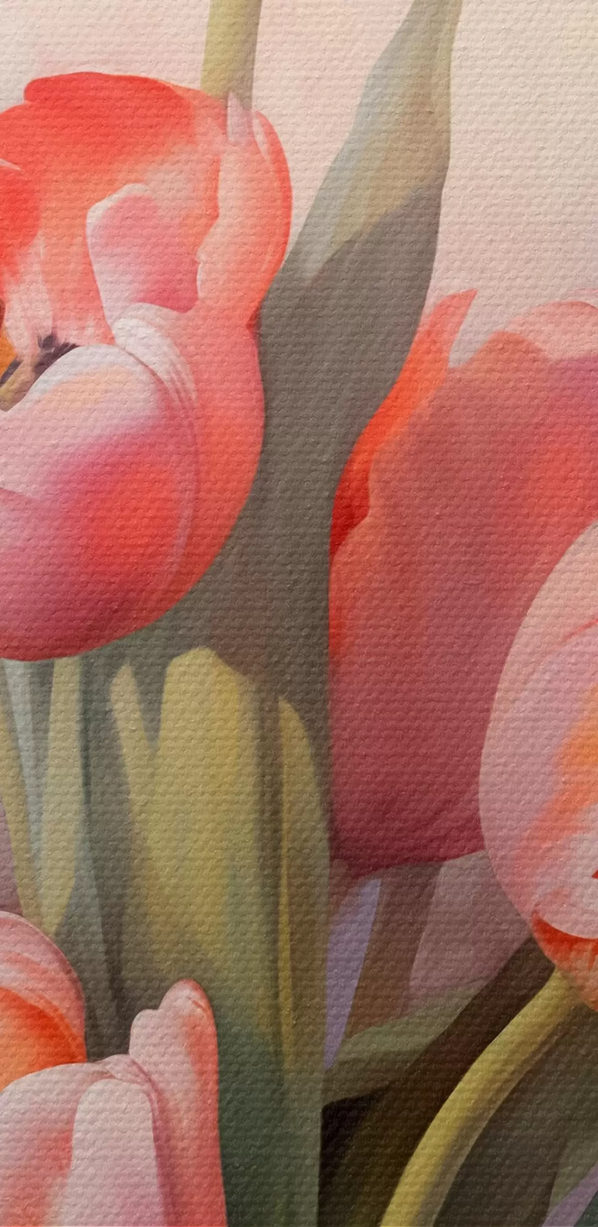 Nuotrauka Rožinės raudonos tulpės ant šviesaus aliejaus paveikslo Nr r39832