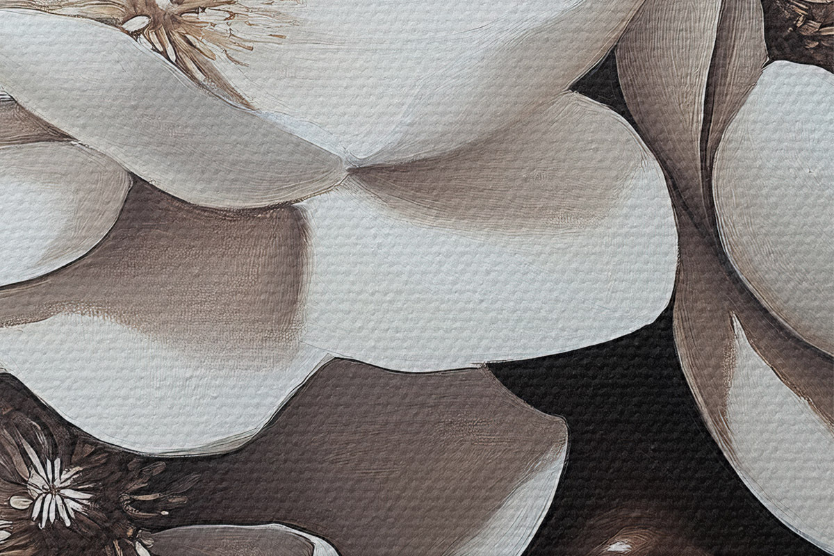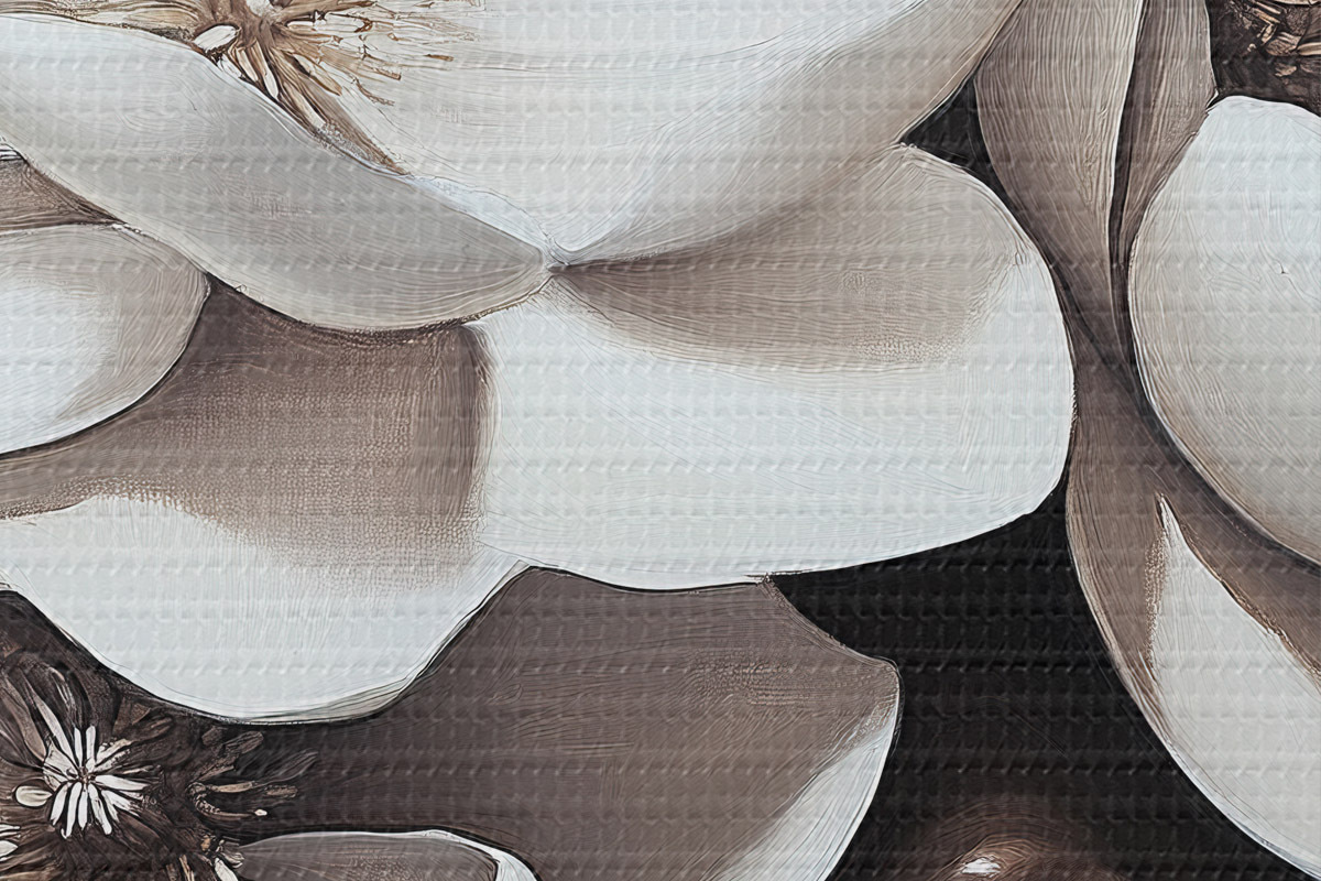 Galima užsakyti trijų rūšių medžiagą: "Economic Canvas" - tanki ir patvari medžiaga skaitmeninei spaudai, identiška dailininko drobės medžiagai, vandeniui atsparus paviršius, tikroviškas detalių atkūrimas, vidutinio grūdėtumo medžiaga. Premium Canvas - tekstūra primena dailininko drobę (susipynę smulkūs siūlai). Minkštas, detalus vaizdo atkūrimas ant matinio paviršiaus. Eco-Premium - aukštos kokybės 100 % medvilninis audinys. Dėl natūralių medvilnės pluoštų medžiaga yra patvari ir atspari nusidėvėjimui. Puikus spalvų atkūrimas ir detalumas.