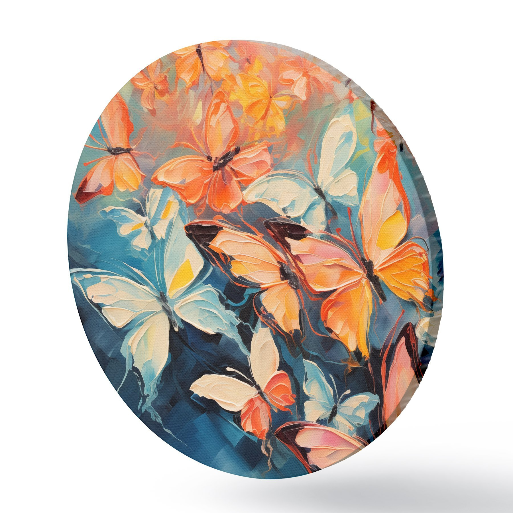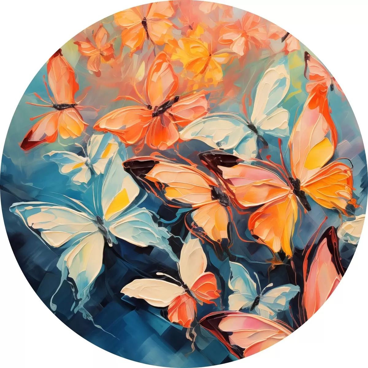 Nuotrauka Drugelių pulkas, skraidantis ant mėlynos alyvos paveikslo Nr r39922