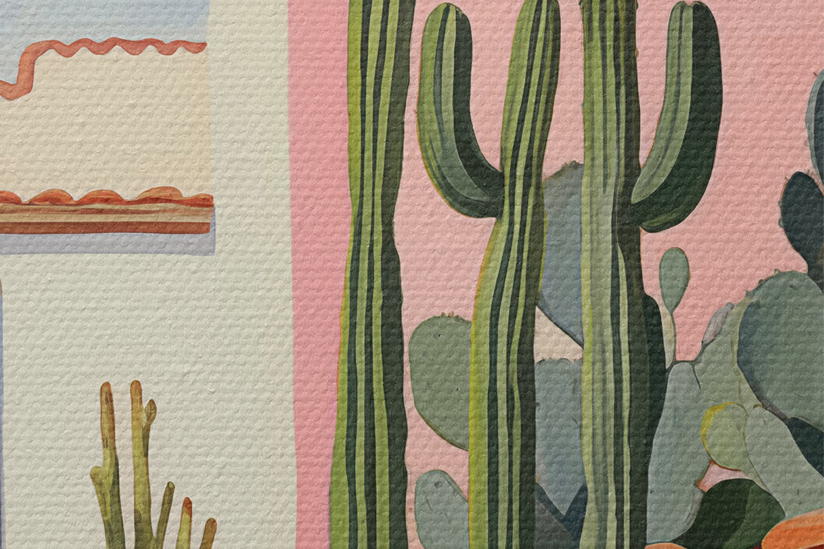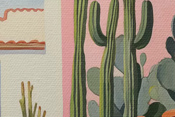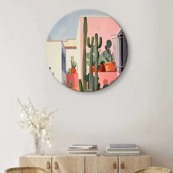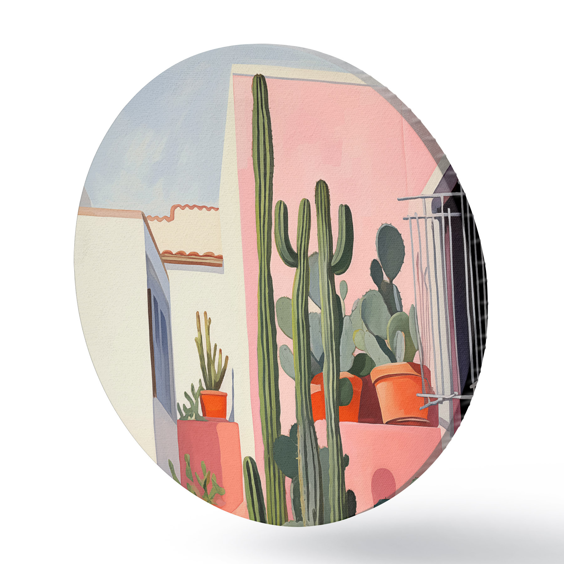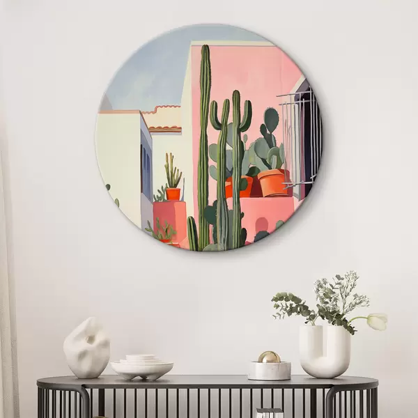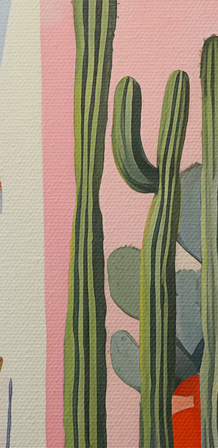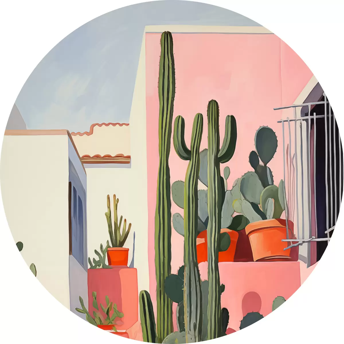 Nuotrauka Ilgi kaktusai rožinio namo fone ir aliejinė tapyba Nr r39926