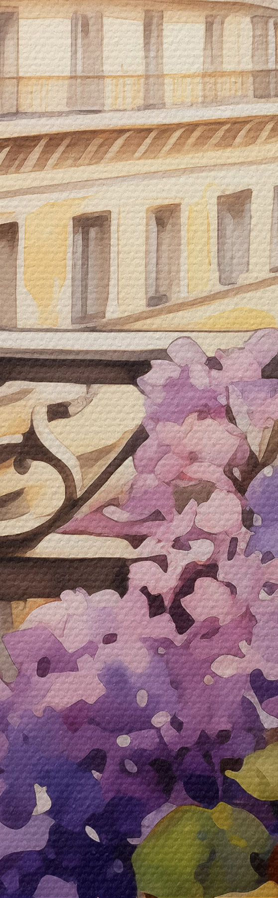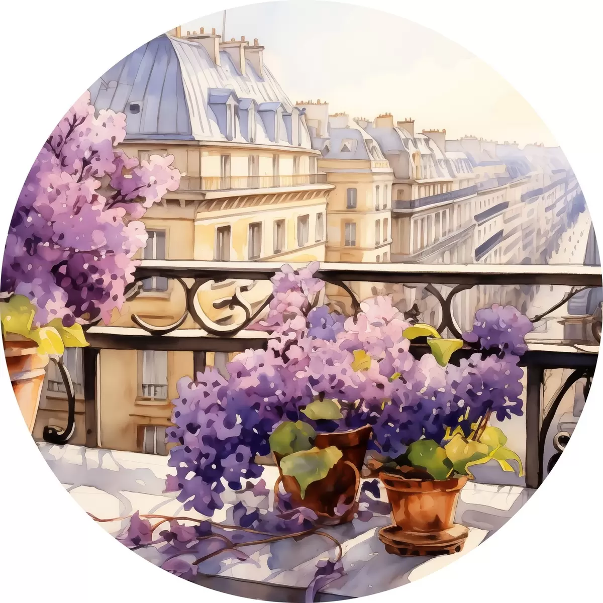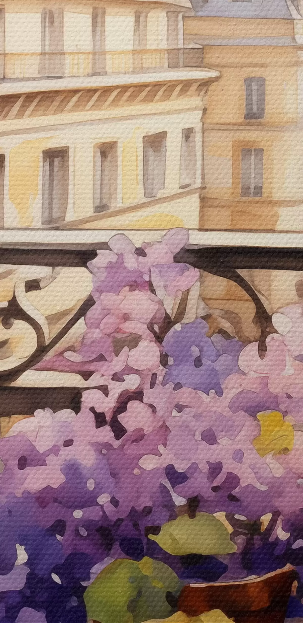Nuotrauka Violetinės vazonėlyje balkone Paryžiaus akvarelė Nr r39931