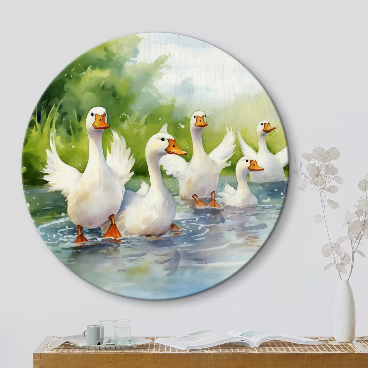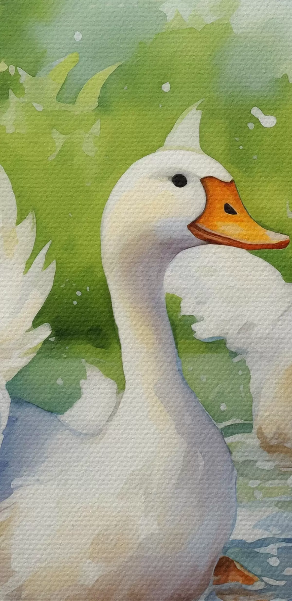 Nuotrauka Baltosios žąsys maudosi tvenkinyje akvarele Nr r39939