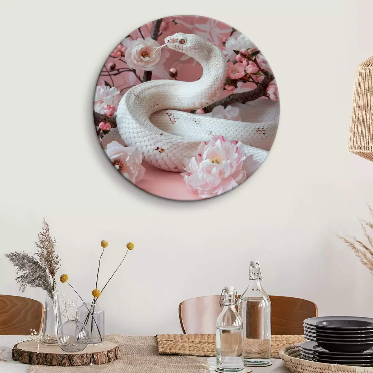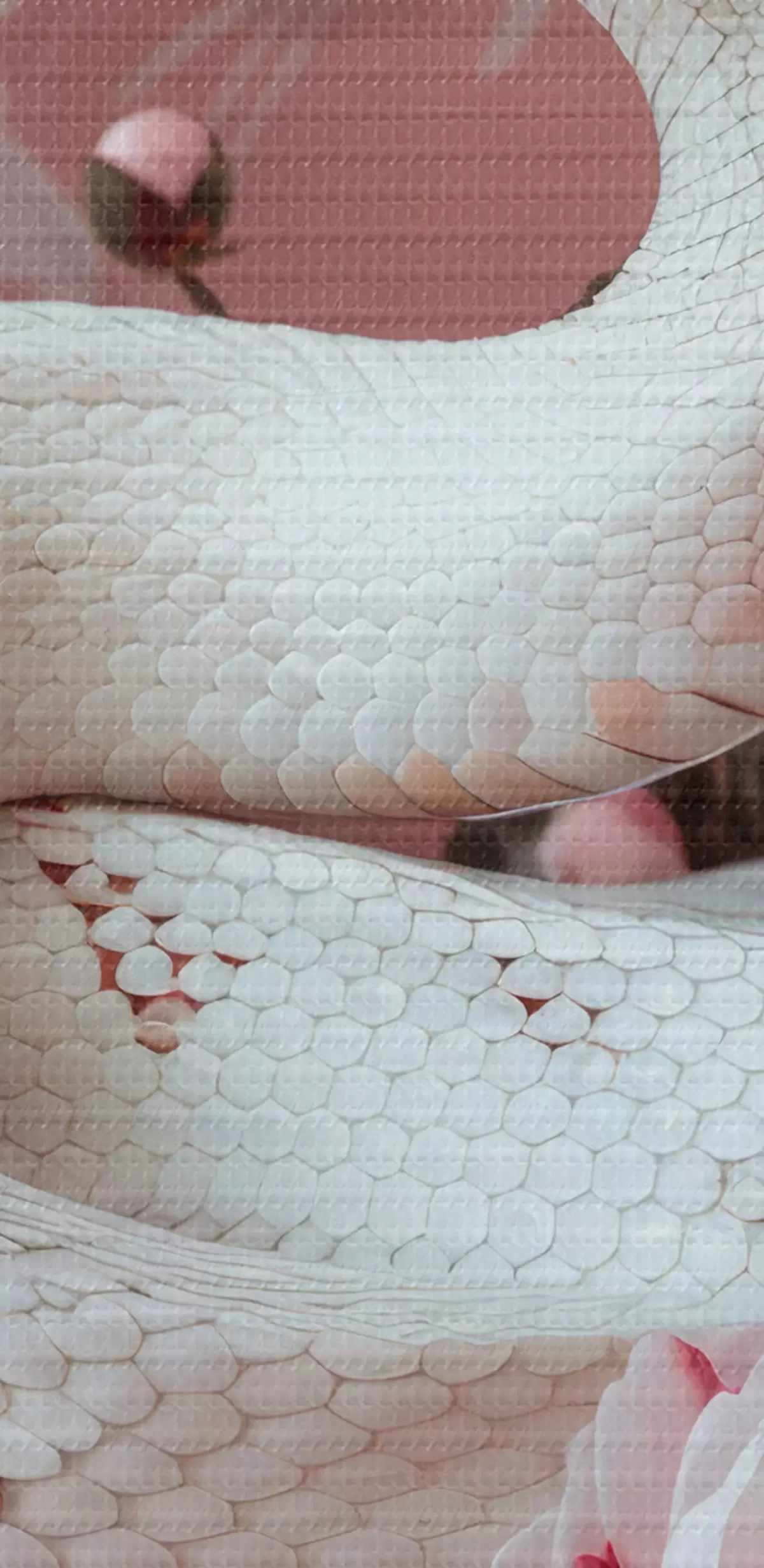 Nuotrauka Balta gyvatė ir rožinės gėlės Nr r39941