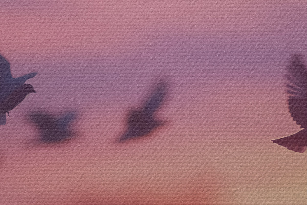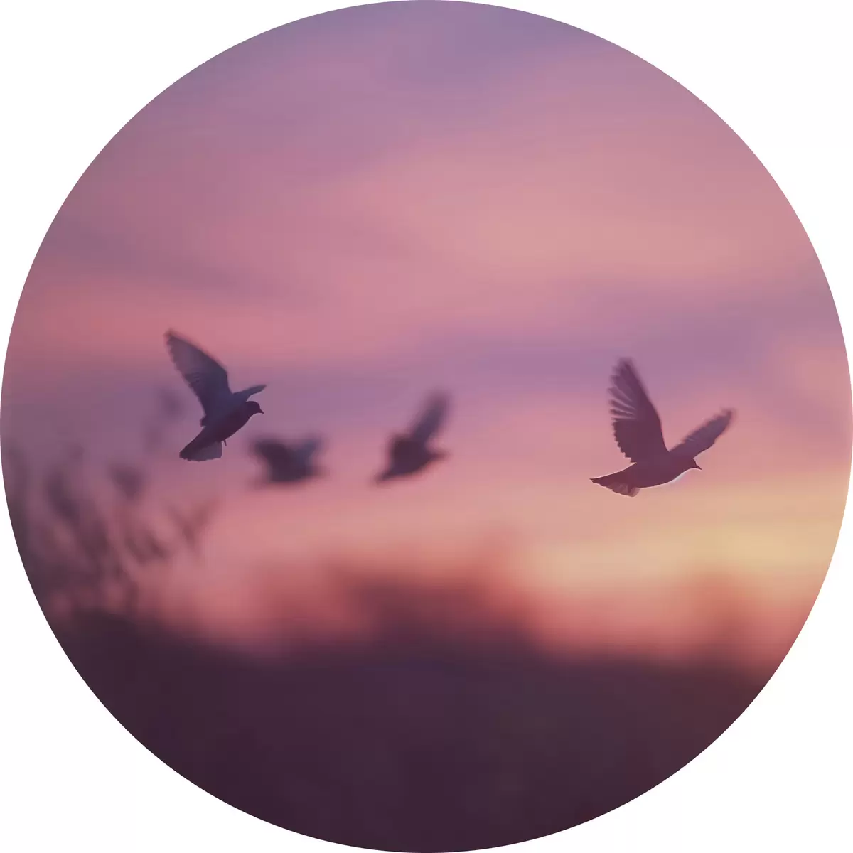 Nuotrauka Skraidantys paukščiai, purpurinis saulėlydžio dangus, gamtos peizažas, kino Nr r39972