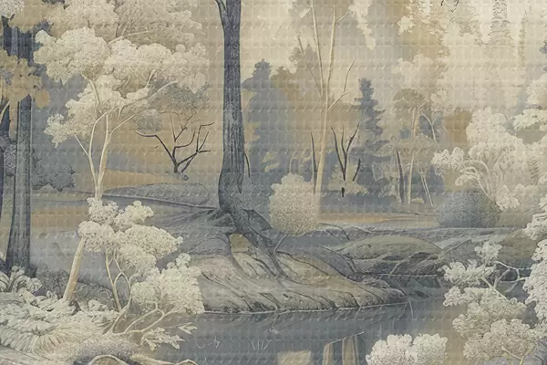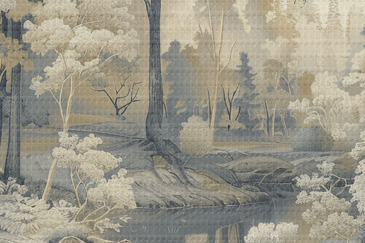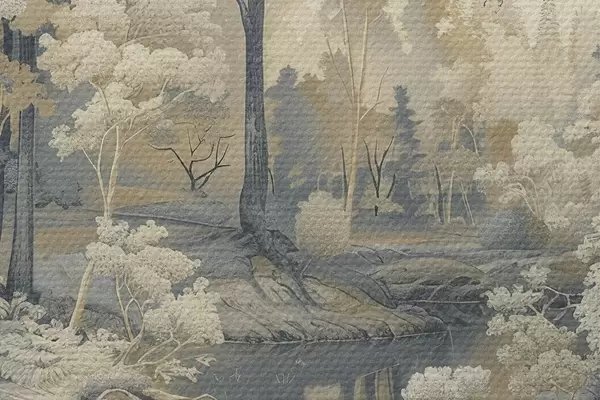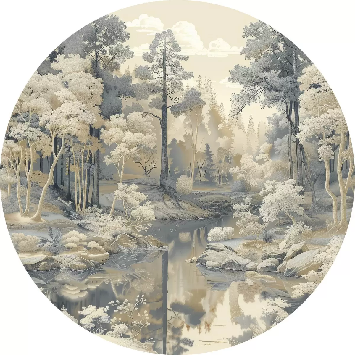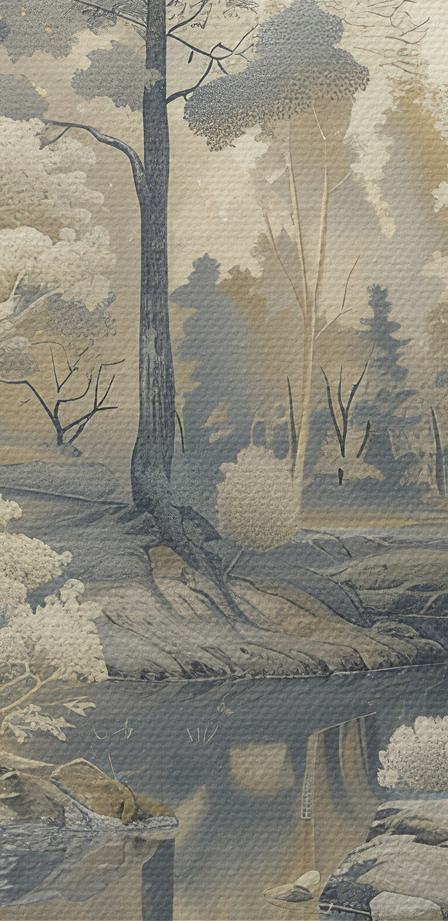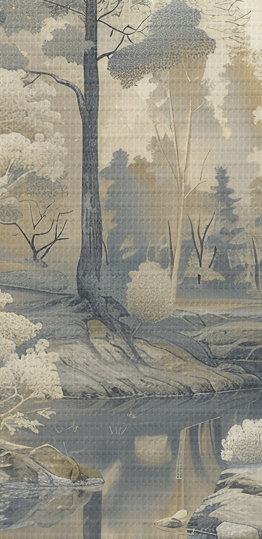 Nuotrauka Miško peizažas, vienspalvės spalvos, medžiai, tvenkinys, švelni pastelė Nr r39974