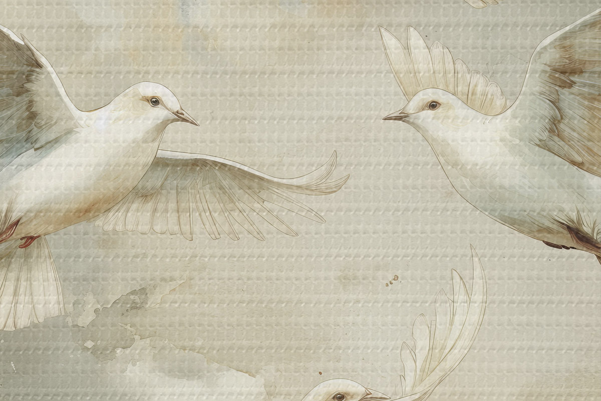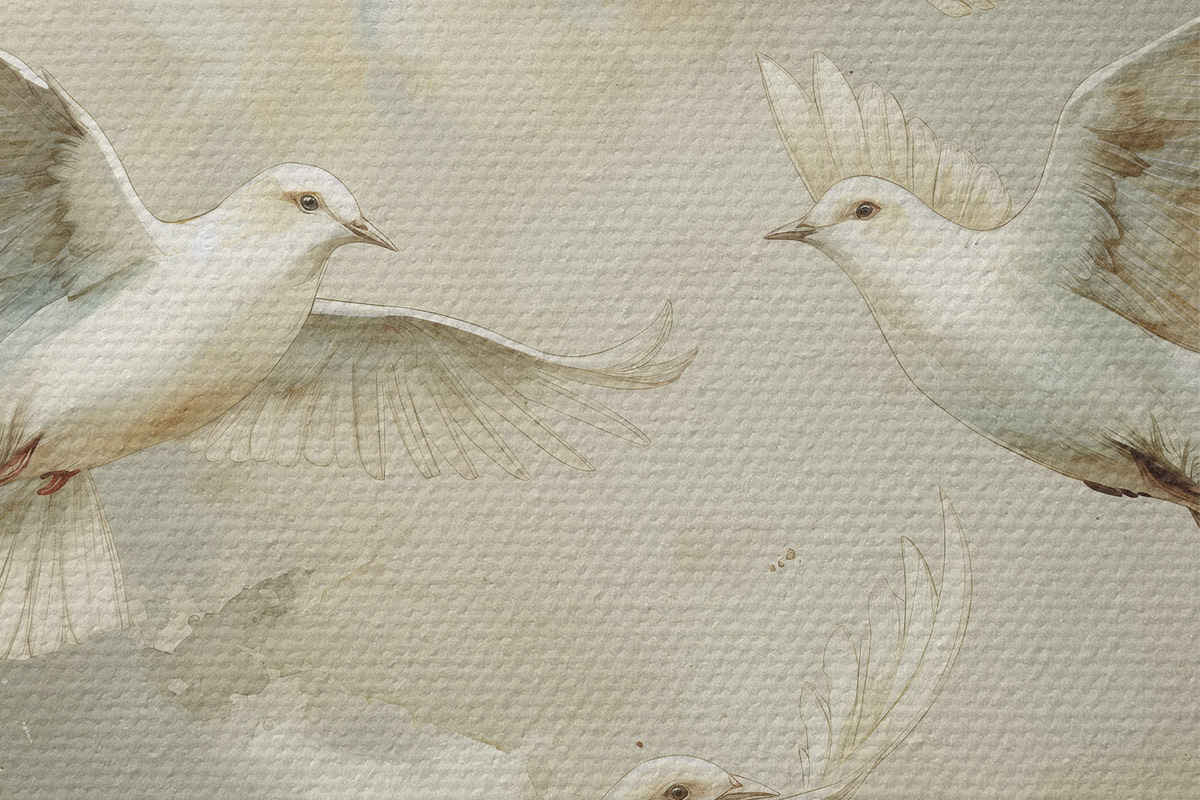 Nuotrauka Akvareliniai skraidantys paukščiai, švelnios smėlio ir baltos spalvos, balandžiai Nr r39976