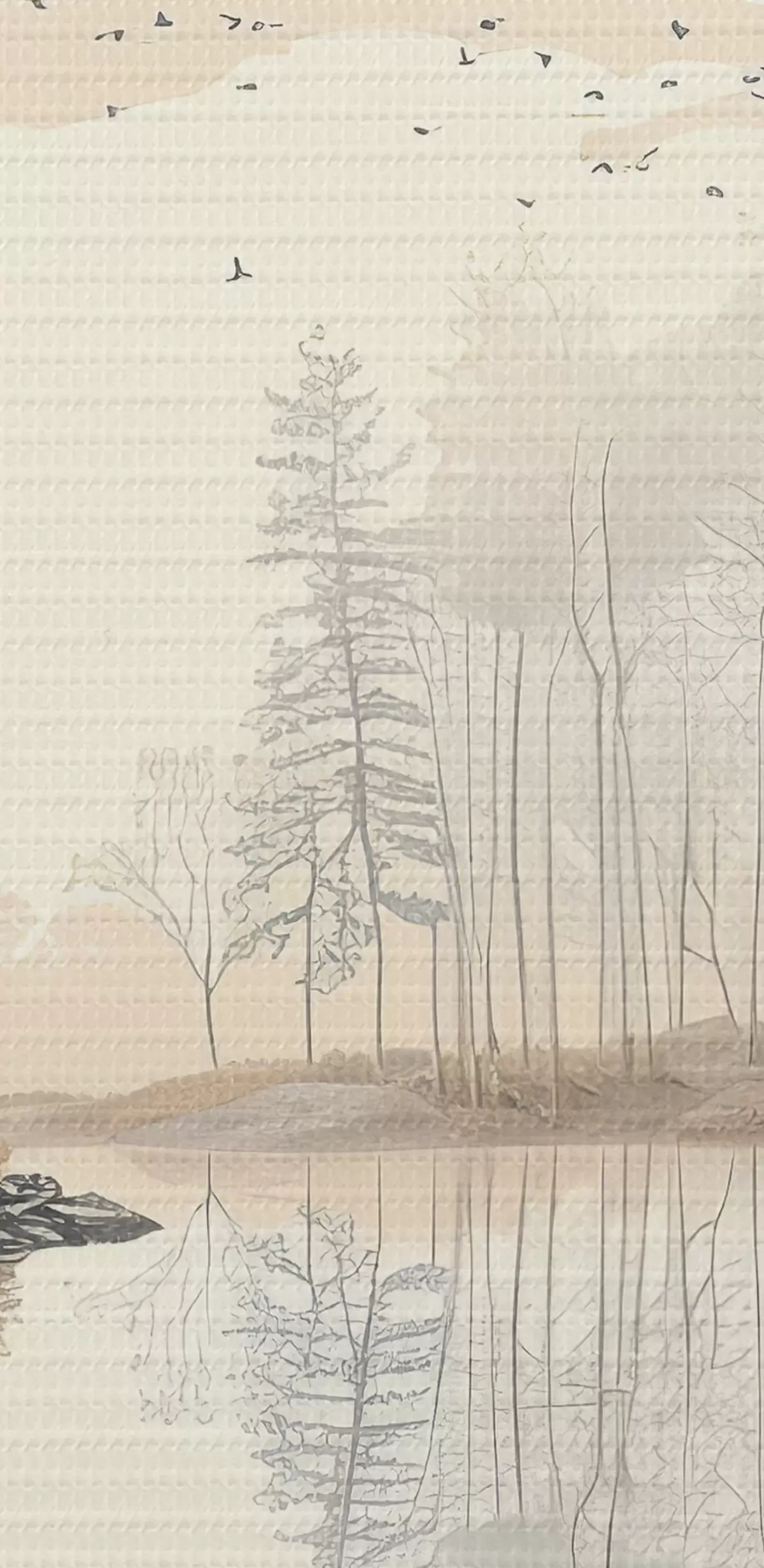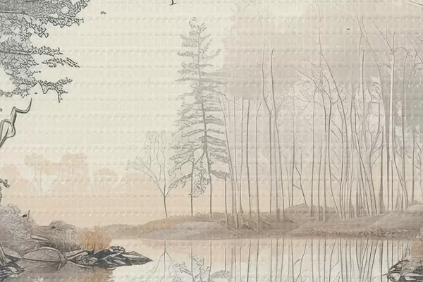 Nuotrauka Gražus gamtos peizažas, tvenkinys ir medžiai, laukinė gamta, švelnios pastelinės spalvos Nr r39980