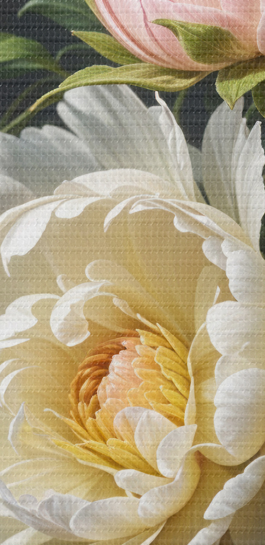 Galima užsakyti trijų rūšių medžiagą: "Economic Canvas" - tanki ir patvari medžiaga skaitmeninei spaudai, identiška dailininko drobės medžiagai, vandeniui atsparus paviršius, tikroviškas detalių atkūrimas, vidutinio grūdėtumo medžiaga. Premium Canvas - tekstūra primena dailininko drobę (susipynę smulkūs siūlai). Minkštas, detalus vaizdo atkūrimas ant matinio paviršiaus. Eco-Premium - aukštos kokybės 100 % medvilninis audinys. Dėl natūralių medvilnės pluoštų medžiaga yra patvari ir atspari nusidėvėjimui. Puikus spalvų atkūrimas ir detalumas.