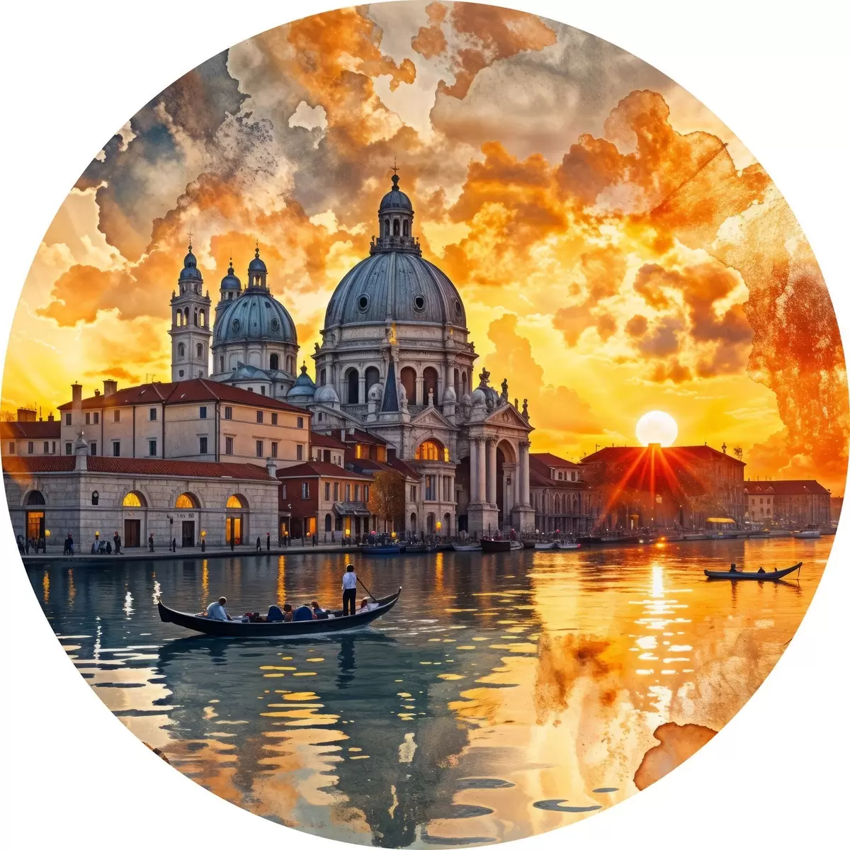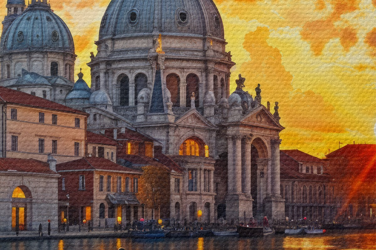 Nuotrauka Spalvingas ir dramatiškas saulėlydis virš Didžiojo kanalo Venecijoje, Italijoje akvarelės menas Nr r40027