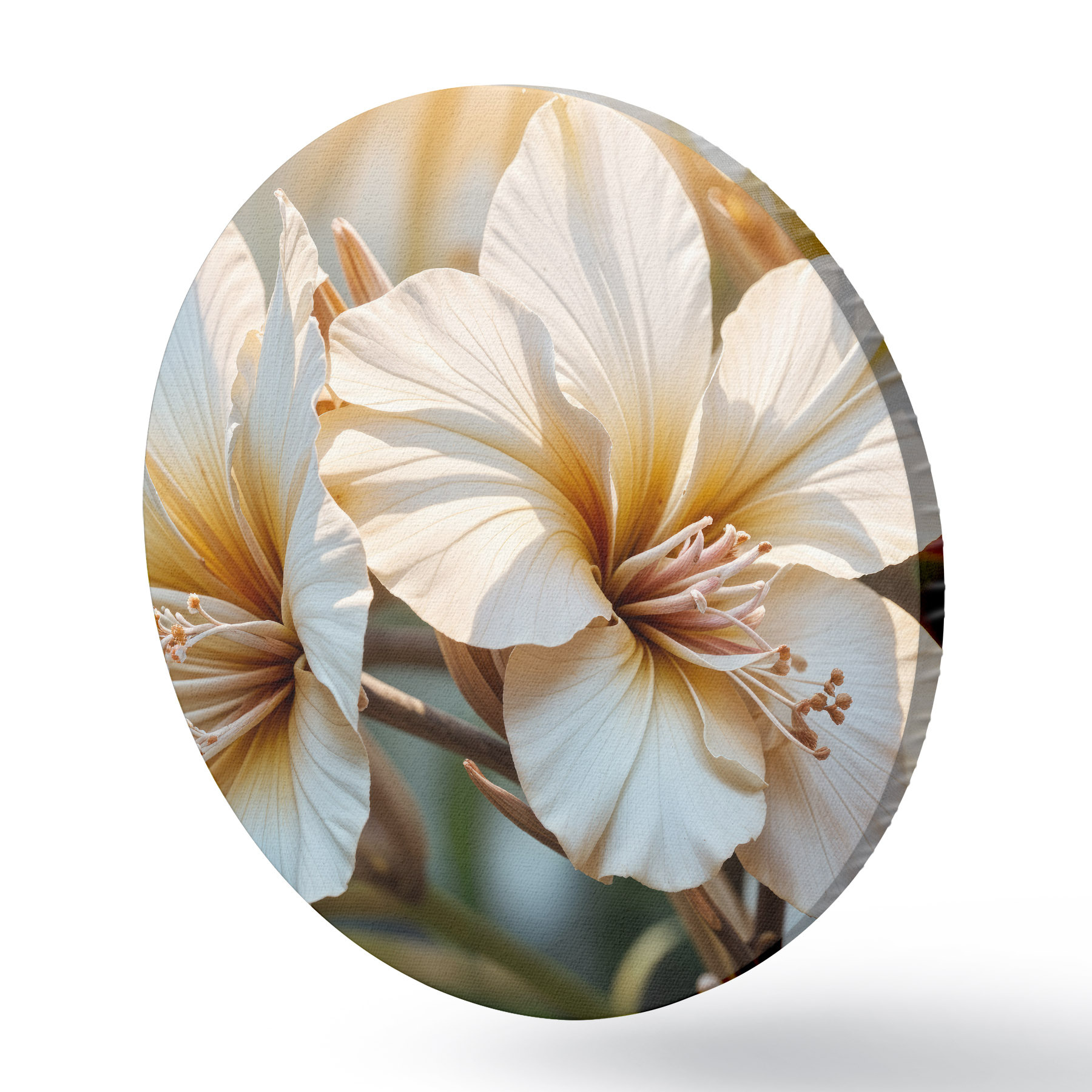 Nuotrauka Žydi baltos ir oranžinės hibisko gėlės su švelnaus fokusavimo fonu Nr r40035