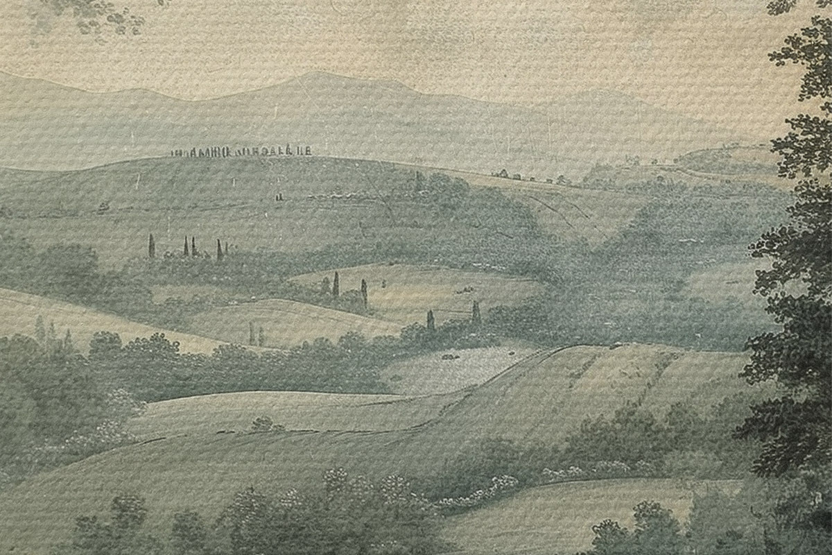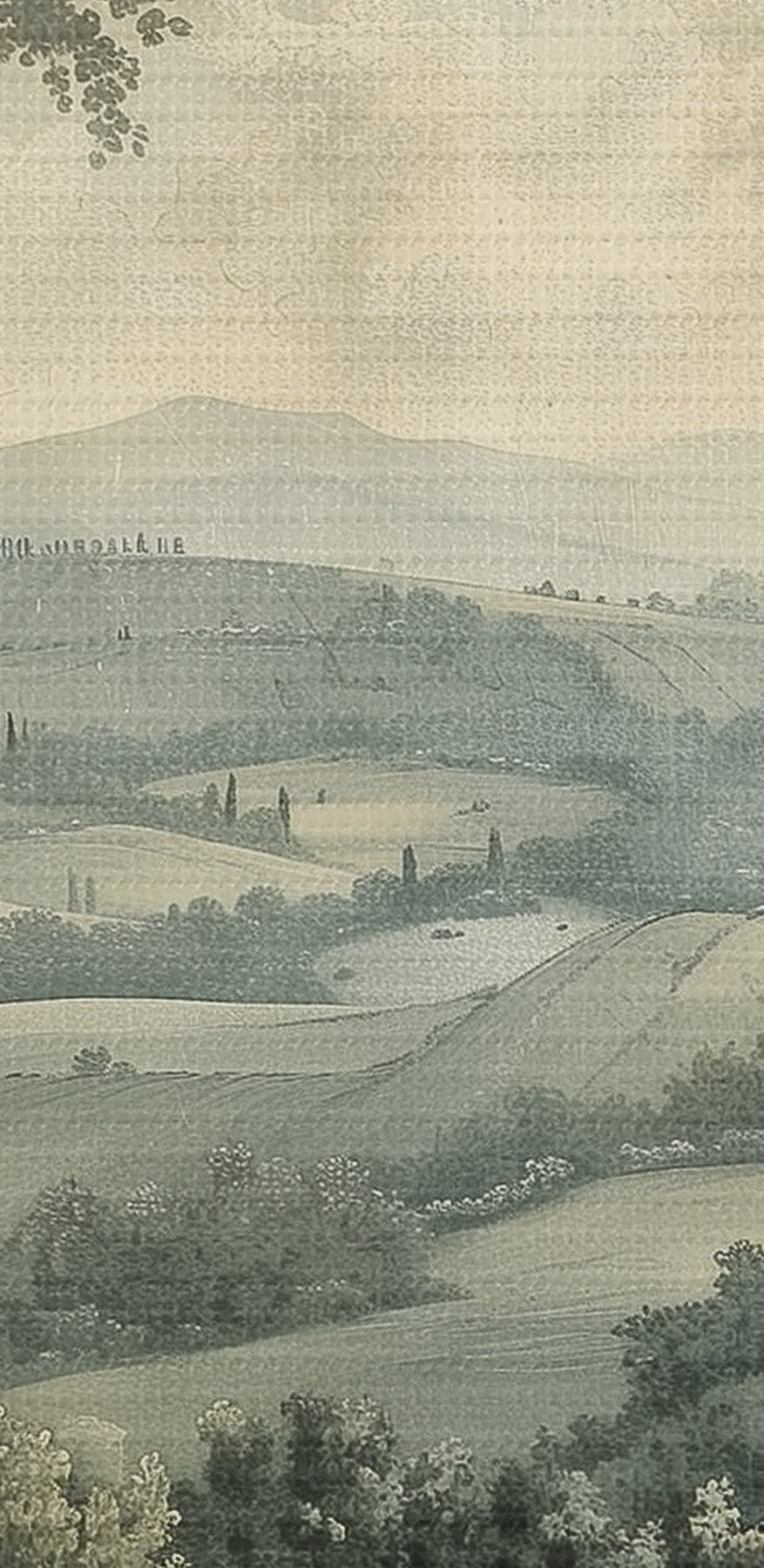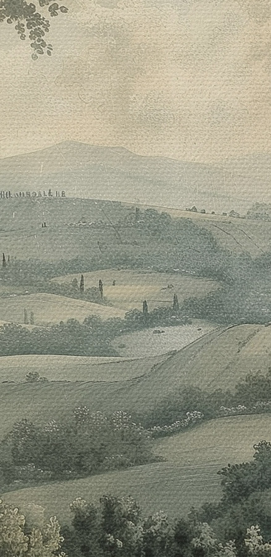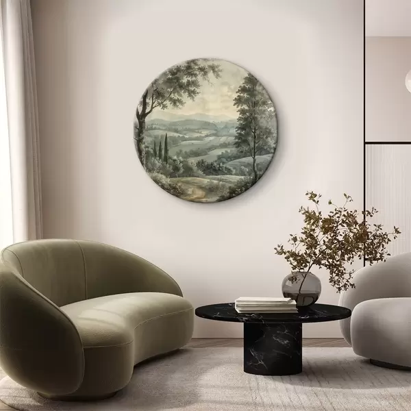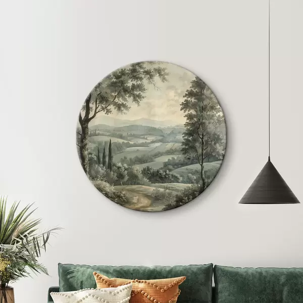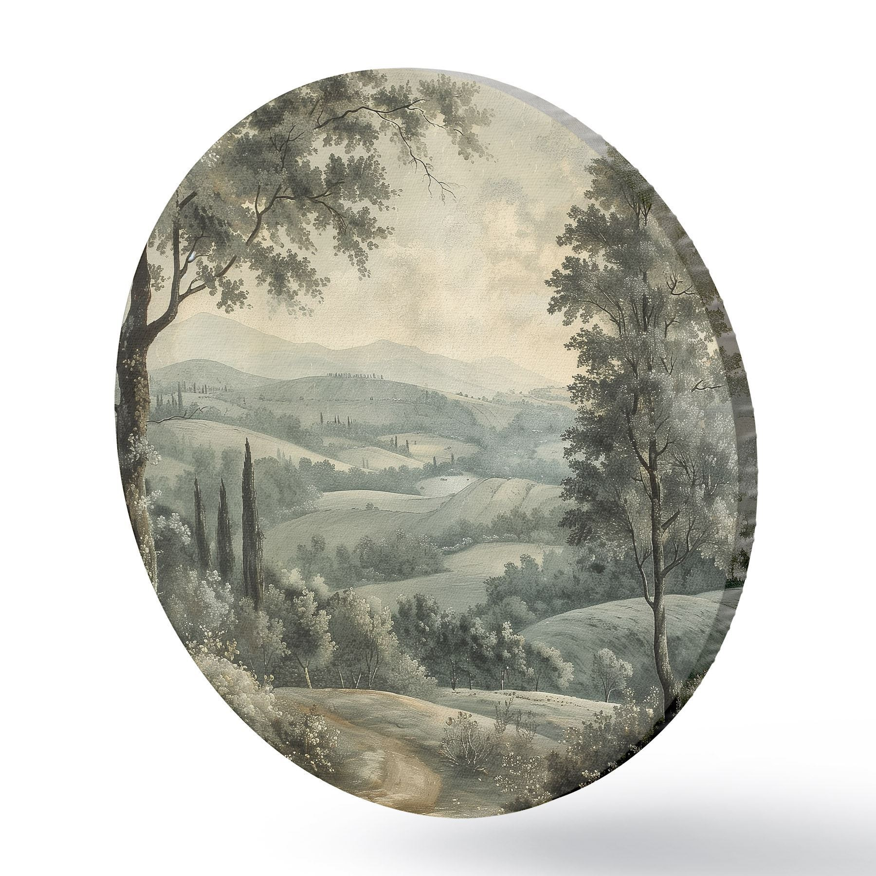 Nuotrauka Senovinis itališkas peizažas, kaimiškas stilius, pastelinės spalvos, kalvos su medžiais, boho Nr r40086