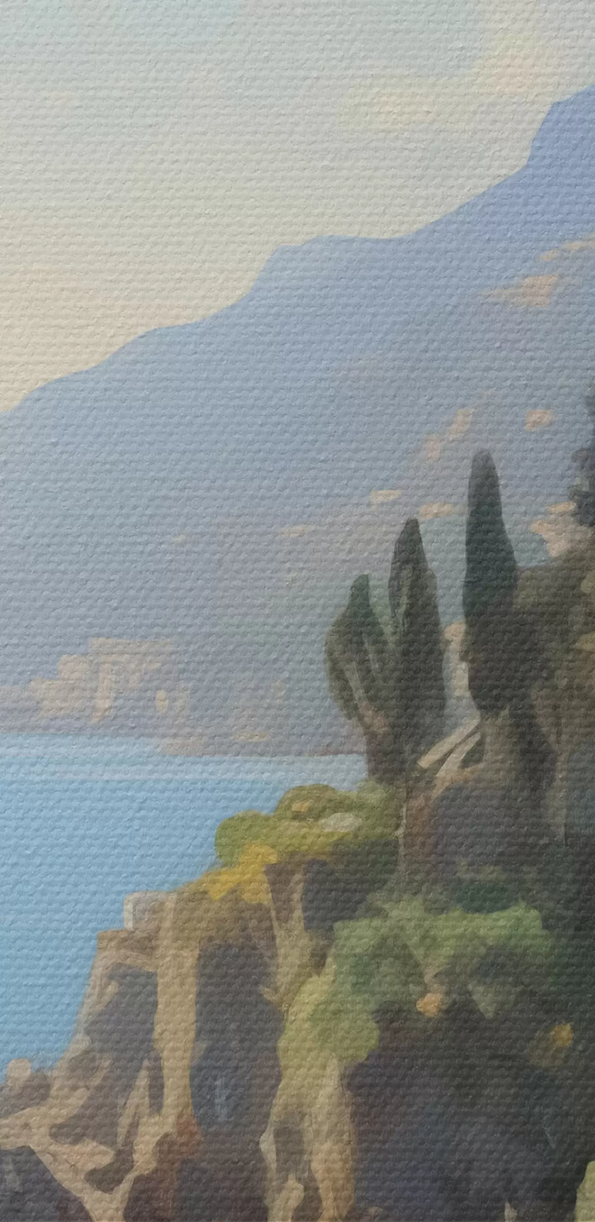 Nuotrauka Vaizdas į jūros įlanką, kalnus Italijoje iš viešbučio aliejinės tapybos imitacijos Nr r40088