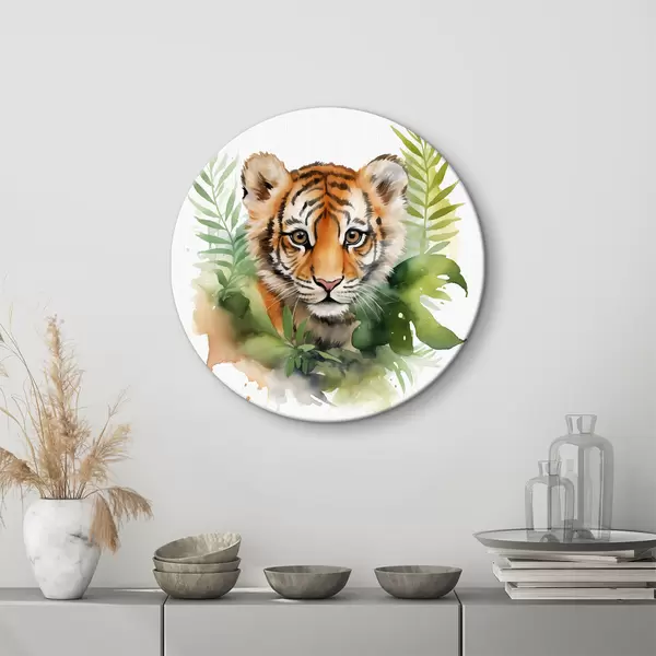 Nuotrauka Tigro portretas tropinių lapų akvarelėje Nr r40090