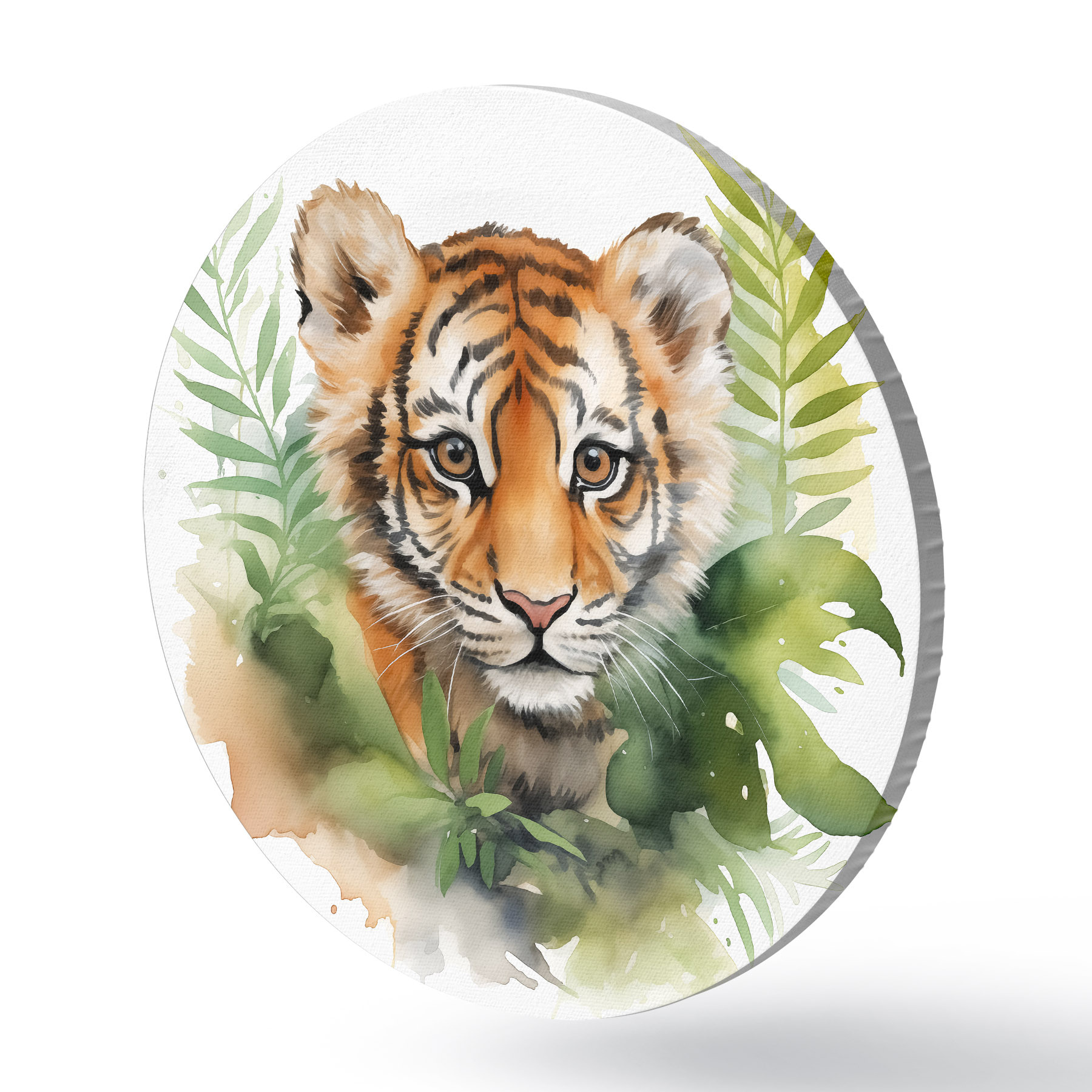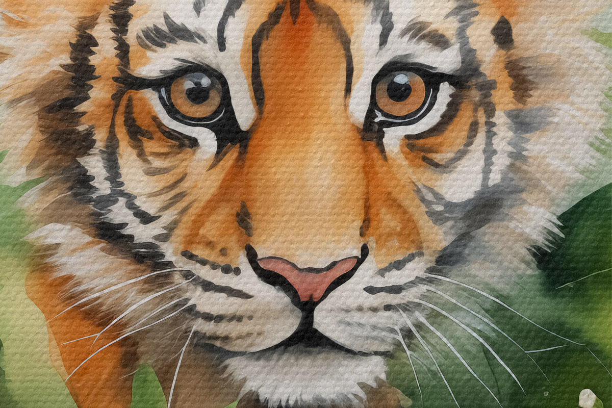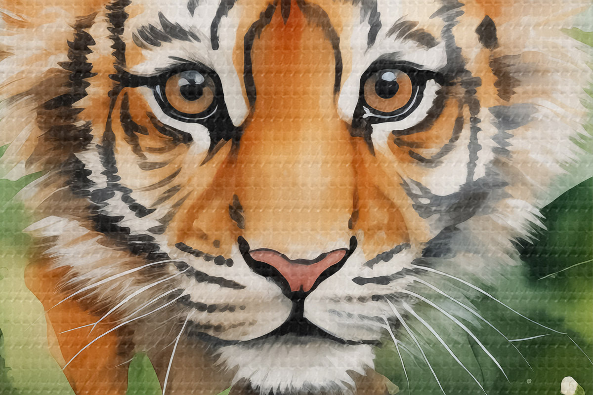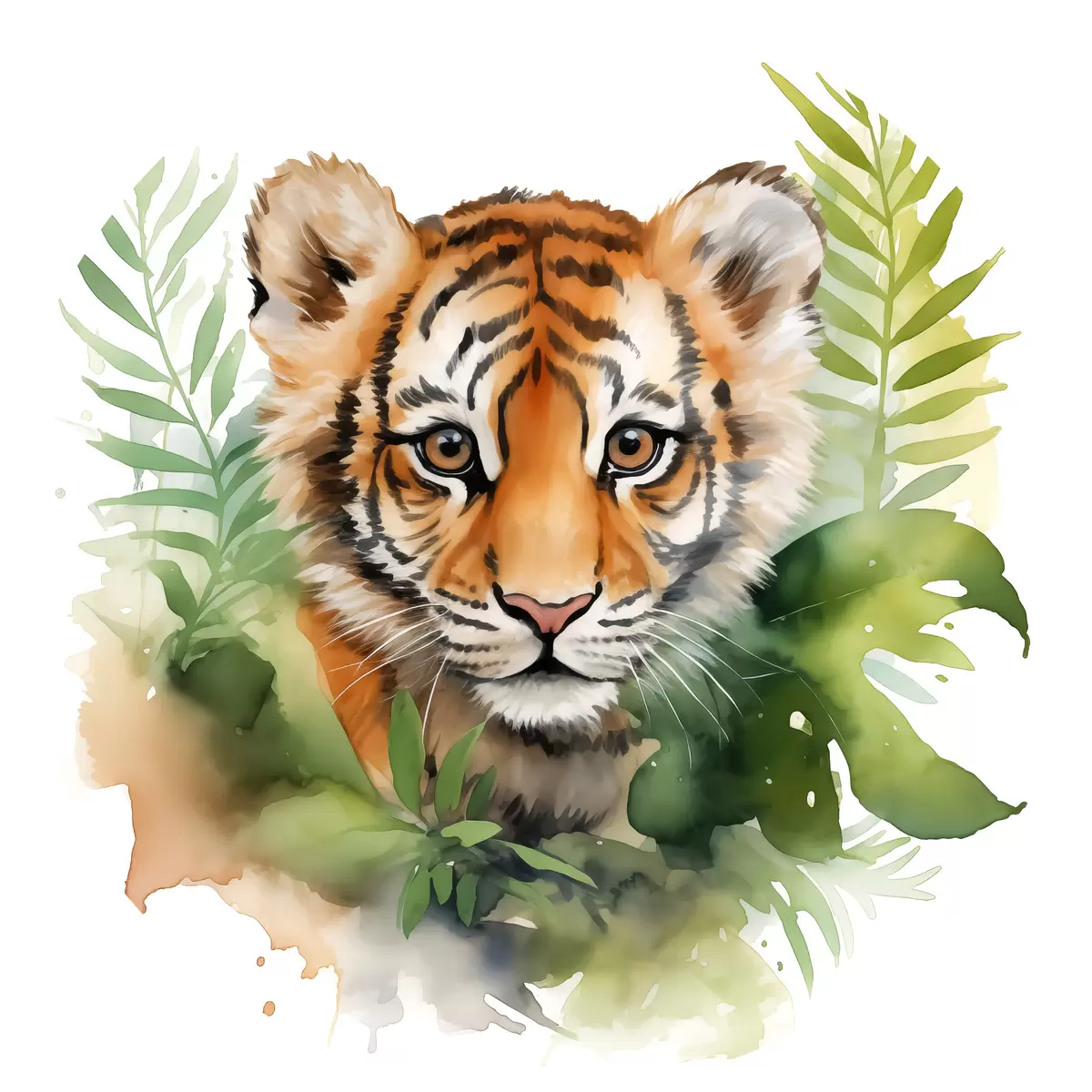 Nuotrauka Tigro portretas tropinių lapų akvarelėje Nr r40090
