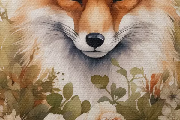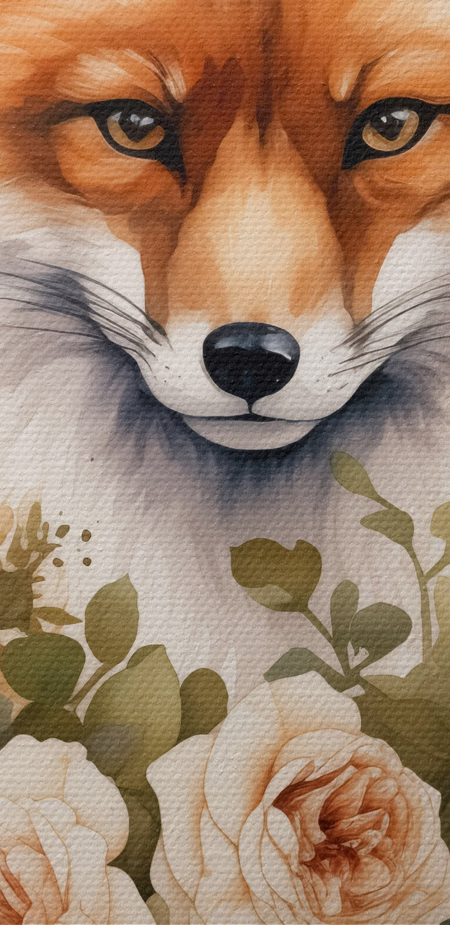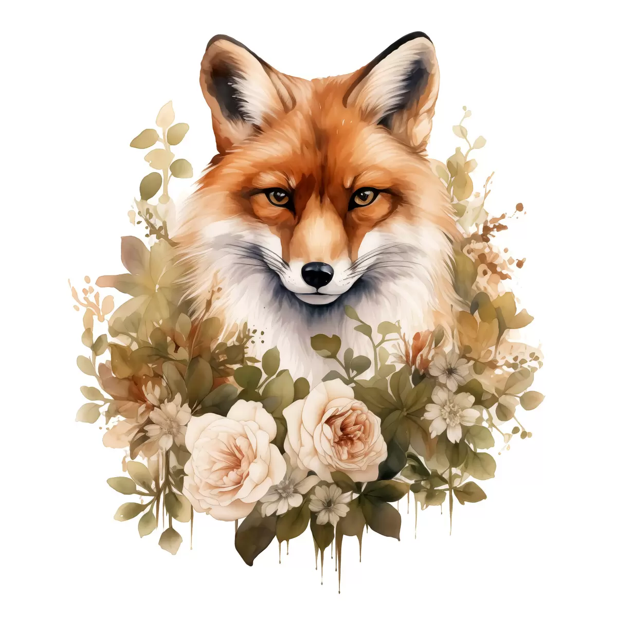 Nuotrauka Lapės portretas baltų vintažinių rožių akvarelėje Nr r40093