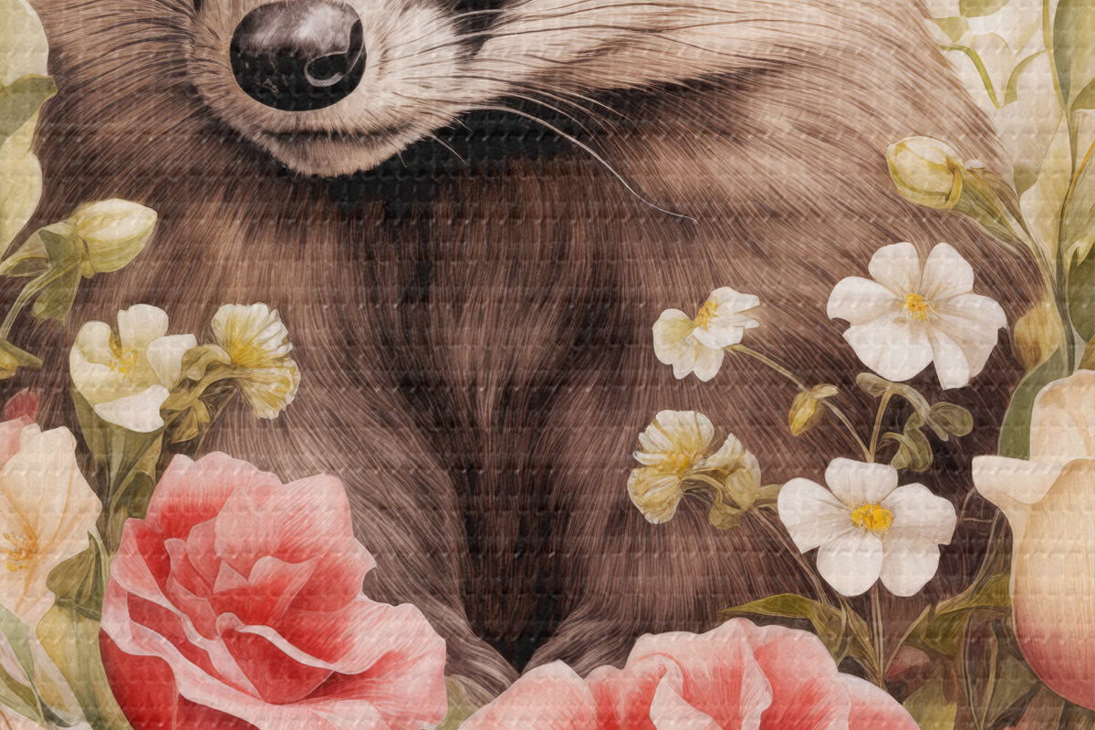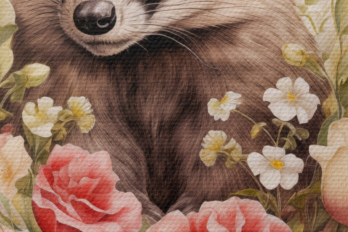 Nuotrauka Barsuko portretas rožinės spalvos vintažinių rožių akvarele Nr r40094