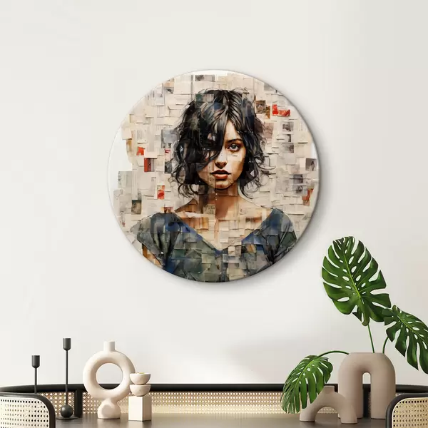 Nuotrauka Garbanotų plaukų mergina apklijuota lipdukais, antspaudais ir brūkšniniu kodu Nr r40104