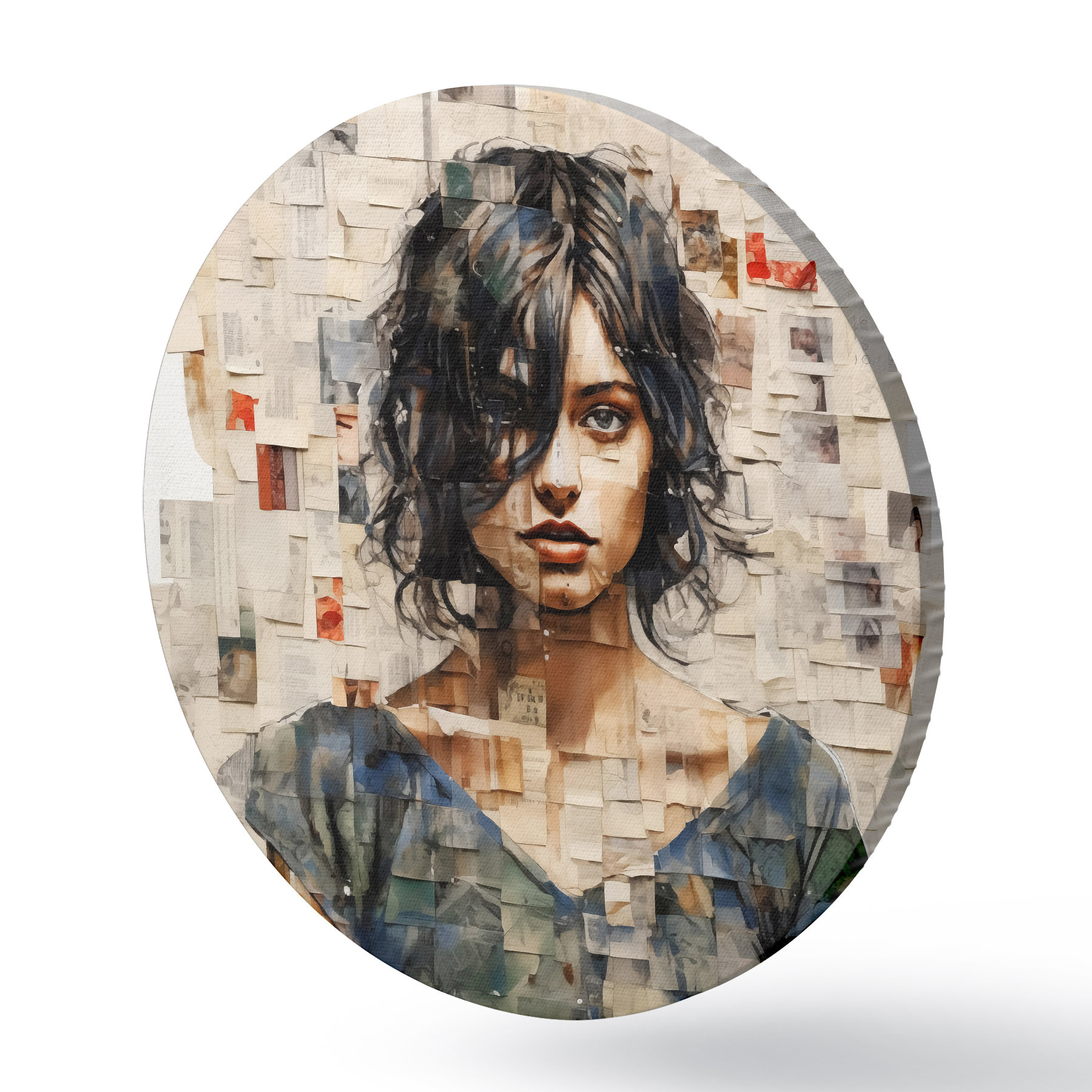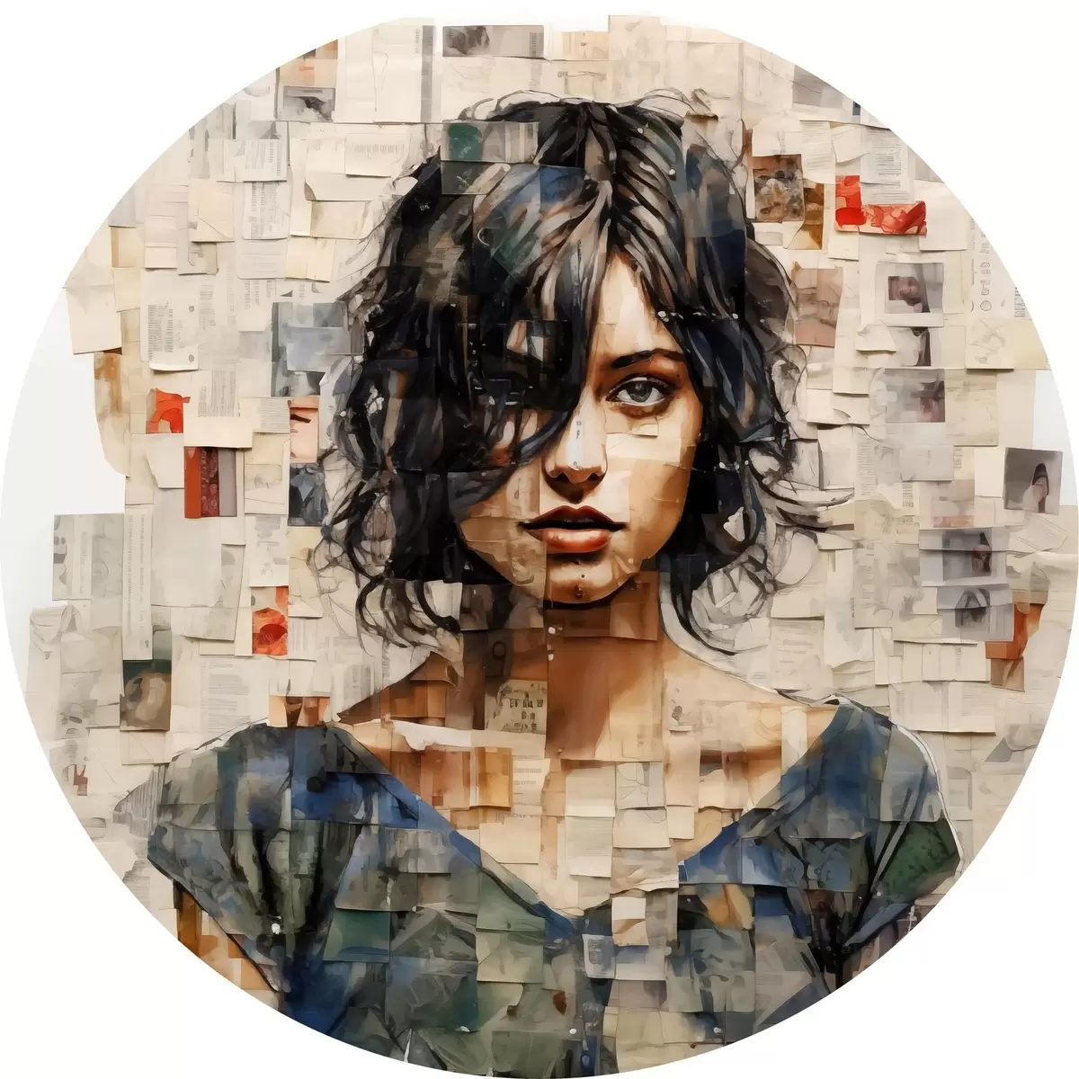 Nuotrauka Garbanotų plaukų mergina apklijuota lipdukais, antspaudais ir brūkšniniu kodu Nr r40104