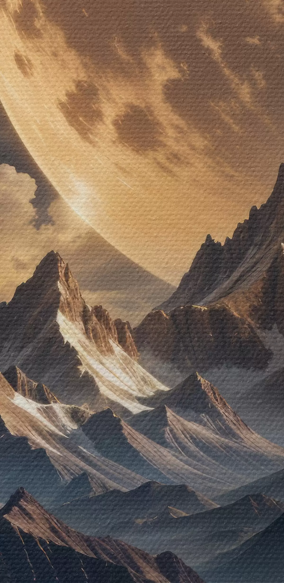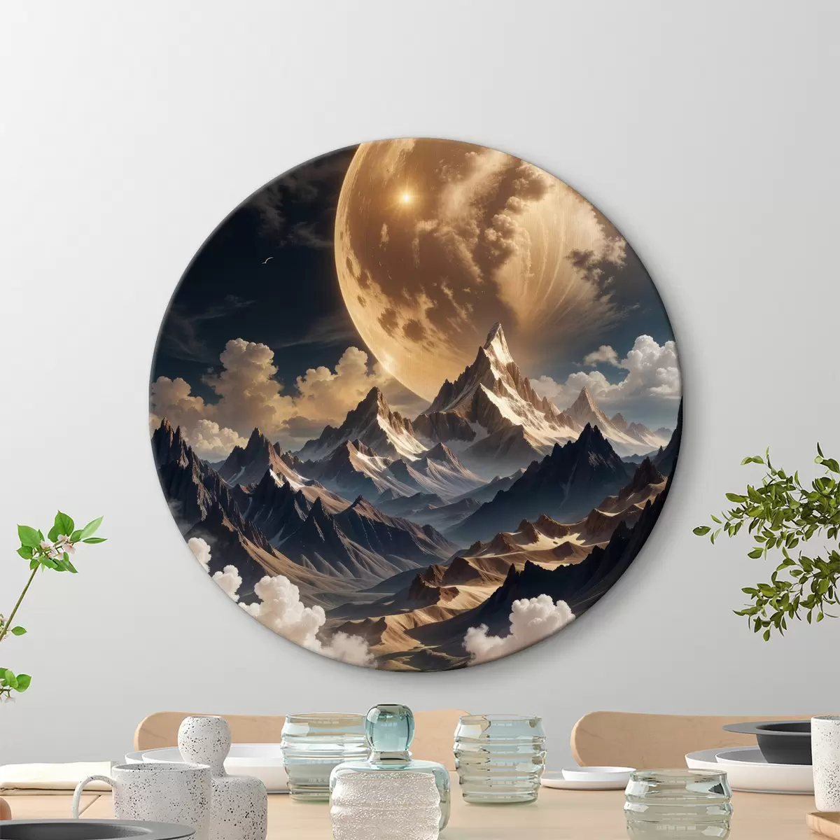 Nuotrauka Siurrealistinis peizažas su snieguotais kalnais po didžiule pilnatis, su šmaikščiais debesimis Nr r40147