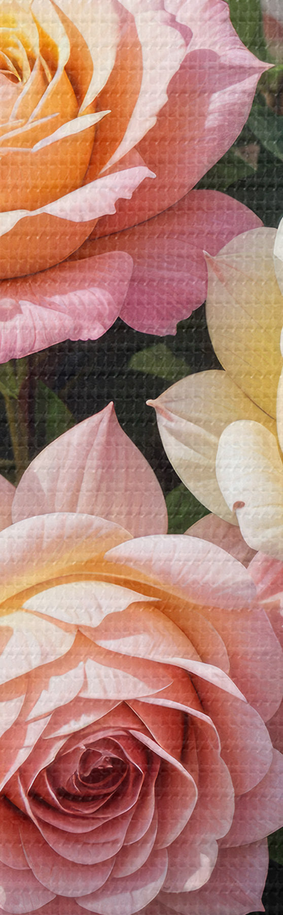 Galima užsakyti trijų rūšių medžiagą: "Economic Canvas" - tanki ir patvari medžiaga skaitmeninei spaudai, identiška dailininko drobės medžiagai, vandeniui atsparus paviršius, tikroviškas detalių atkūrimas, vidutinio grūdėtumo medžiaga. Premium Canvas - tekstūra primena dailininko drobę (susipynę smulkūs siūlai). Minkštas, detalus vaizdo atkūrimas ant matinio paviršiaus. Eco-Premium - aukštos kokybės 100 % medvilninis audinys. Dėl natūralių medvilnės pluoštų medžiaga yra patvari ir atspari nusidėvėjimui. Puikus spalvų atkūrimas ir detalumas.