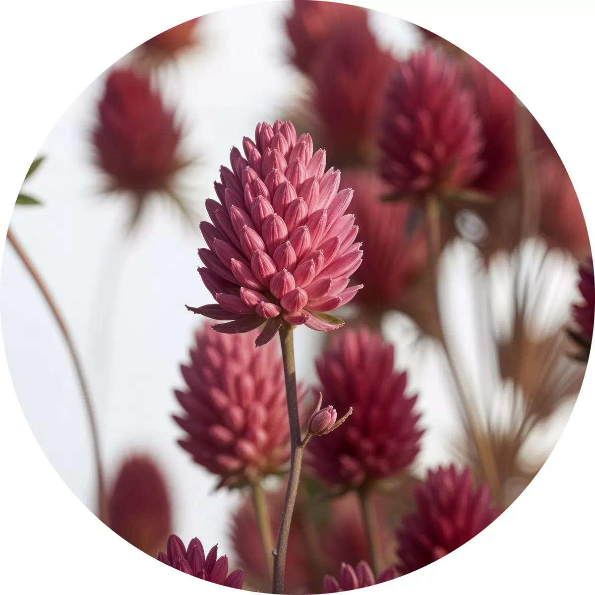 Nuotrauka Ryškių raudonų jurginų žiedų vaizdas neryškiame fone Nr r40157