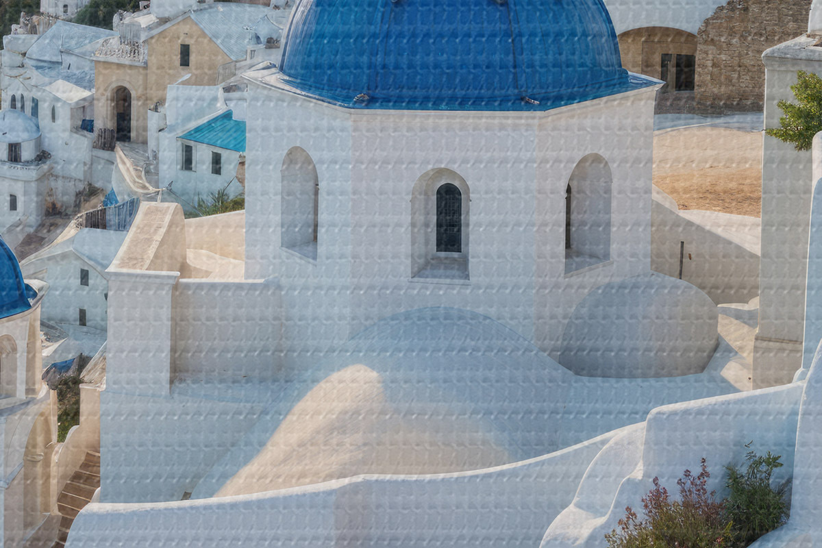 Nuotrauka Santorinio sala, Graikija. Miestelis pastatytas ant kalvos šlaito su vaizdu į Egėjo jūrą Nr r40160