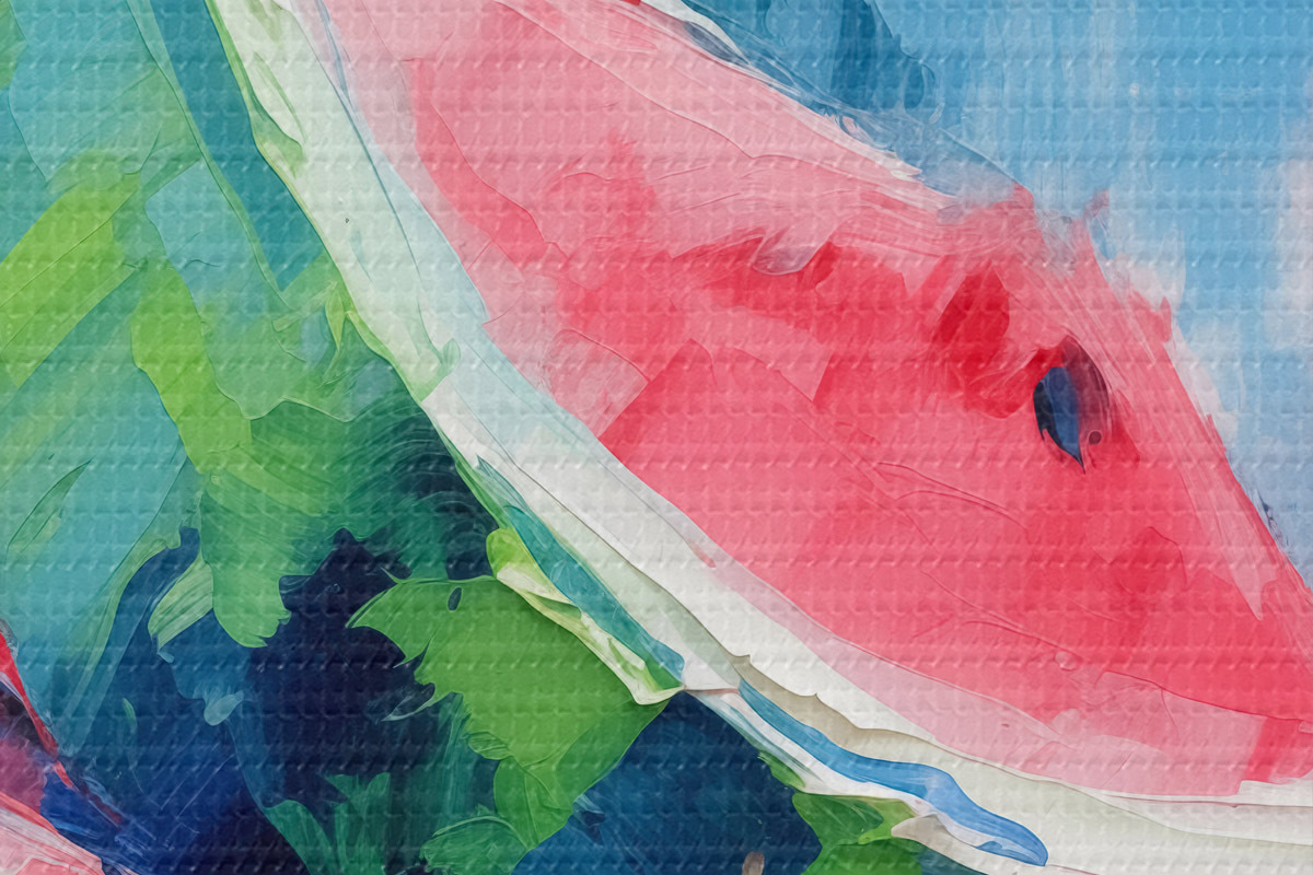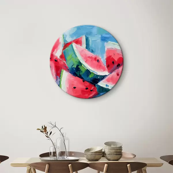 Nuotrauka Arbūzo gabaliukai mėlyname fone Nr r40211