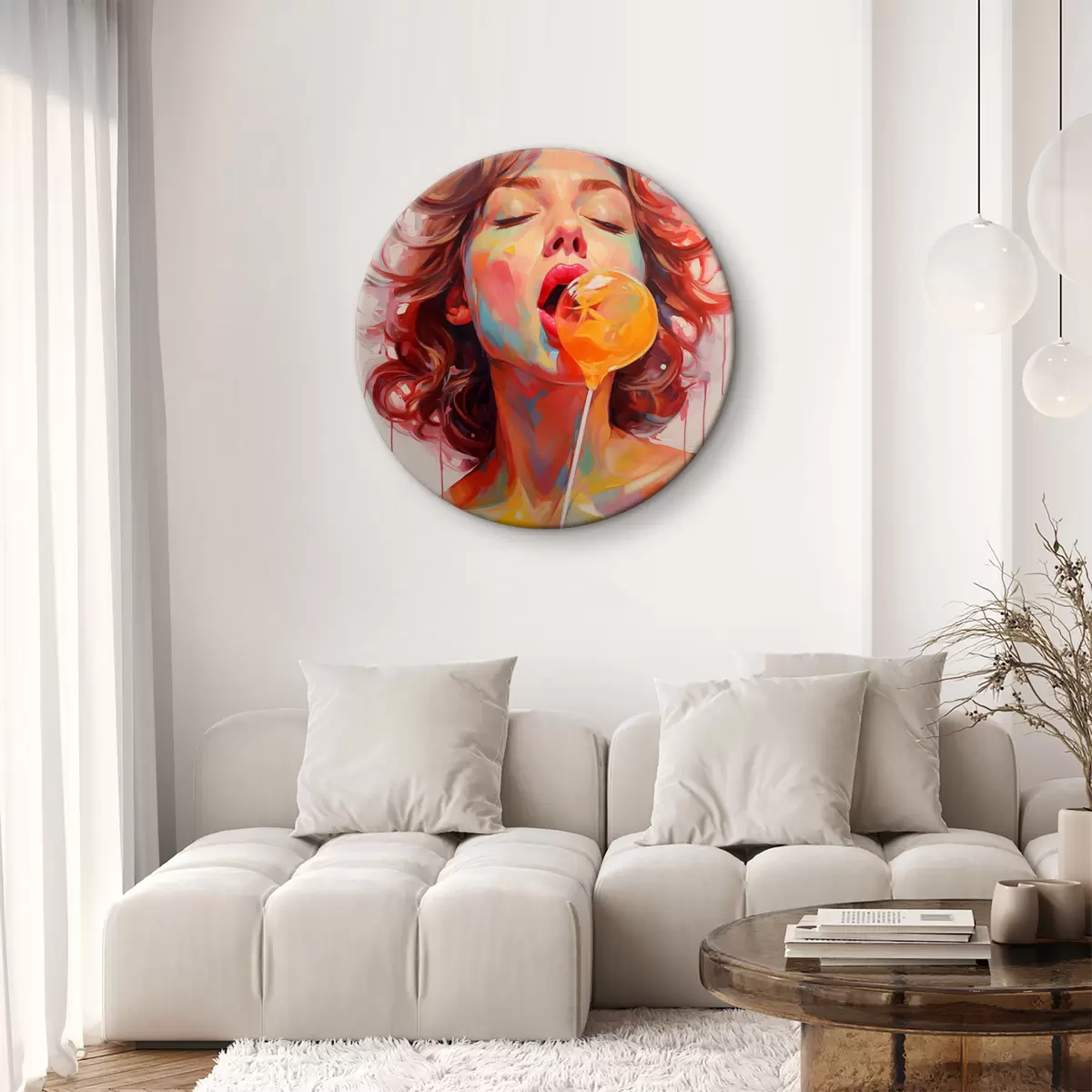 Apvalūs paveikslai Ryškių spalvų garbanotų plaukų mergina laižo ledinuką r40213