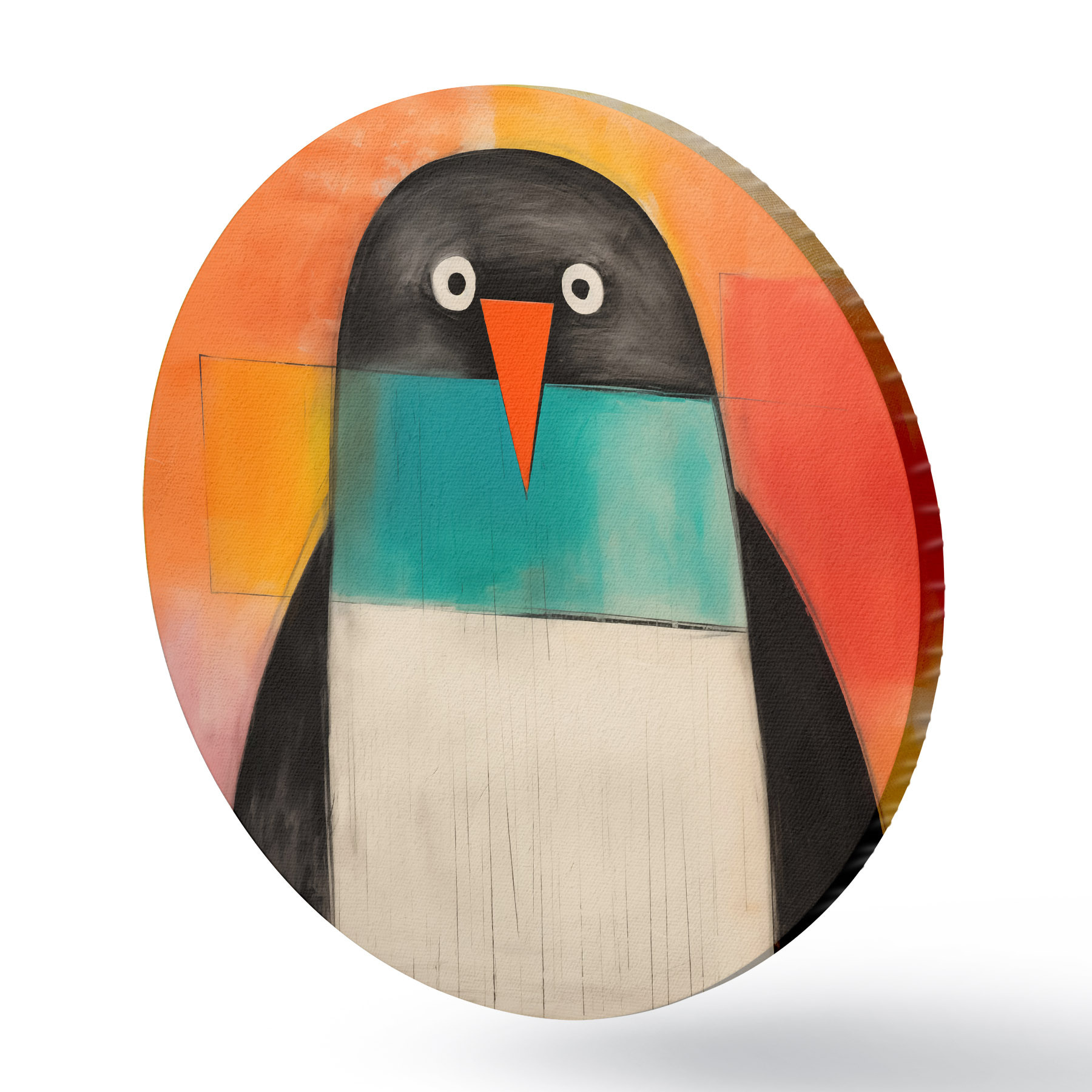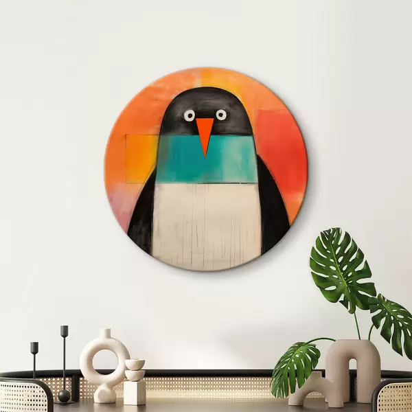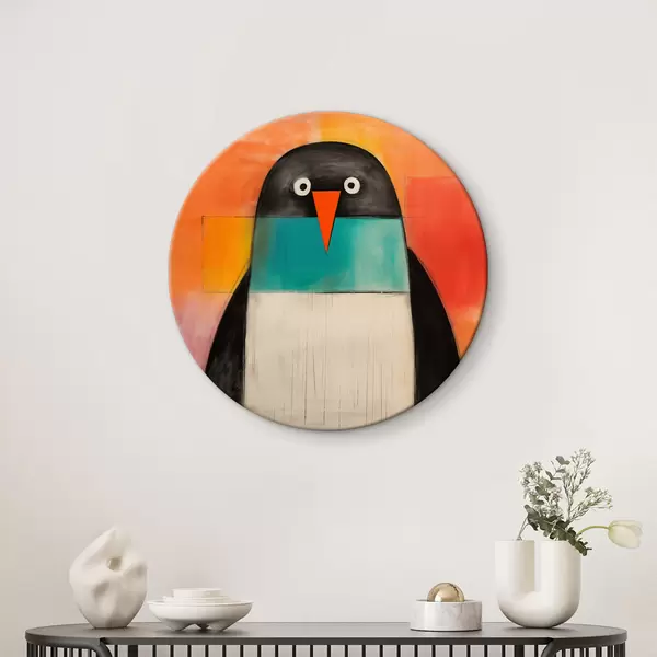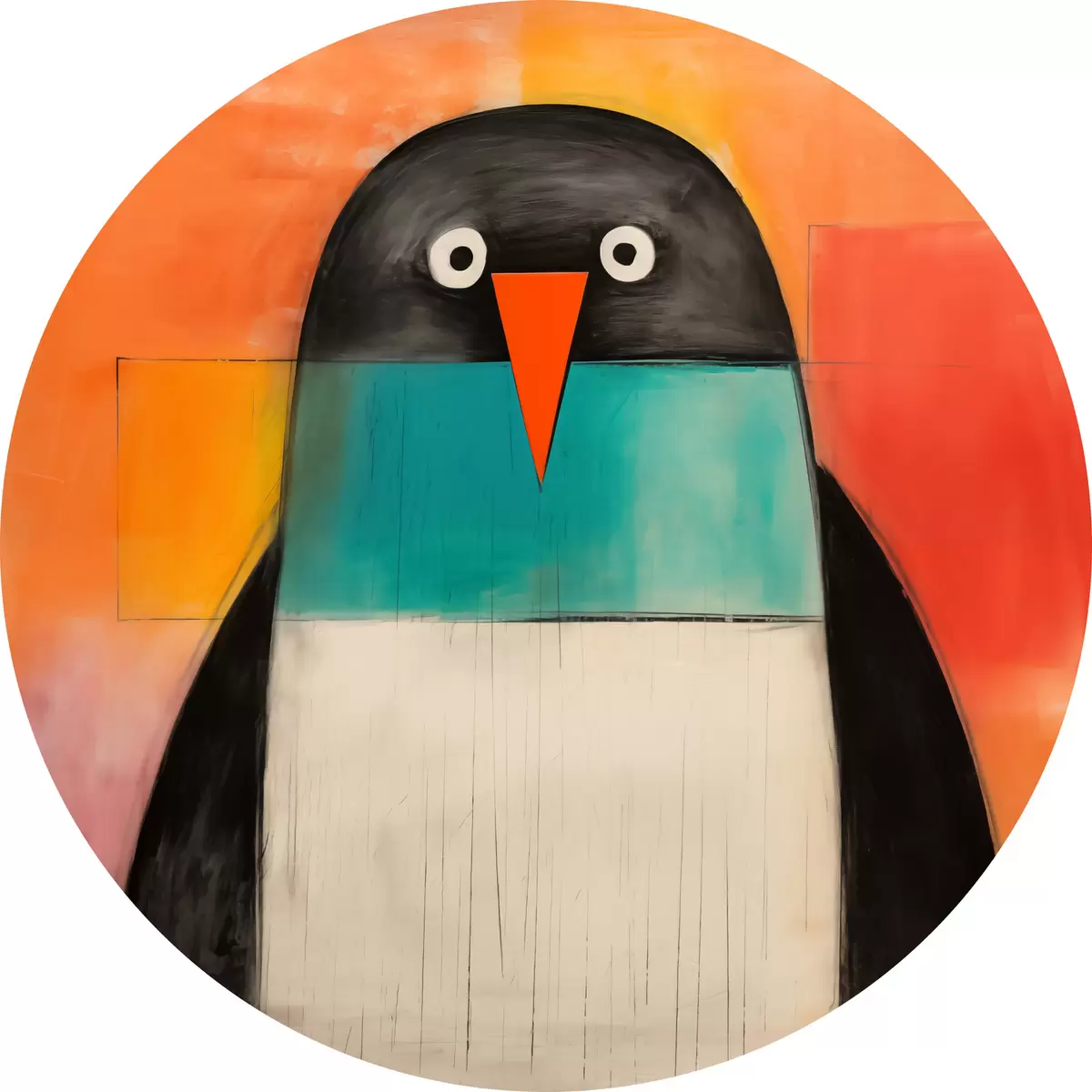 Nuotrauka Pingvinas raudonai oranžiniame fone plokščias piešinys Nr r40217