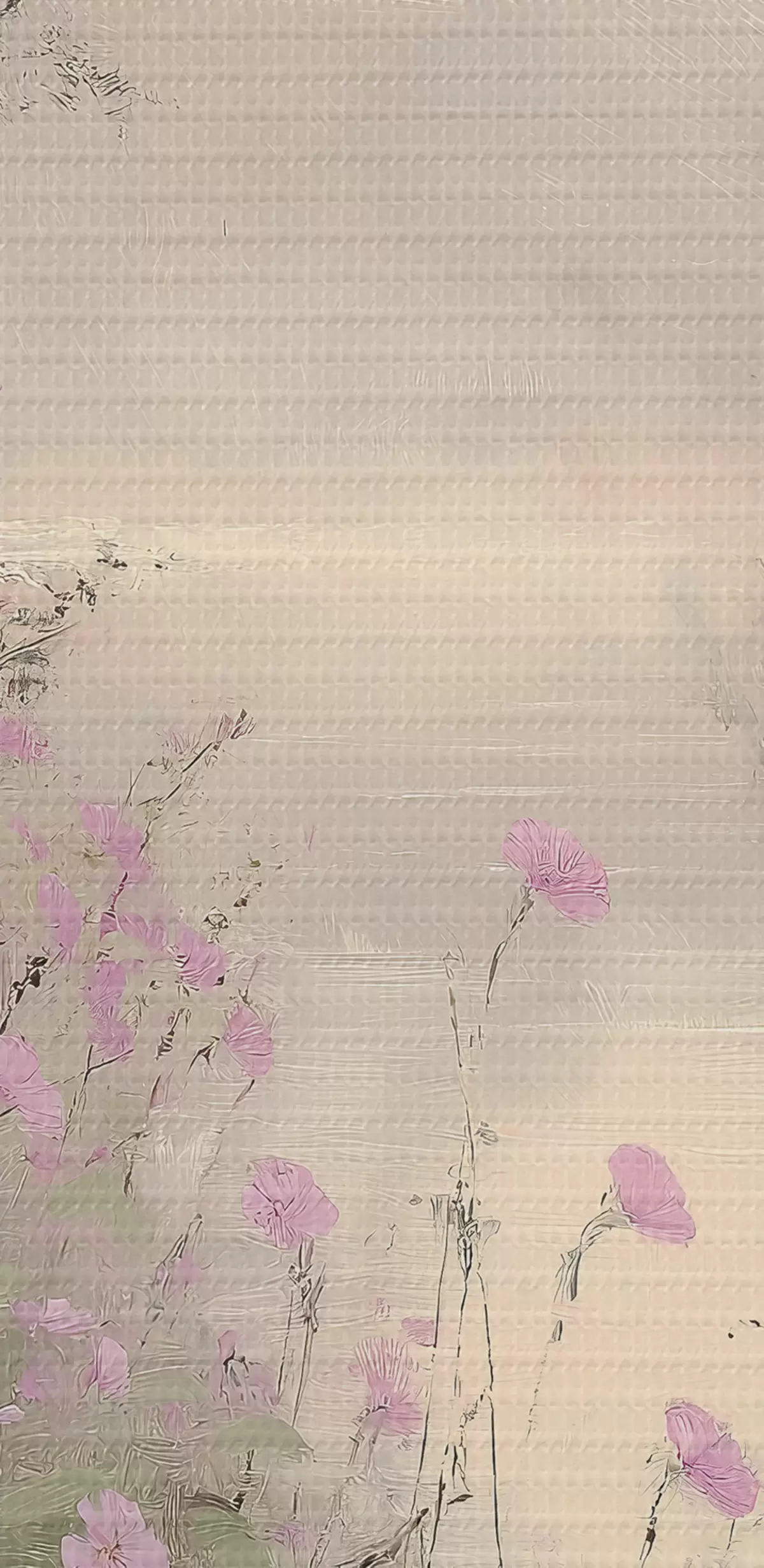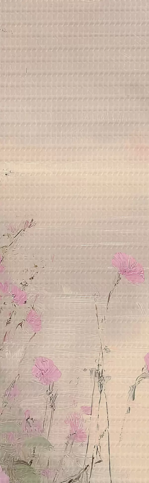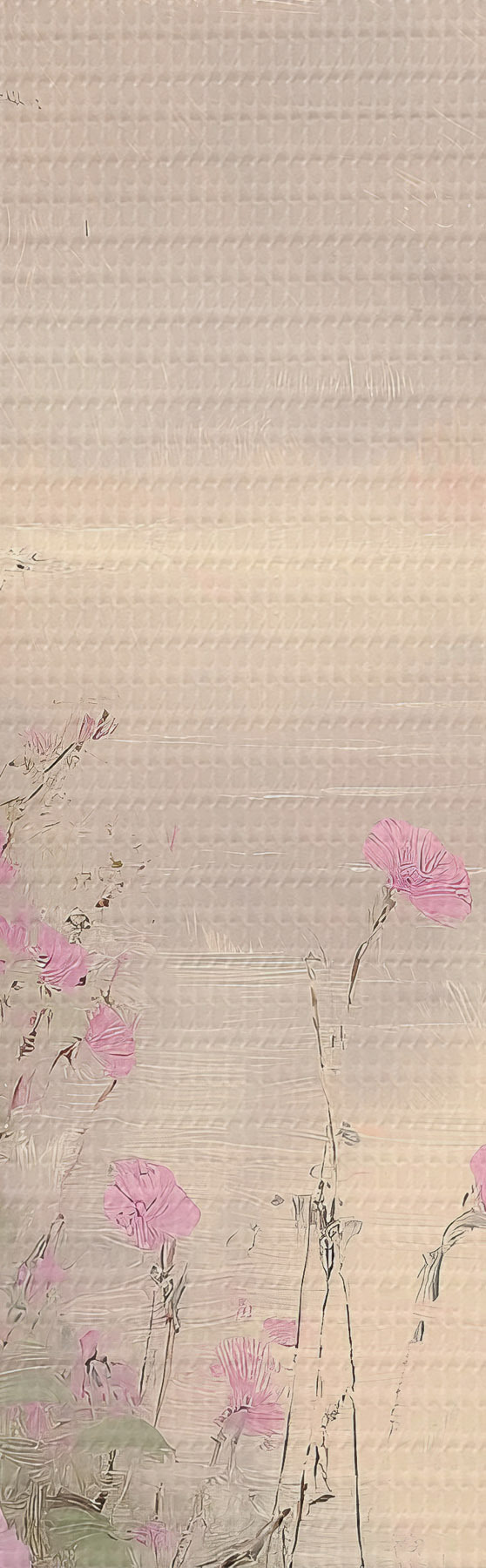 Nuotrauka Ežeras su rožinėmis gėlėmis, saulėtekis, aliejinis piešinys, pastelinės smėlio spalvos, migla Nr r40229